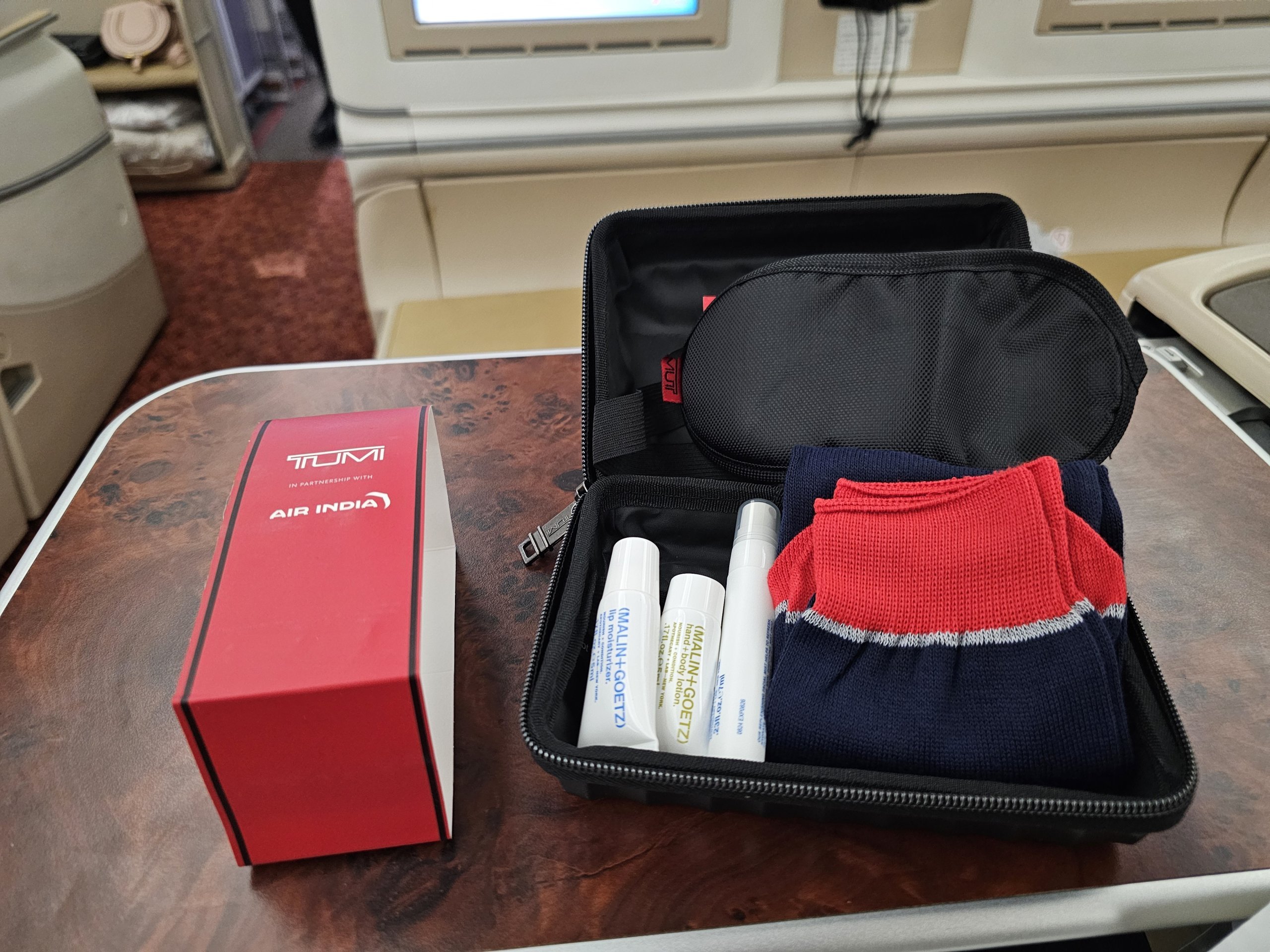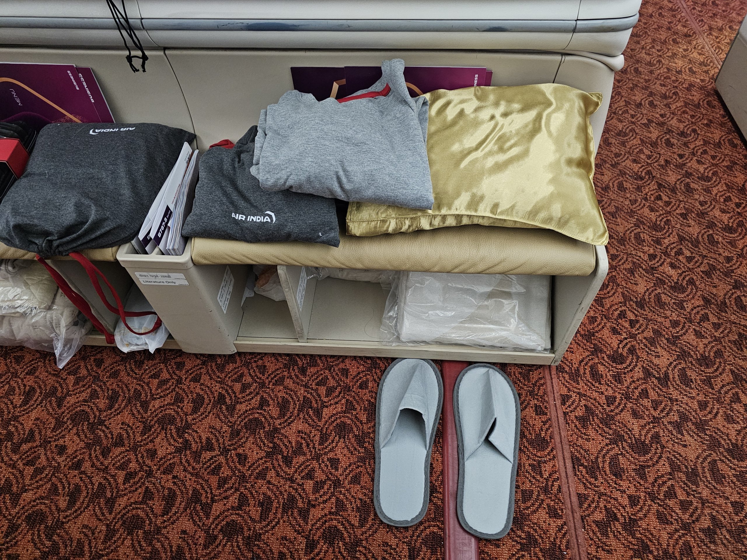 Kiekvienoje sėdynėje yra tradicinis Amenity kit, nedidelė tualeto reikmenų dėžutė, taip pat kitų naudingų asmeninių daiktų.