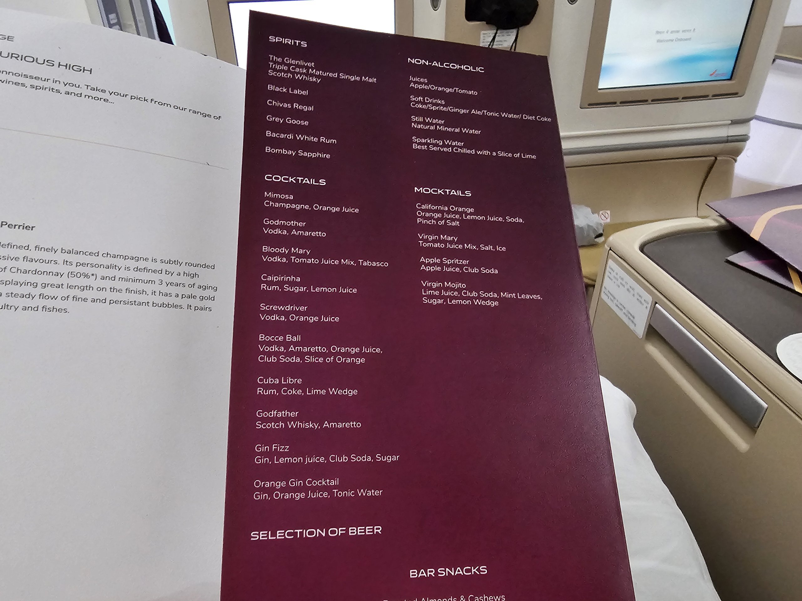 Gaivieji gėrimai skrydžio metu kartu su sėdyne yra vienas iš pagrindinių verslo klasės patirties komponentų.