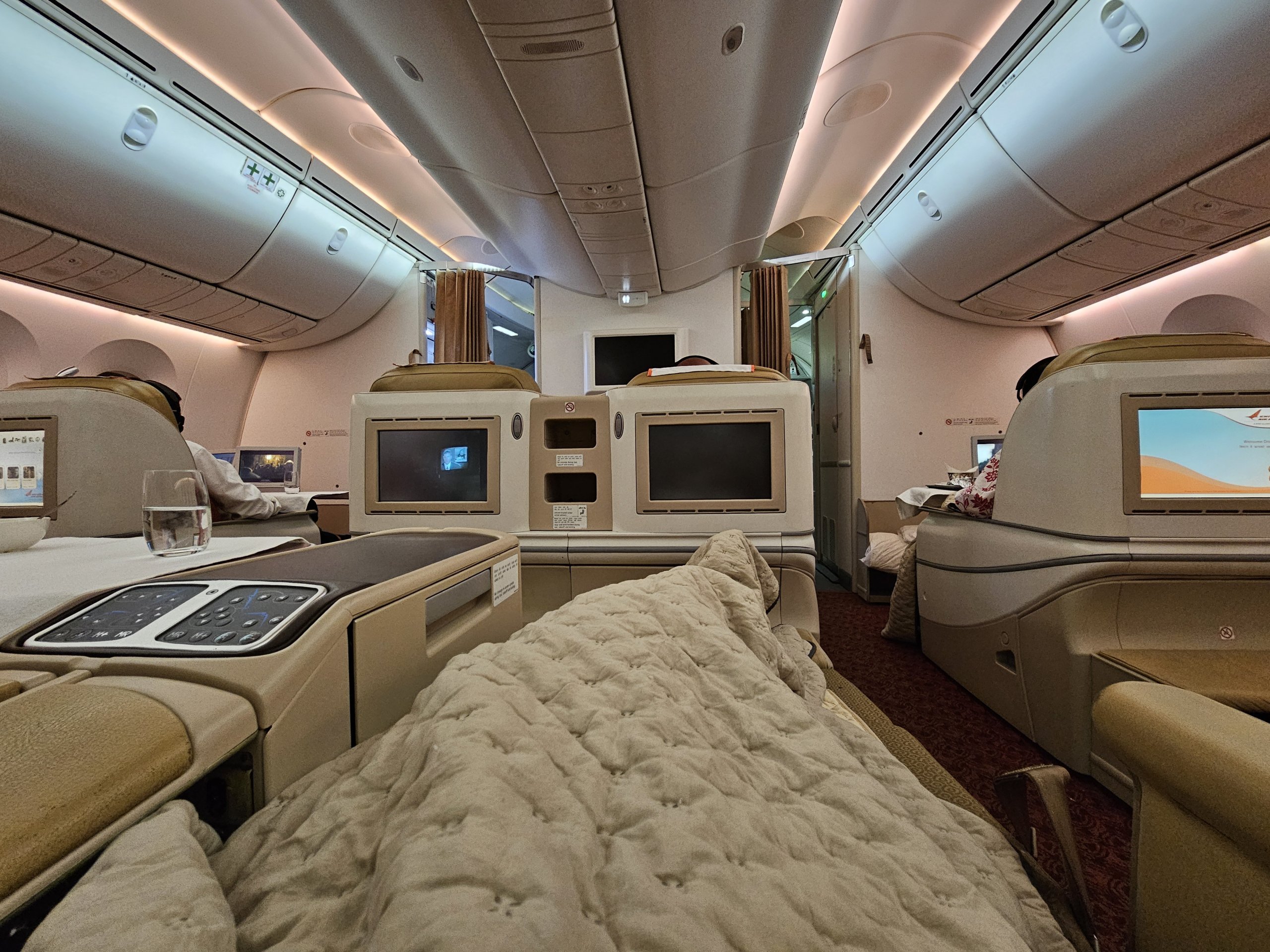 Šiuo metu "Air India" lėktuvų parką papildo naujais "Airbus A350" lėktuvais, kuriuose verslo klasės sėdynių išdėstymas 1-2-1 atrodo daug geriau. Mes tikrai svarstytume galimybę skristi šiuo orlaiviu.