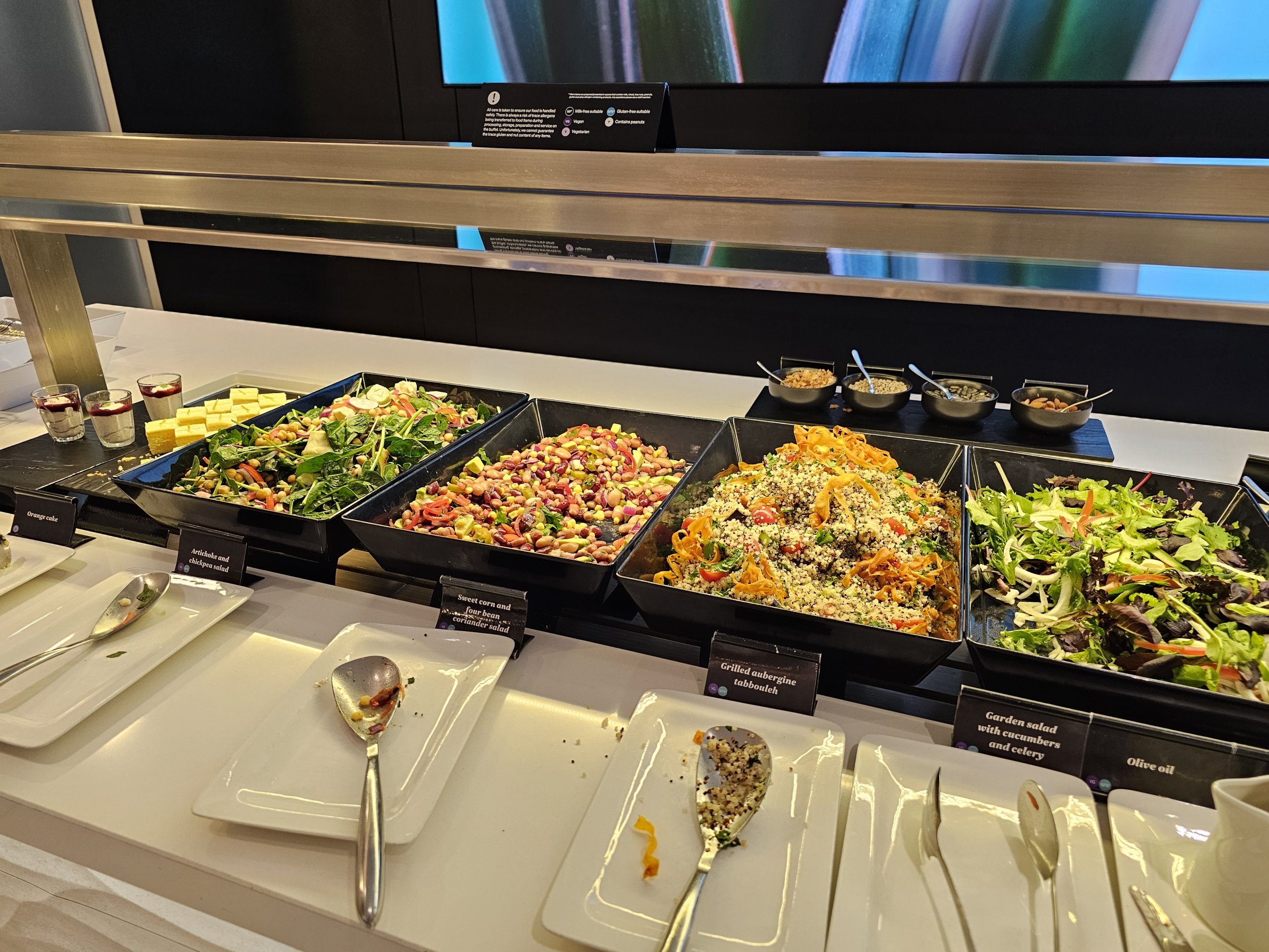Sveiko maisto pasirinkimas taip pat puikus, kita vertus, jei mėgstate daug saldumynų, šaltibarščių ir daug karšto maisto, šioje poilsio salėje nusivilsite.