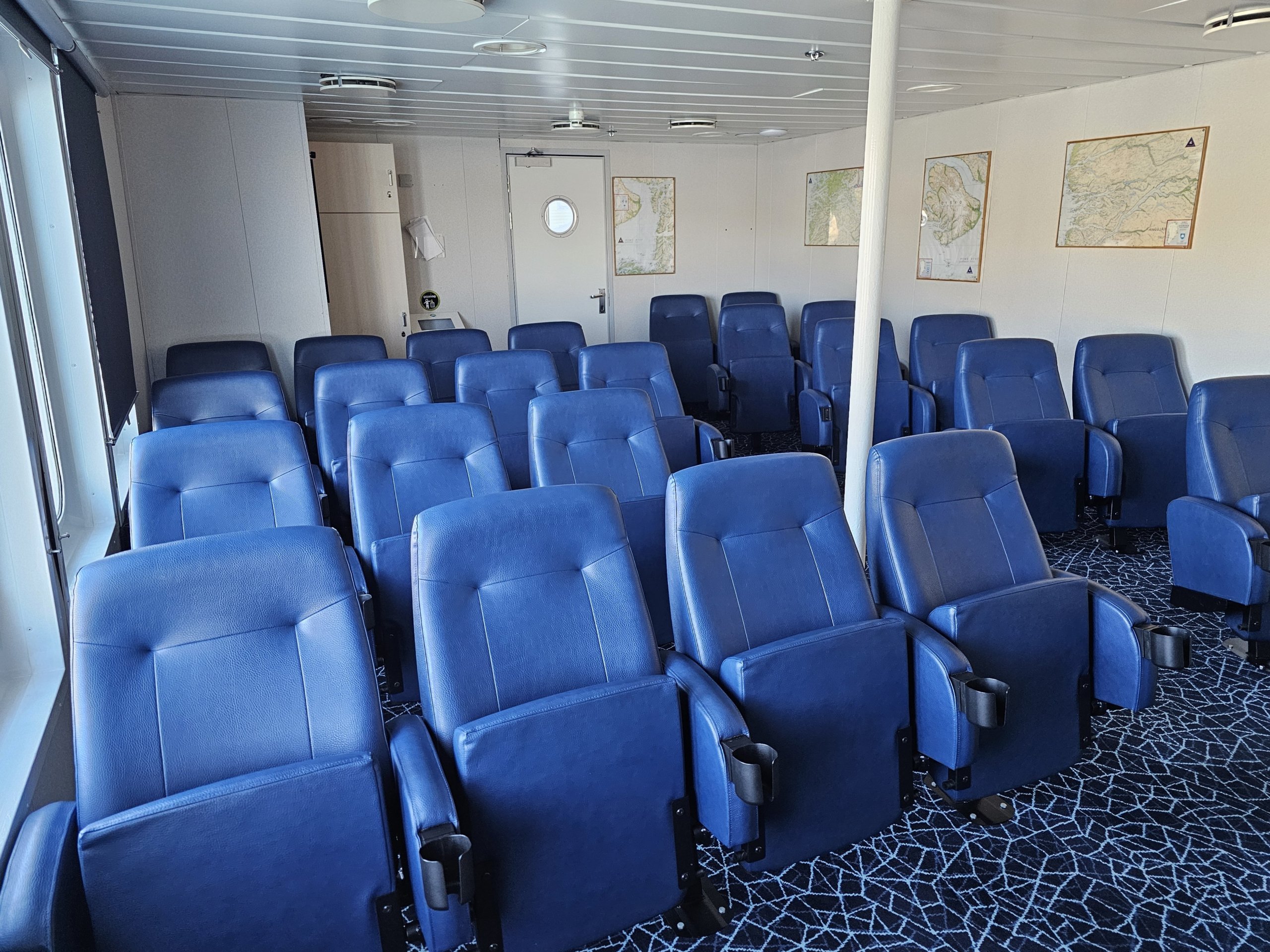 Laivo gale yra nedidelis vidinis denis su keliomis patogiomis sėdynėmis ir gražiu vaizdu į bruzdesį, kurį laivas sukuria savo varikliais.
