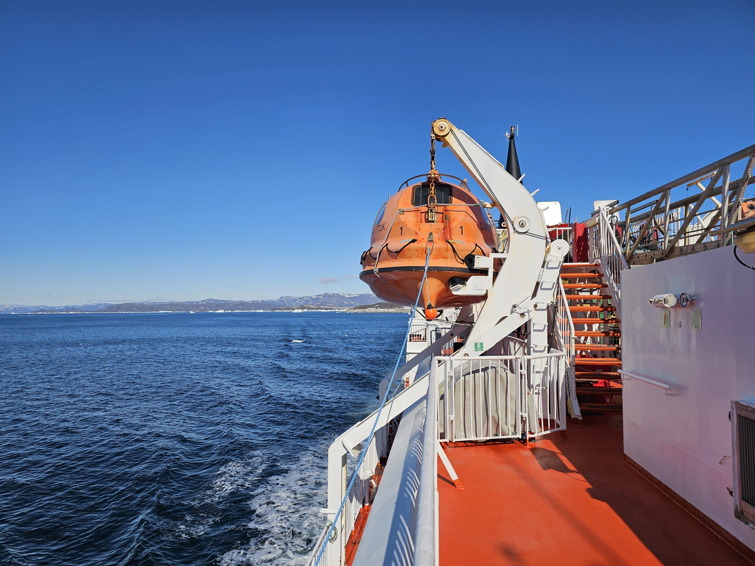 Nors man patinka lėktuvai ir skrydžiai, visada mėgstu derinti ir išbandyti įvairias transporto priemones. Todėl mane maloniai nustebino tai, kad "Arctic Umiaq Line" taip pat kartą per savaitę reguliariai kursuoja keltas palei visą vakarinę Grenlandijos pakrantę.