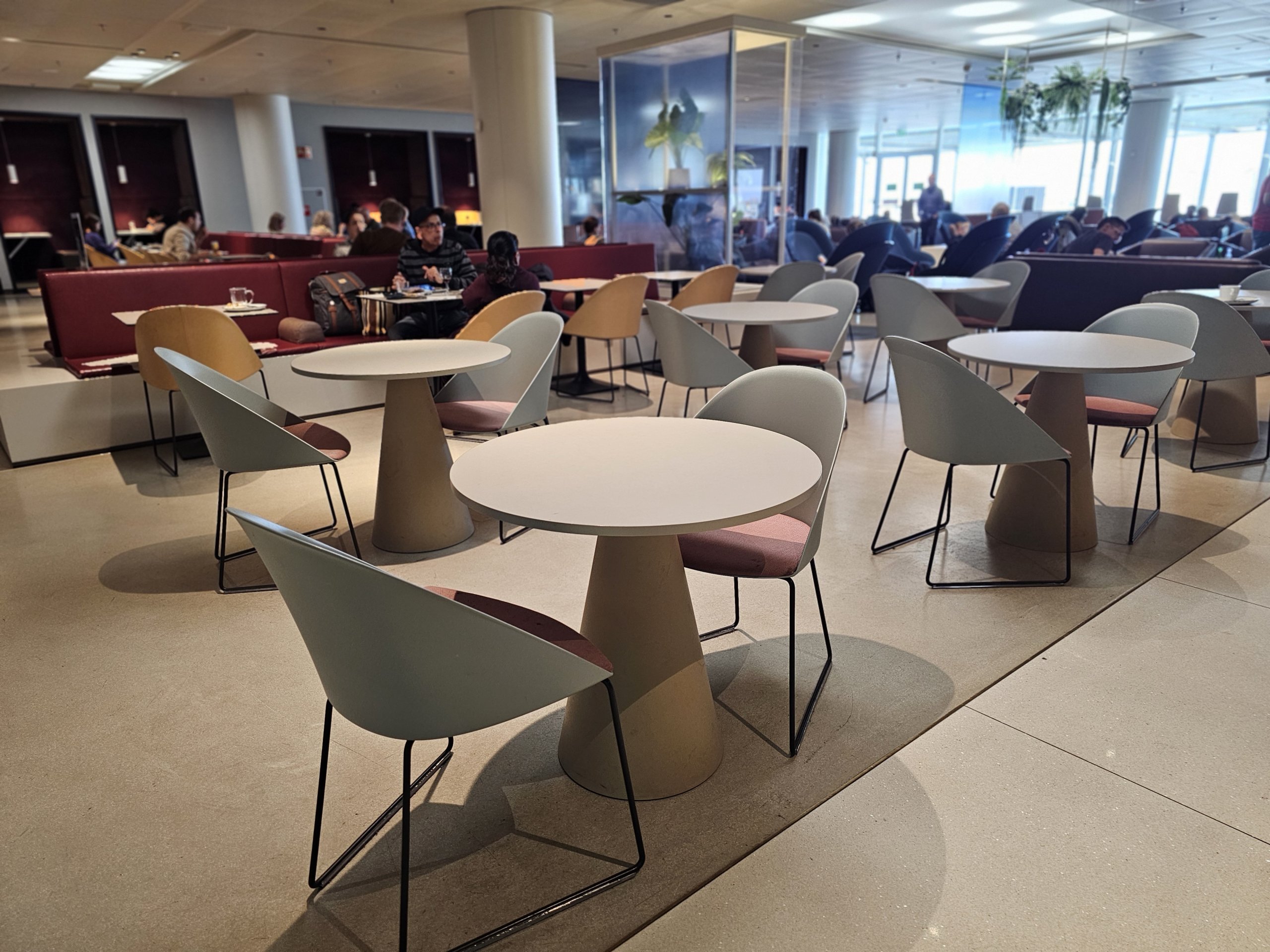 Kaip didžiausią teigiamą dalyką paminėčiau salės erdvumą ir sėdimų vietų įvairovę - nuo patogių kėdžių iki darbo paviršių.