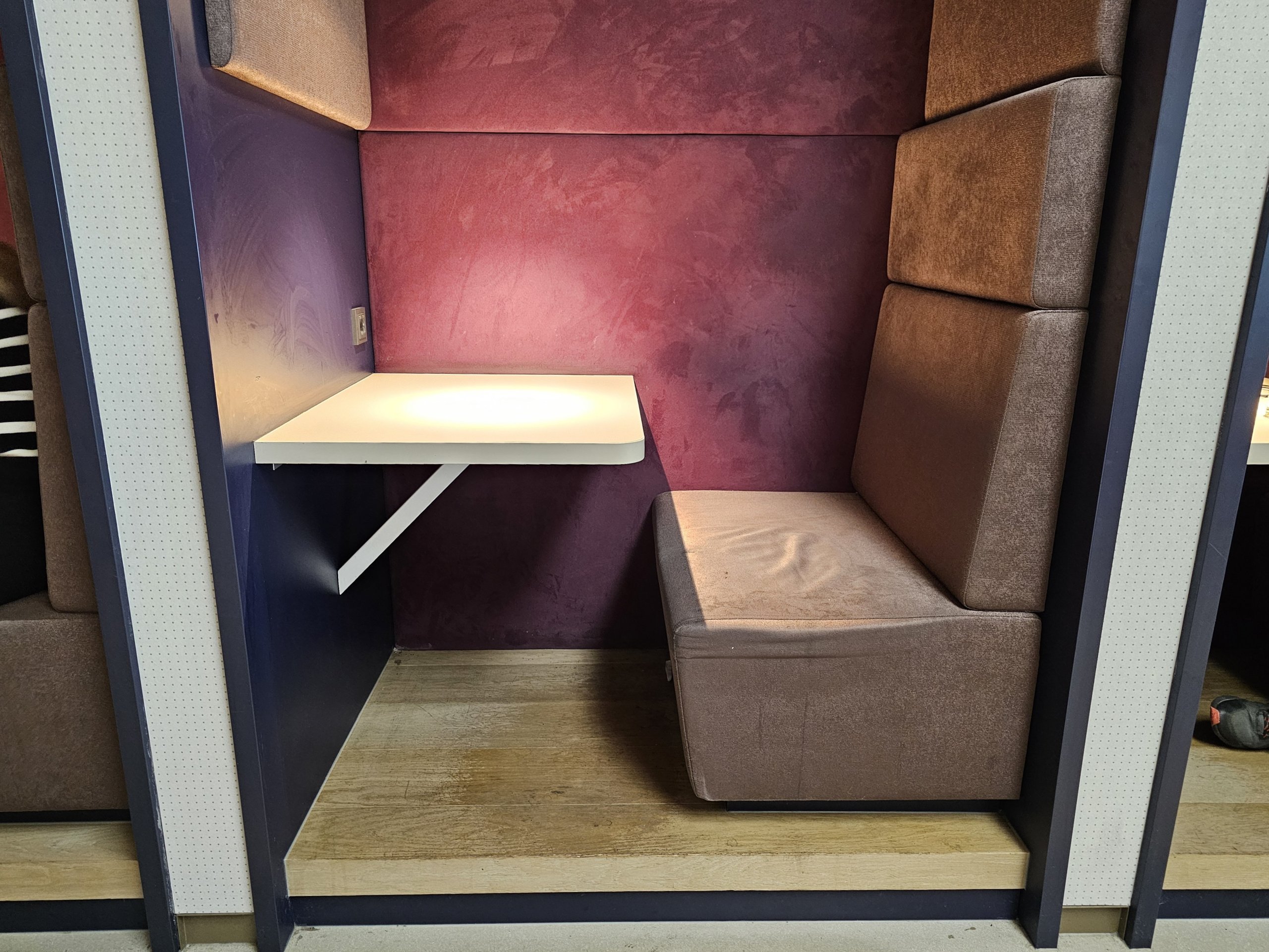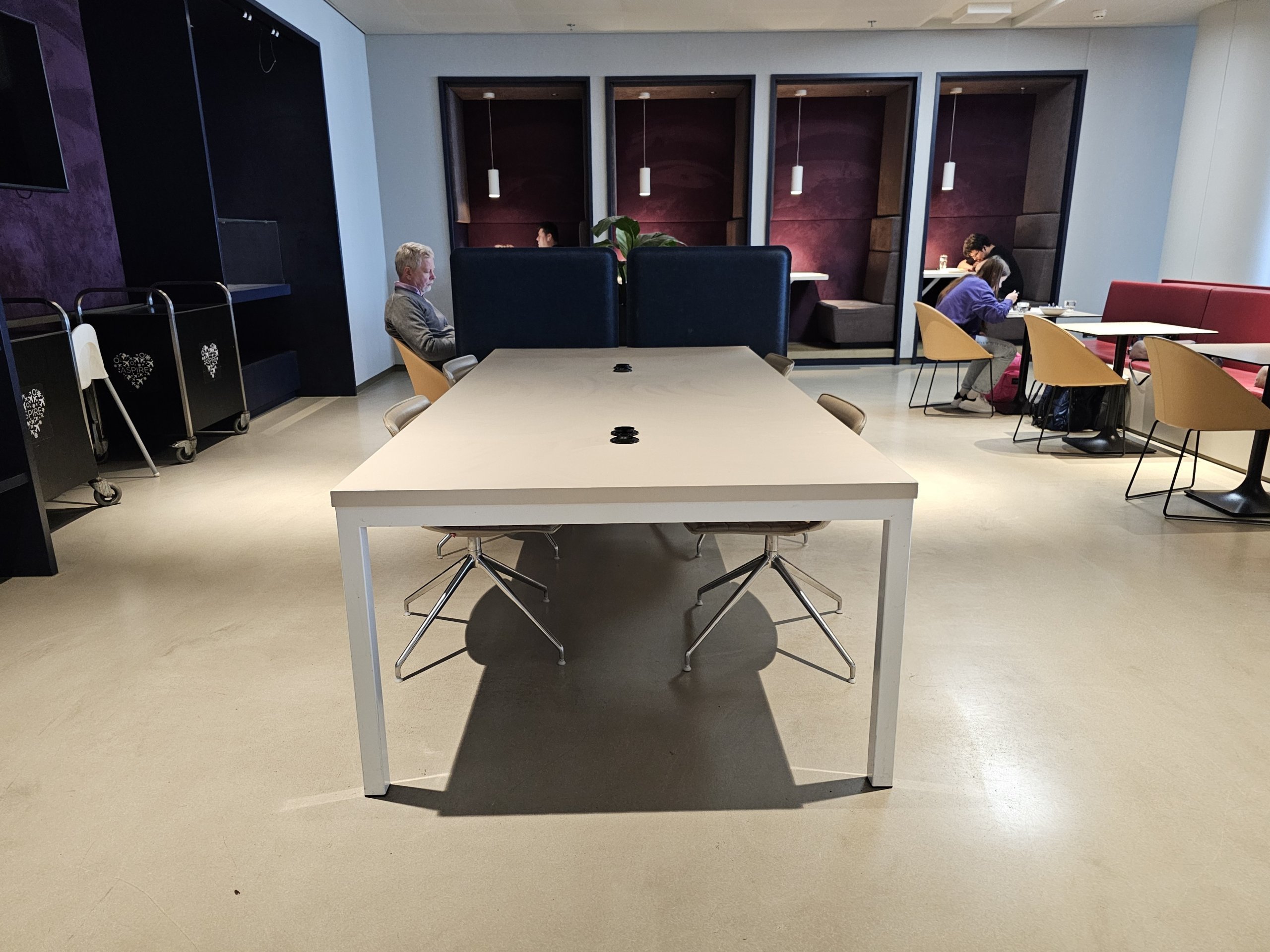 Salone "Aspire Lounge 26" yra gana daug patogių vietų dirbti su nešiojamuoju kompiuteriu, tačiau nėra spausdintuvo.