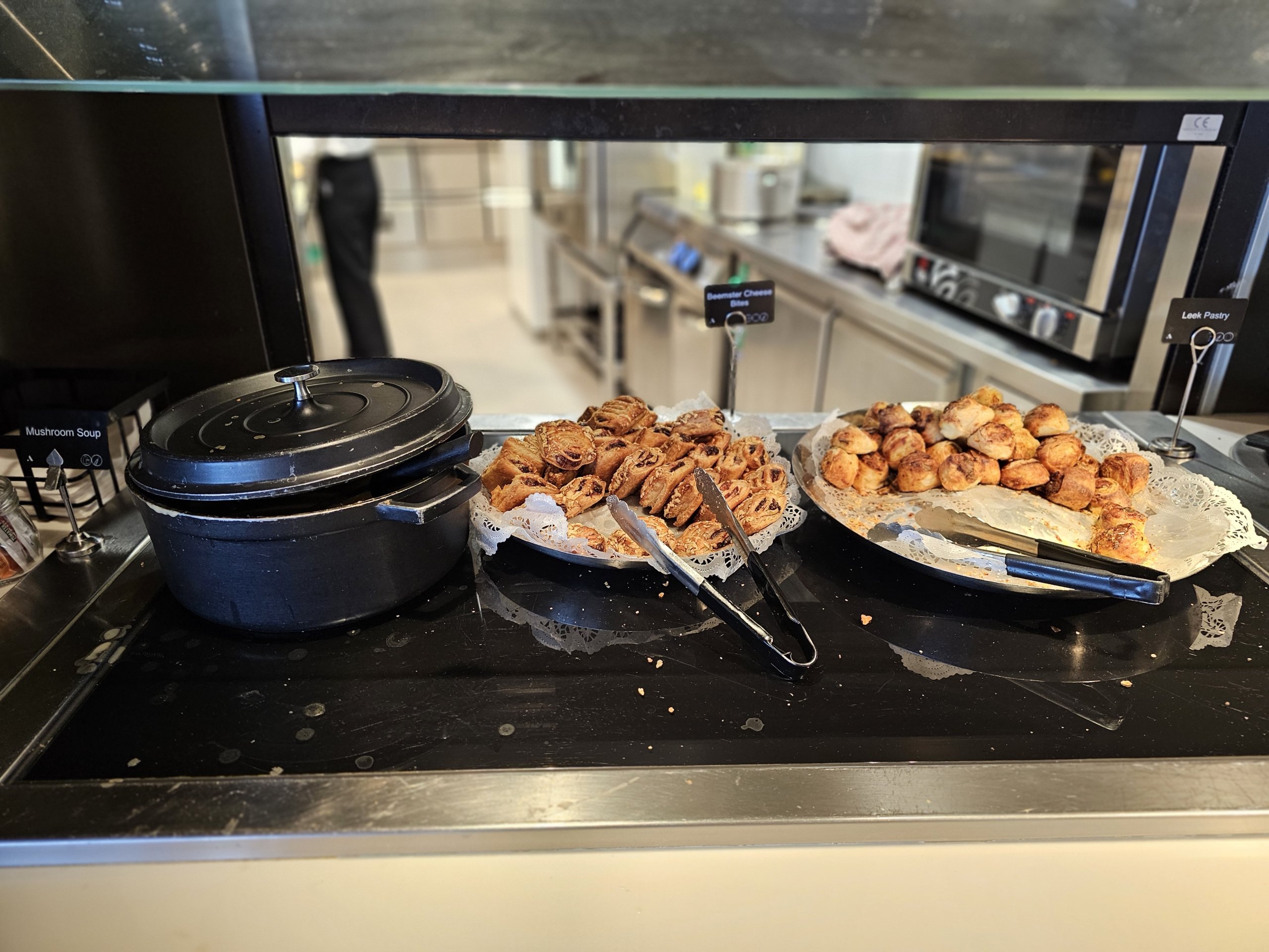 Karštųjų patiekalų pasirinkimas labai ribotas, paprastai yra tik vienos rūšies sriuba ir nedideli, bet nuostabūs pyragaičiai.