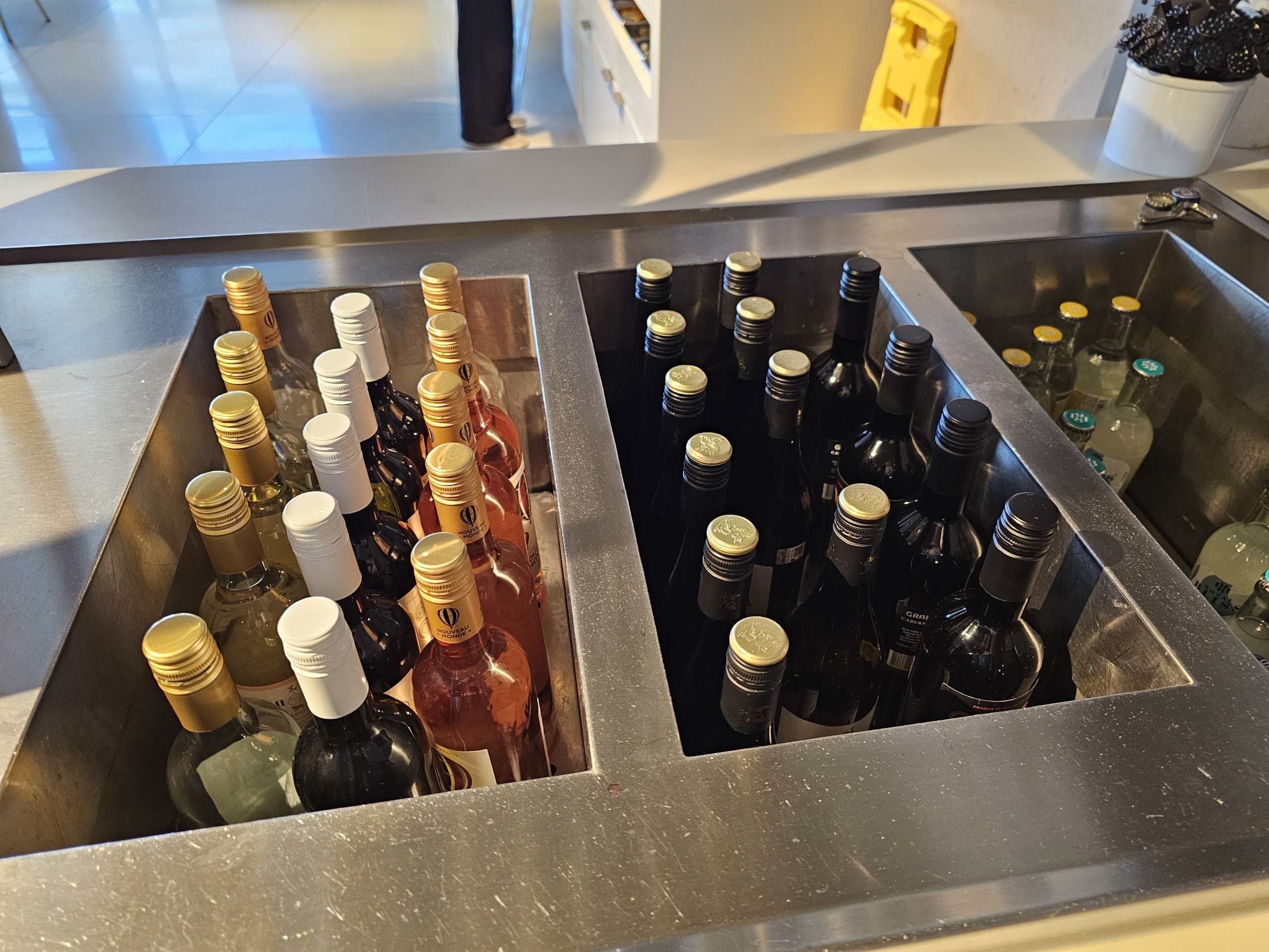 Alkoholiniai gėrimai daugiausia koncentruojasi ties keliais vynais, "Heineken" alumi buteliuose ir labai ribotu stipriųjų gėrimų asortimentu.