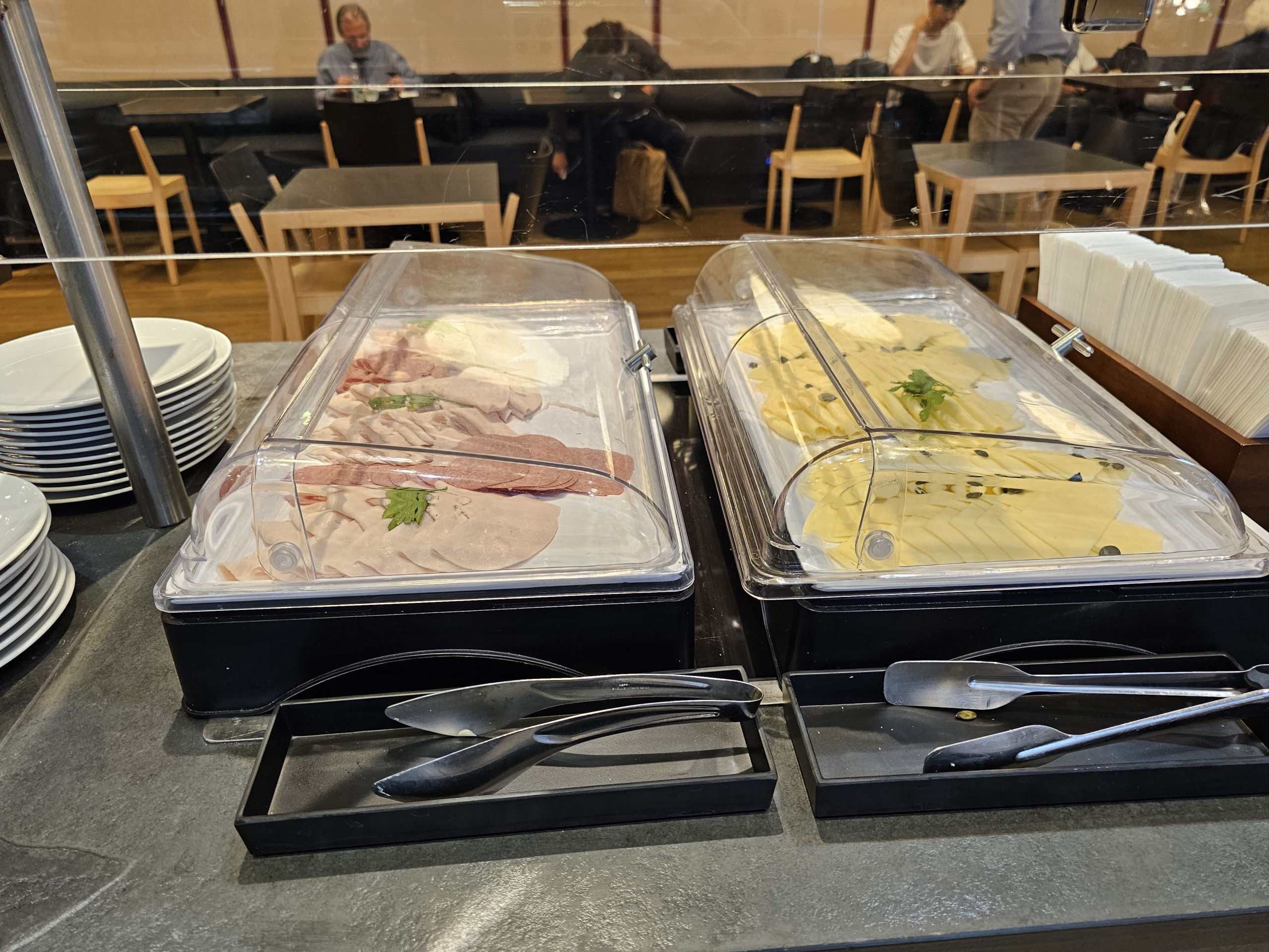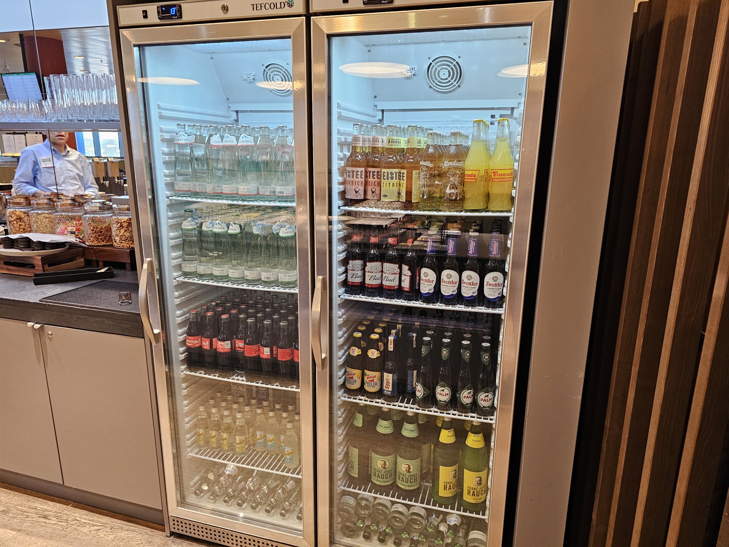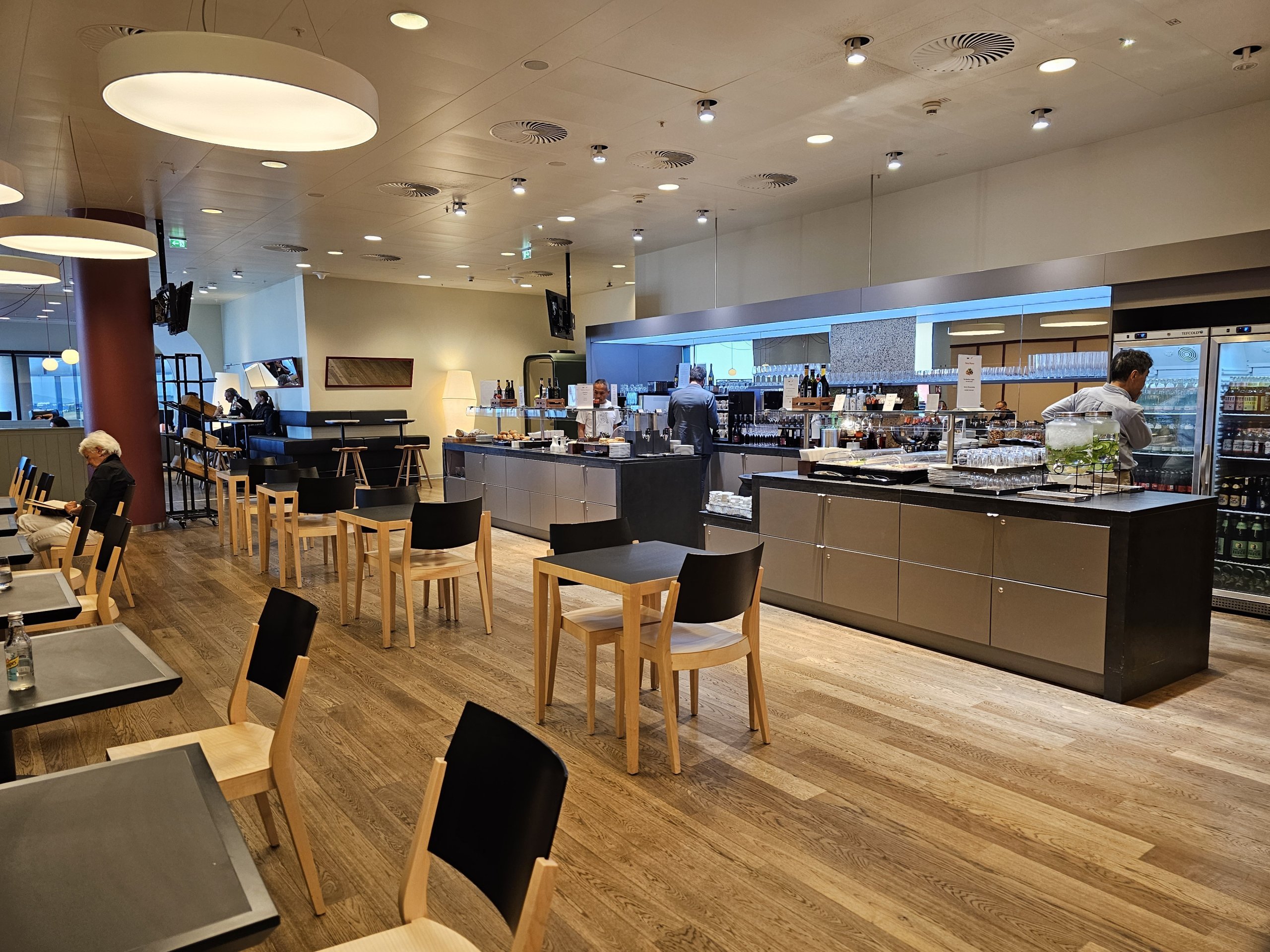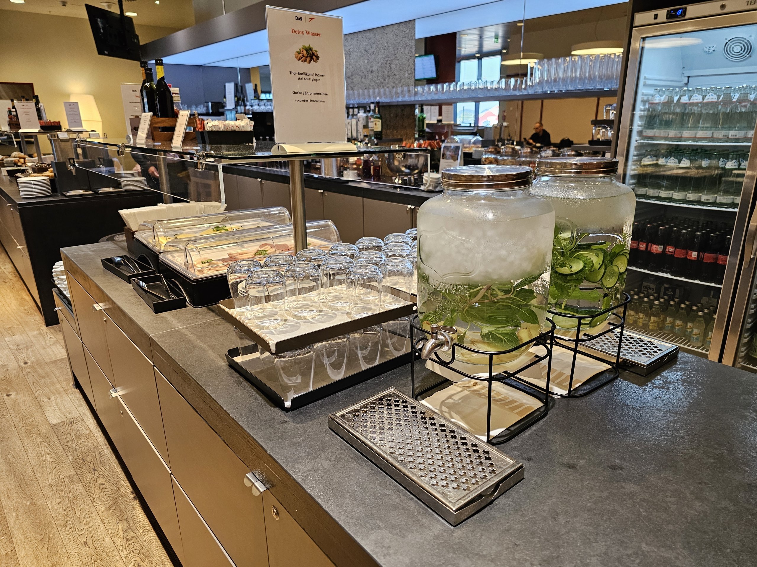Centriniame prekystalyje yra šaltoji virtuvė. Pasirinkimas gana vidutiniškas, palyginti su kitų oro linijų salėmis. Daržovių ir salotų pasirinkimas prastesnis nei kaimyninėje SKY salėje, negelbsti ir kumpių, saliamio bei sūrių lėkštės, kurių nėra daug ir tikrai nėra tarp aukščiausios kategorijos ingredientų.