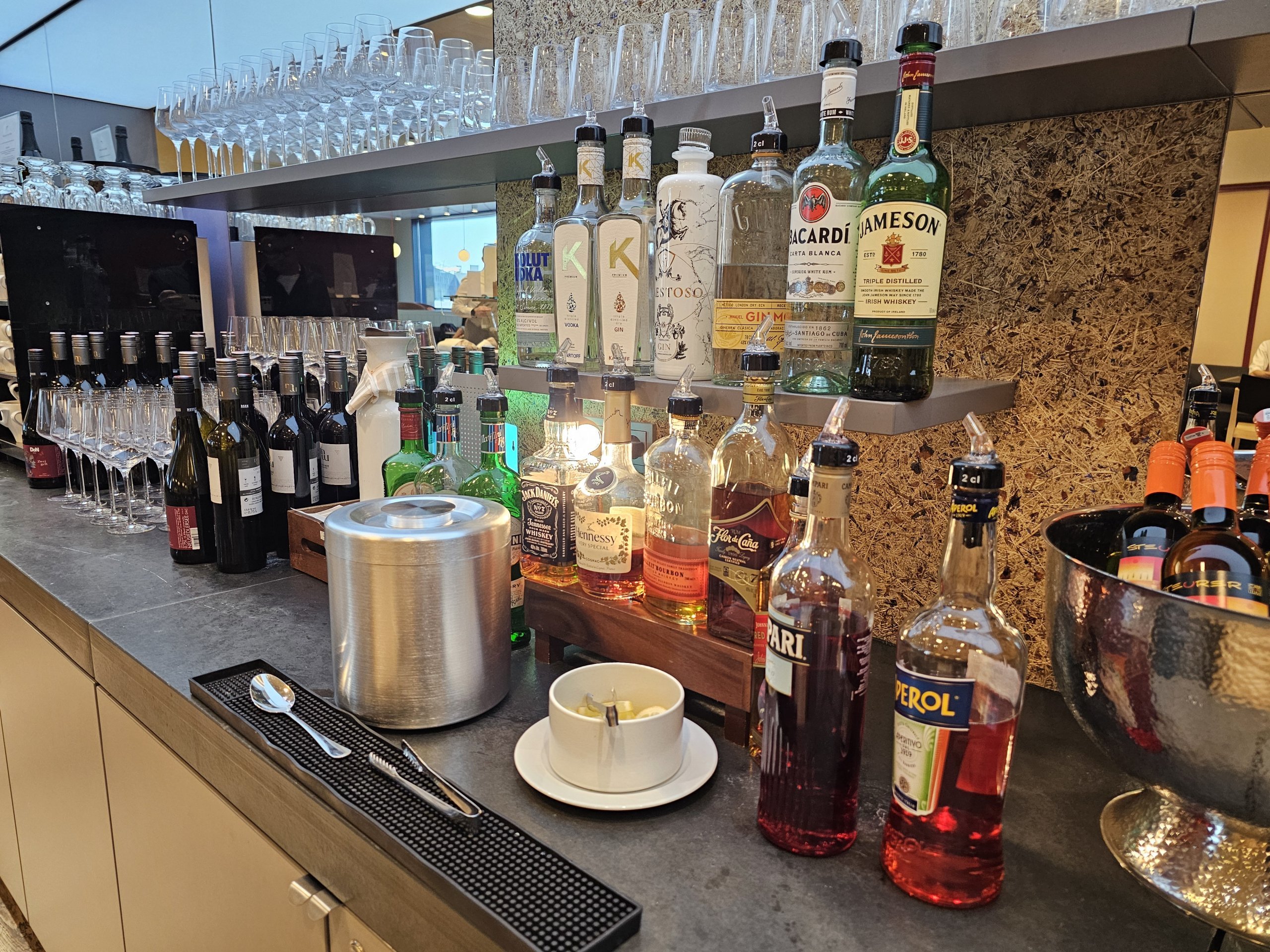 Taip pat randu raudonųjų ir baltųjų vynų bei gana padorų likerių ir stipriųjų gėrimų pasirinkimą, nors tai dažniausiai pigesnių prekių ženklų gėrimai.