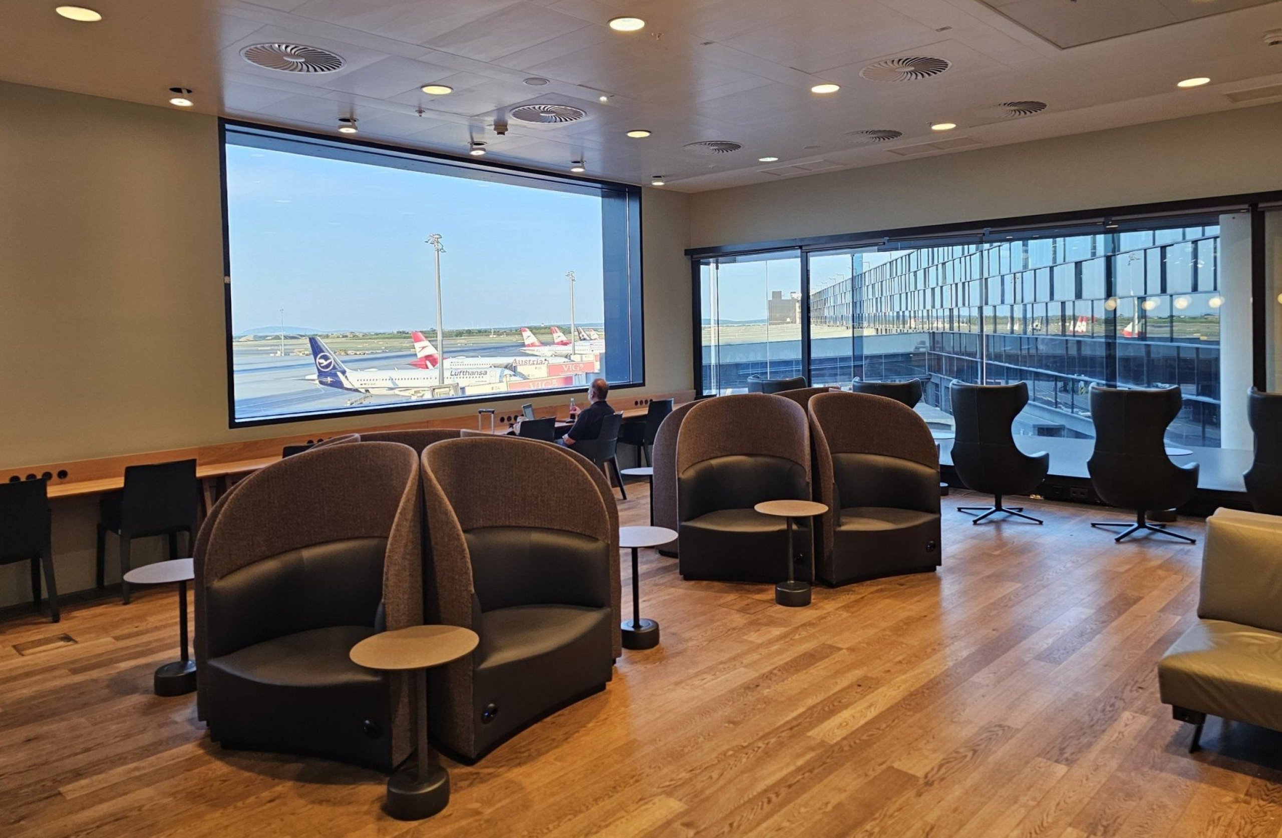 Kaip ir dauguma kitų "Lufthansa Group" oro linijų salonų, "Austrian Lounge" padalytas į tris dalis:
