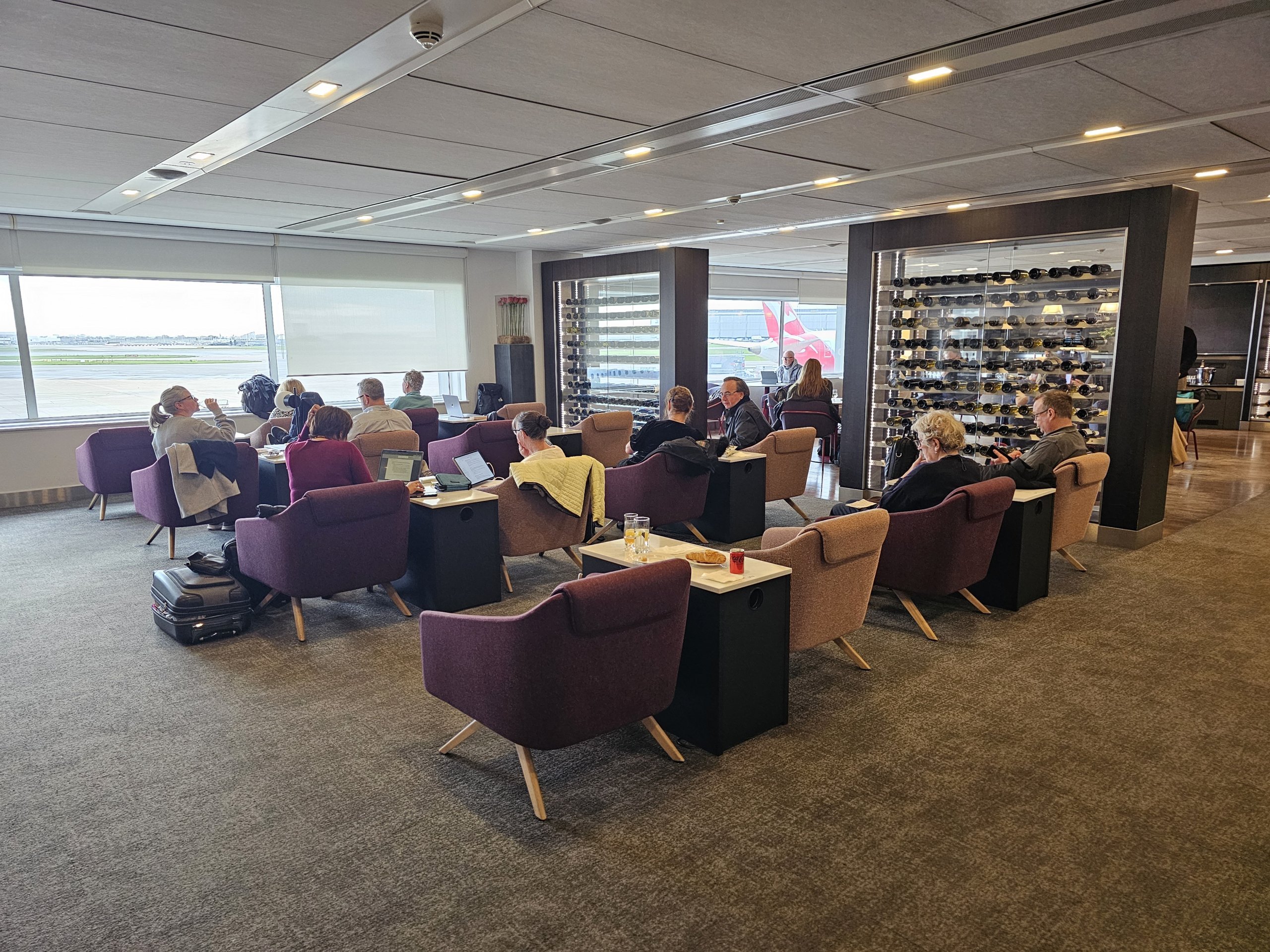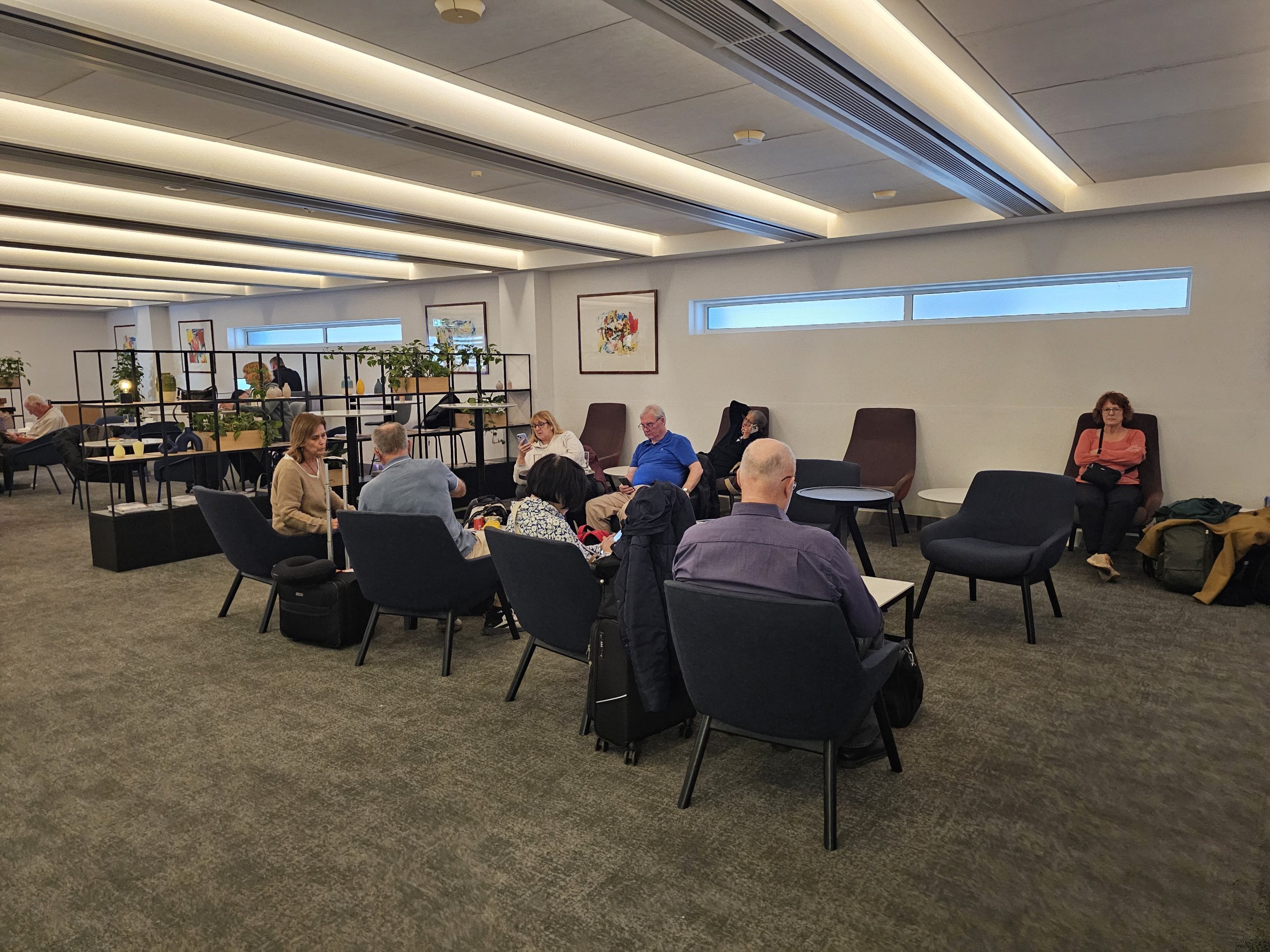 Salonas yra gana erdvus, tačiau, kadangi "British Airways" visą dieną vykdo daug skrydžių iš 3 terminalo, dauguma vietų dažnai būna užimtos.