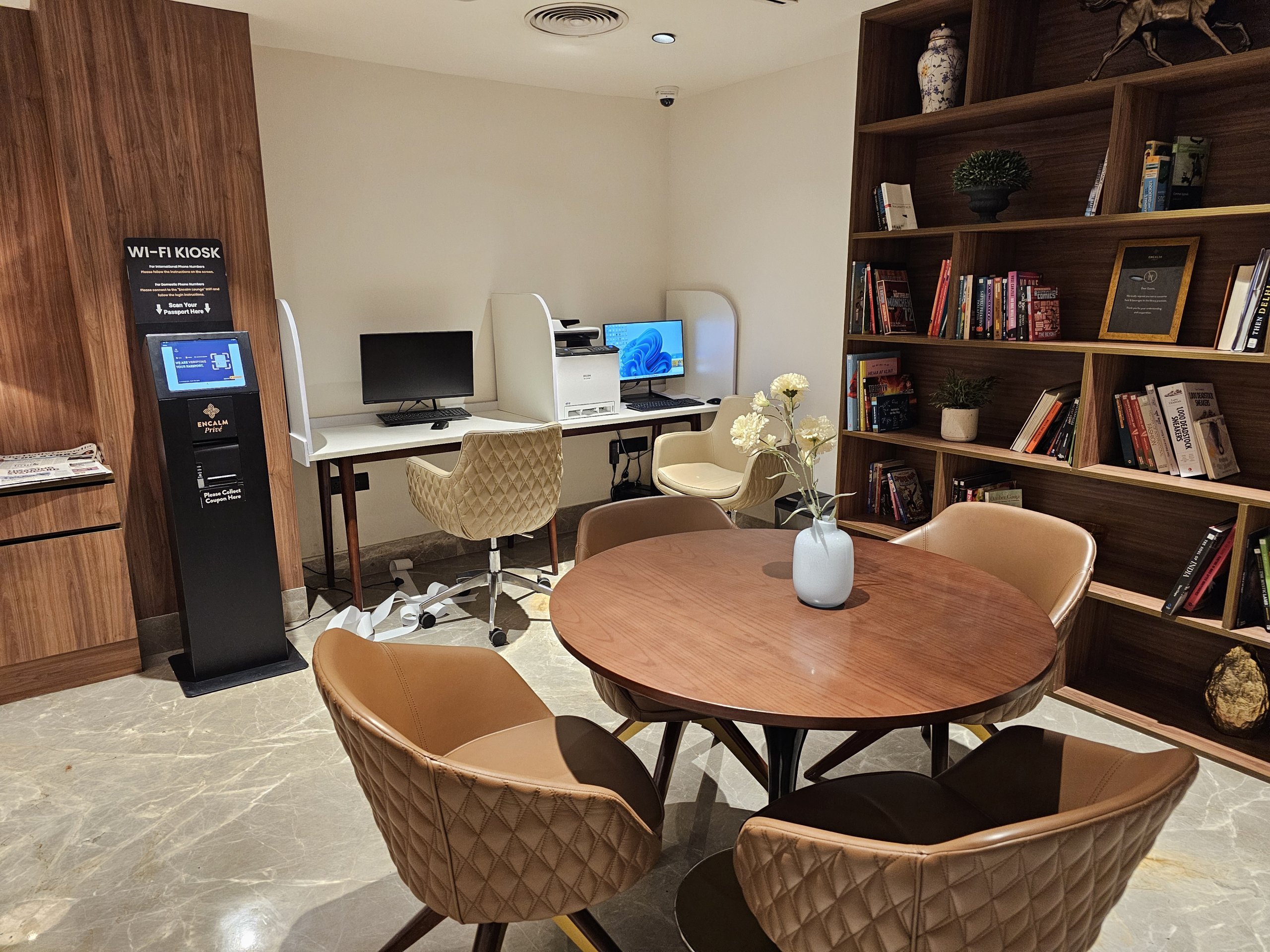 Paprastai galėčiau apsilankyti tik "Air India" salone, tačiau šiuo metu jis remontuojamas, o tuo metu "Air India" ir visos "Star Alliance" oro linijų bendrovės naudojasi "Encalm Privé".