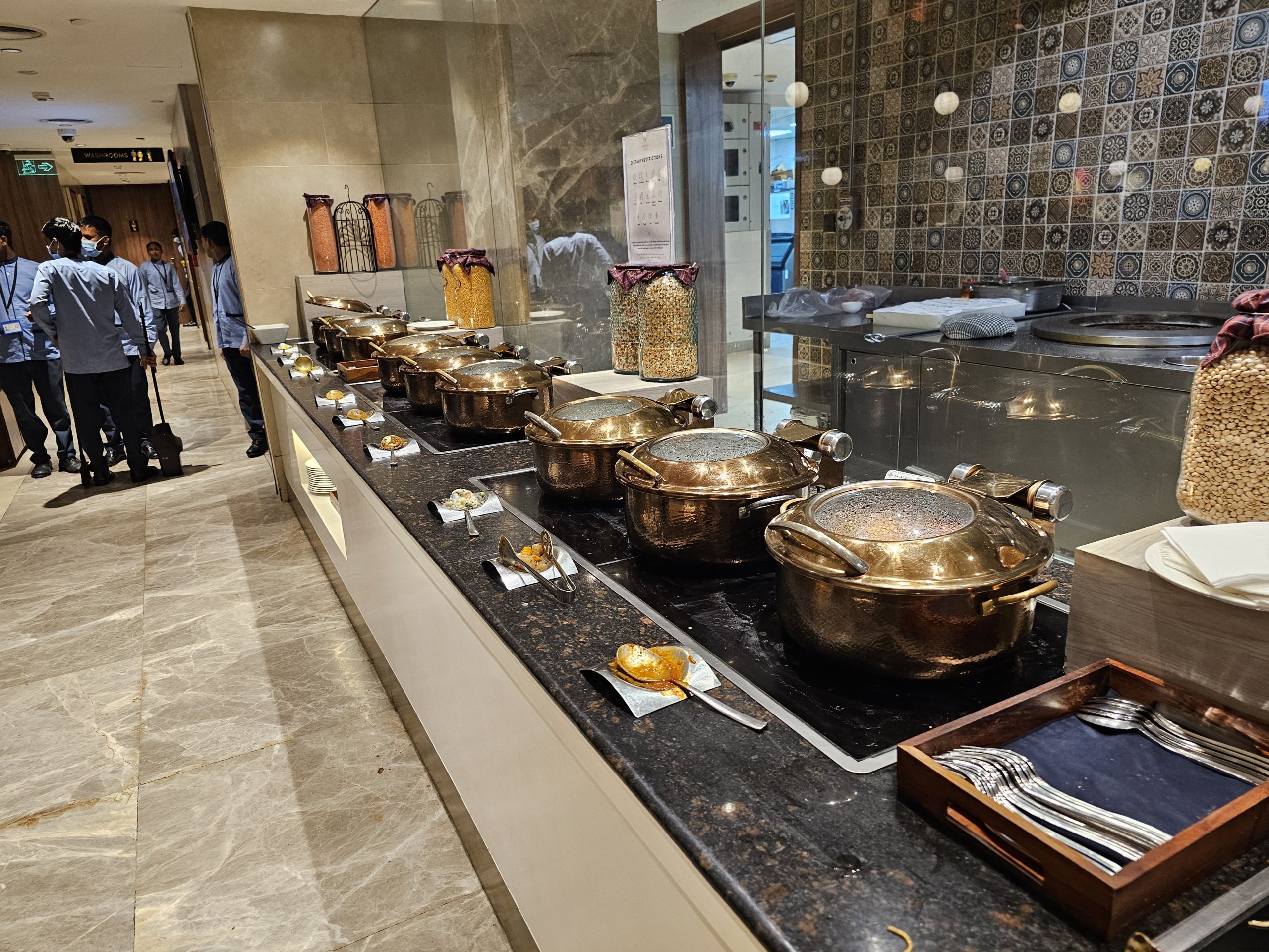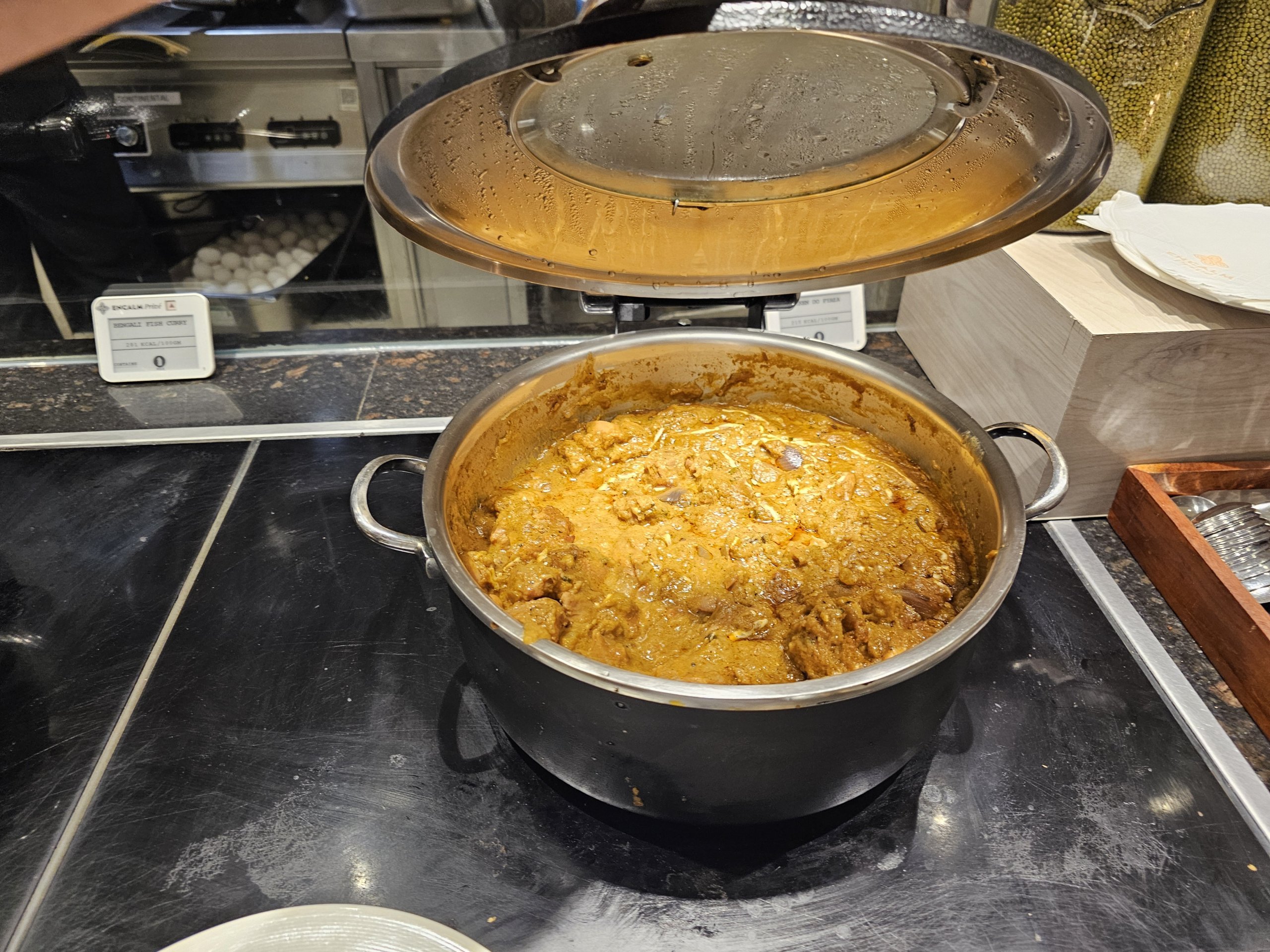 Ypač kalbant apie karštuosius patiekalus, negaliu pasakyti, ar daug pasaulyje yra salonų, kurių meniu būtų platesnis. Didžiąją dalį maisto sudaro indiškas maistas, tačiau dešiniojoje langelio dalyje rasite ir tarptautinės virtuvės patiekalų.