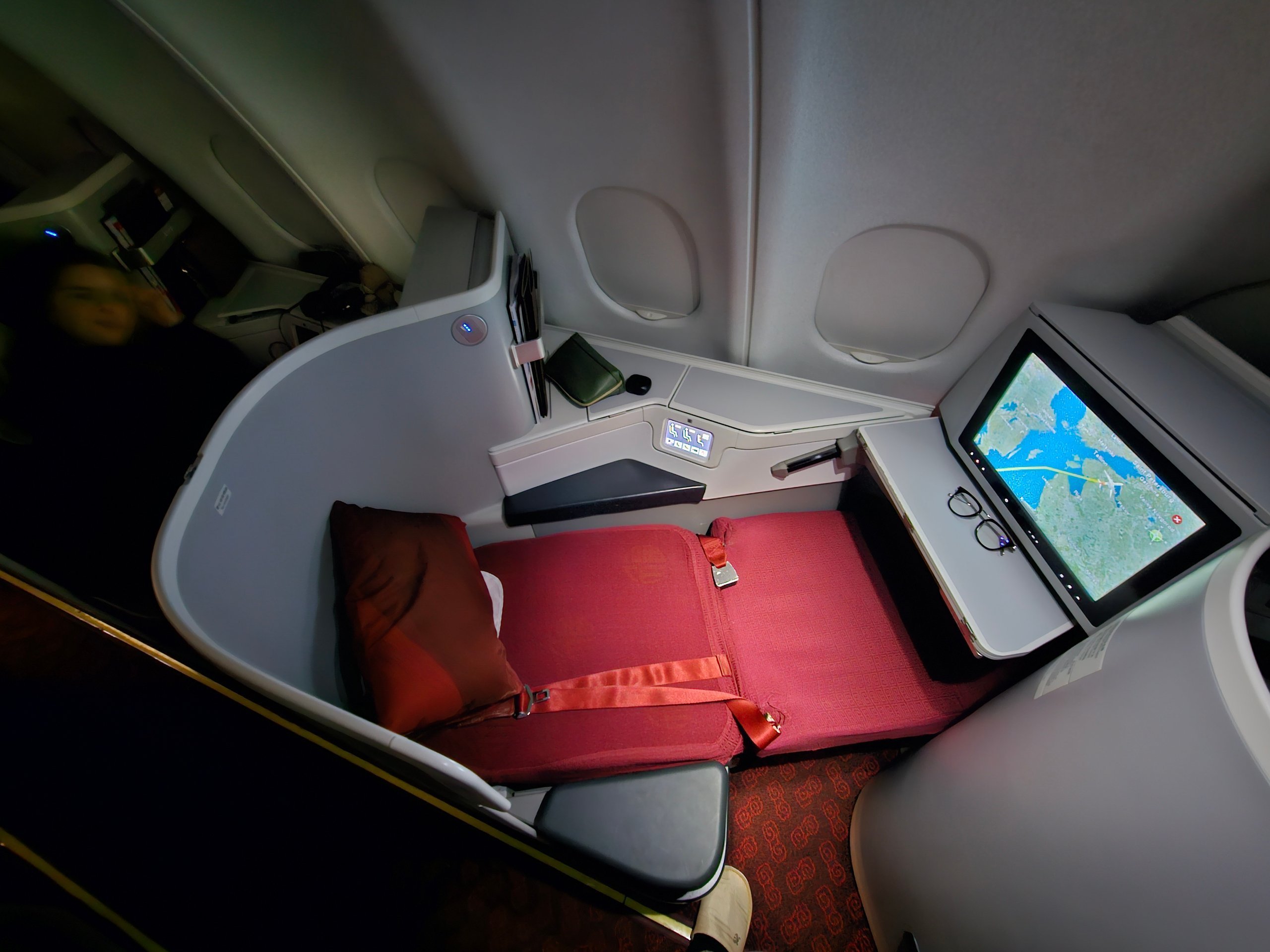 Pirmasis skrydis iš Prahos į Pekiną buvo vykdomas senesniu "Airbus A330-300", tačiau naujesnės konfigūracijos lėktuvu nei jungiamasis PEK-BKK segmentas. Lėktuvo tipas gali turėti reikšmės - ypač jei sprendžiate miego komforto, privatumo ar konkrečios salono konfigūracijos klausimus.
