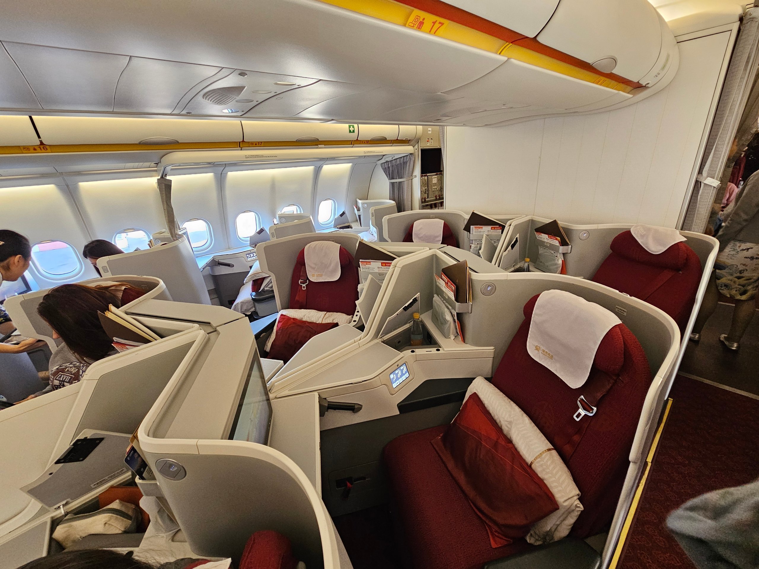 "Hainan Airlines" savo "Airbus A330-300" lėktuvuose taiko dviejų tipų 1-2-1 konfigūraciją su tiesioginiu priėjimu prie praėjimo iš visų sėdynių: