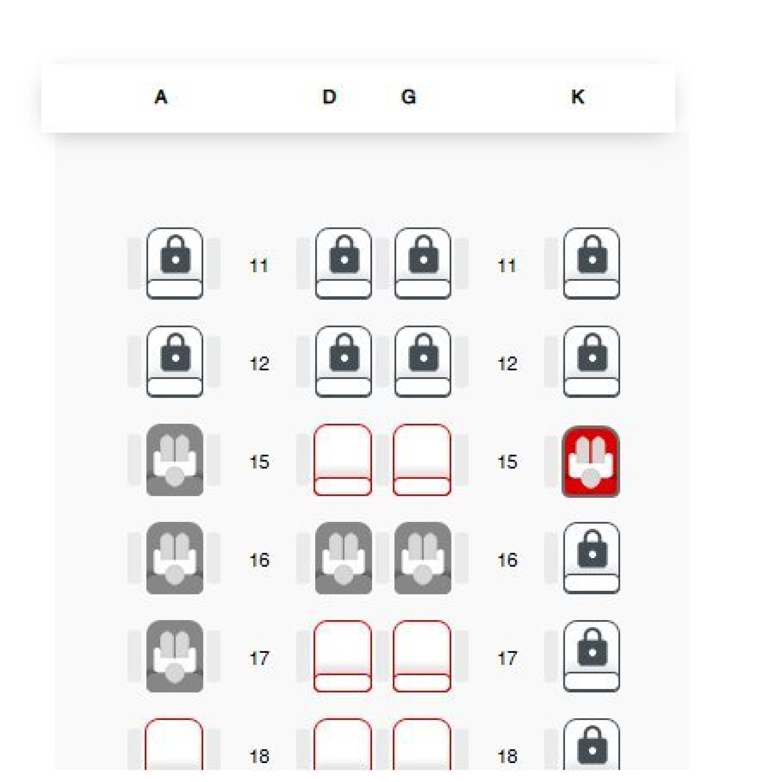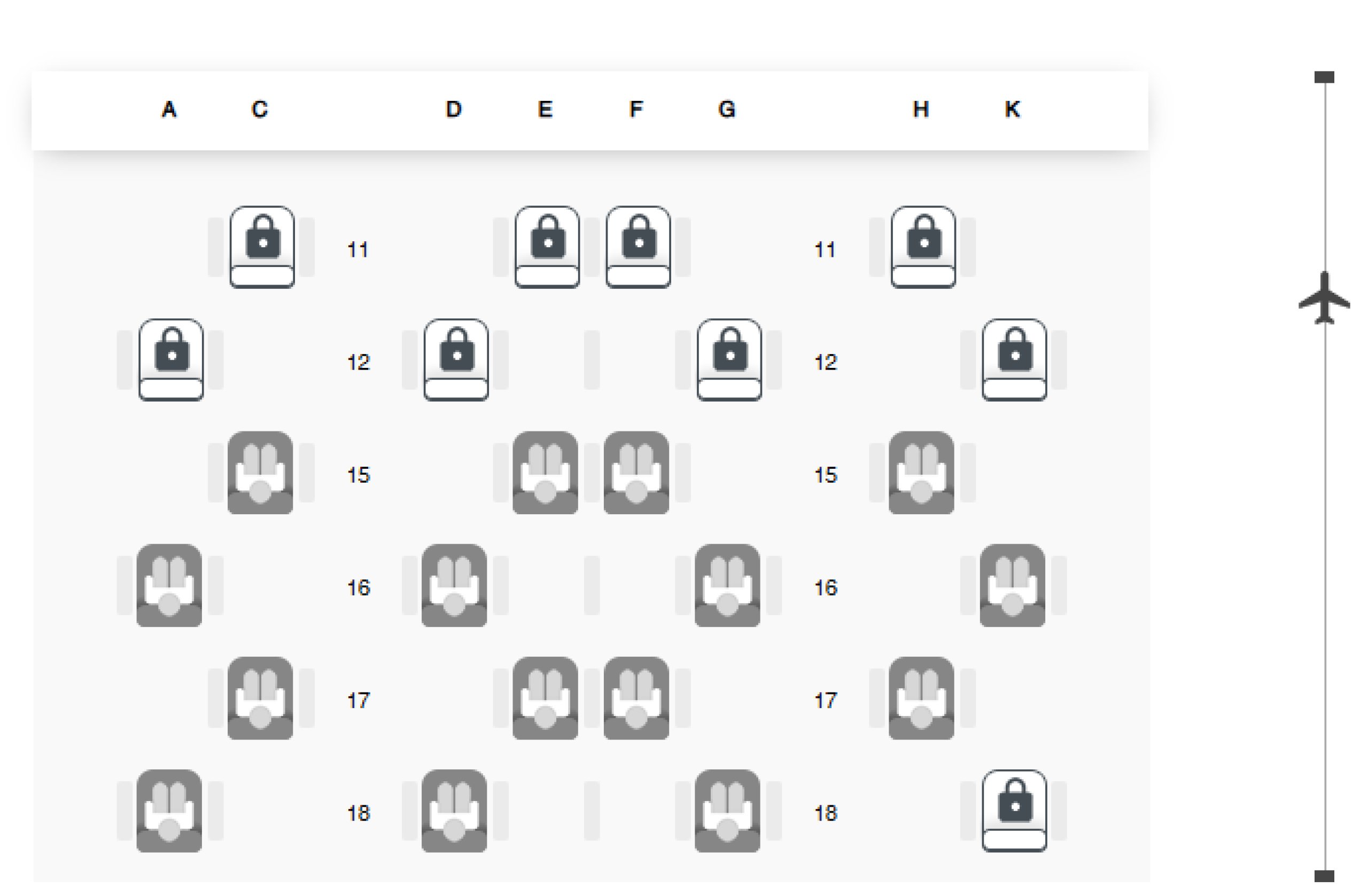 Žiūrėdami į sėdimų vietų schemą "Hainan Airlines" interneto svetainėje, kai perkate bilietą.