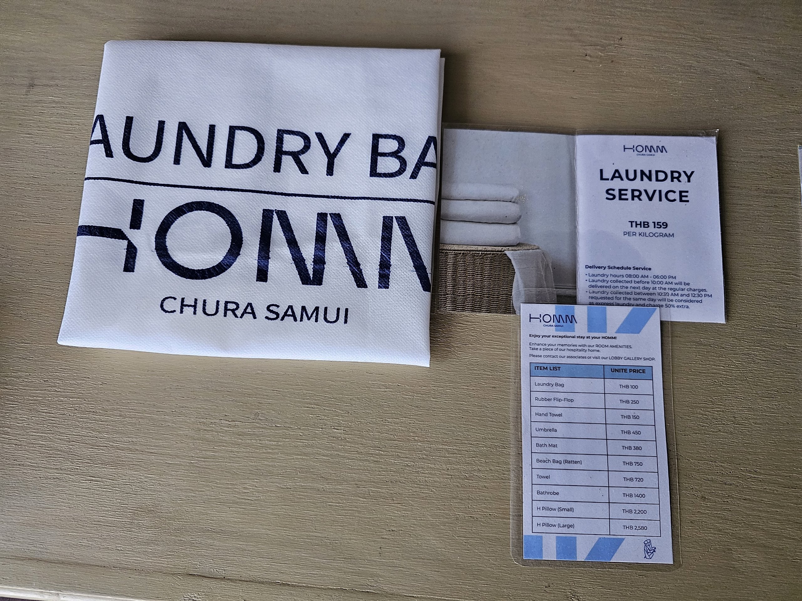 - Skalbyklos paslauga - išskalbti 1 kg nešvarių skalbinių kainuoja 159 tūkst. tbanų (palyginimui, viešosiose skalbyklose bet kurioje gatvėje 1 kg skalbinių kainuoja nuo 50 tbanų, o jų Koh Samui saloje yra labai daug)