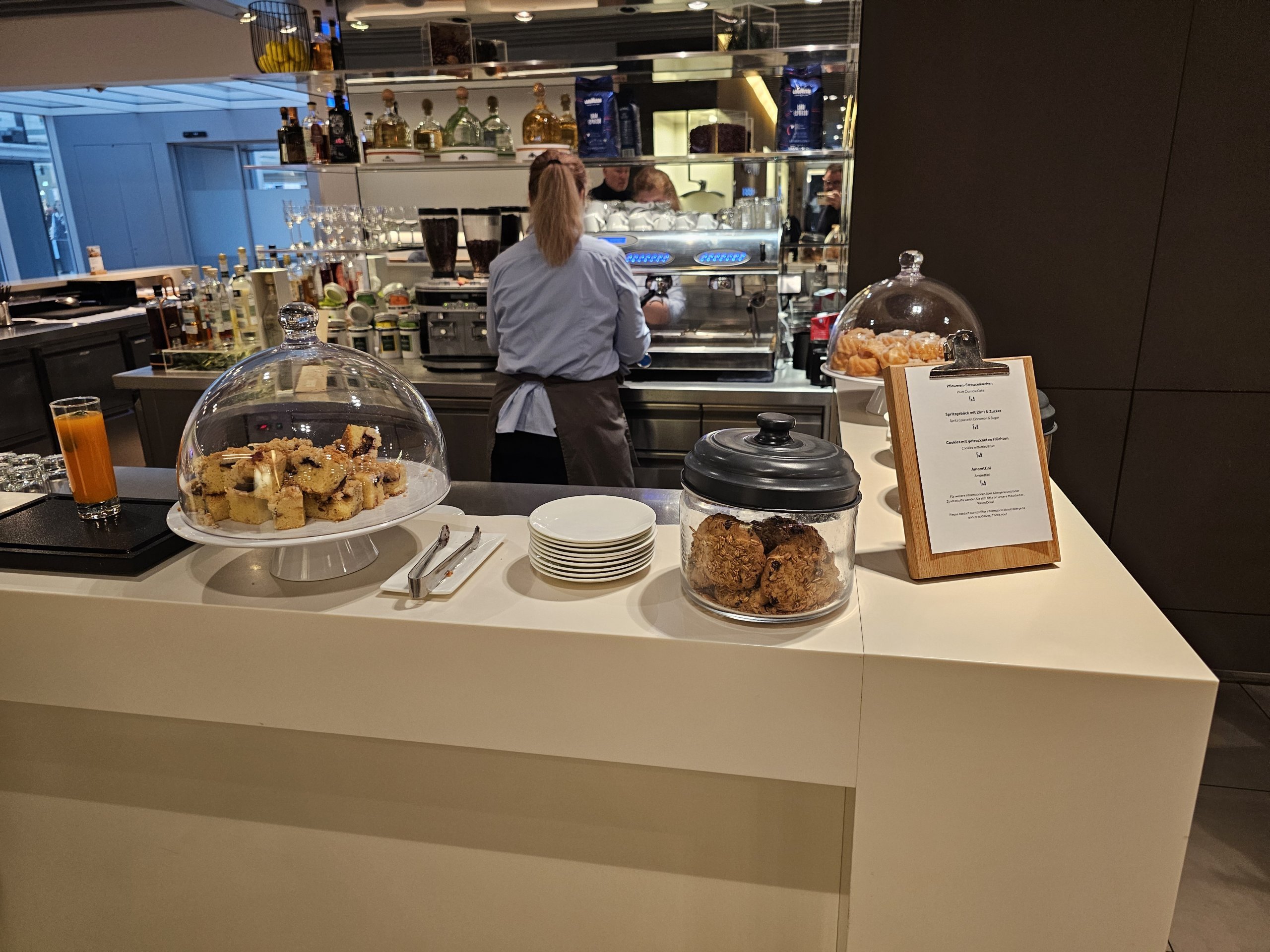 Tiesą sakant, nepastebiu didelio skirtumo nuo standartinio "Lufthansa" verslo klasės salono. Pagrindinis skirtumas - yra baras su daug platesniu alkoholinių gėrimų pasirinkimu, bet kadangi keliaudamas savarankiškai geriu labai mažai alkoholio, šis pokytis man visai nereikšmingas.