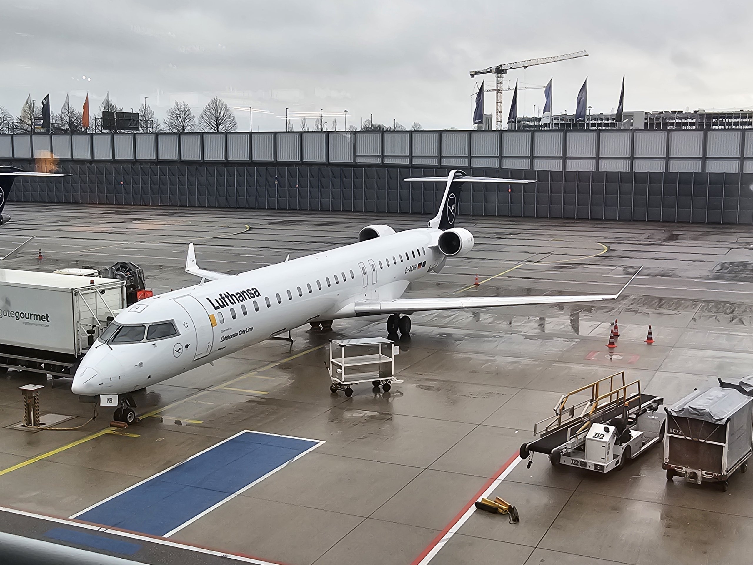 Likus maždaug 15 minučių iki įlaipinimo į lėktuvą nueinu prie jo. Skrendame mažiausiu "Lufthansa" lėktuvu - "Bombardier CRJ-900", o tai reiškia, kad įlaipinimas vyksta ne per įlaipinimo tiltelį, o pėsčiomis.
