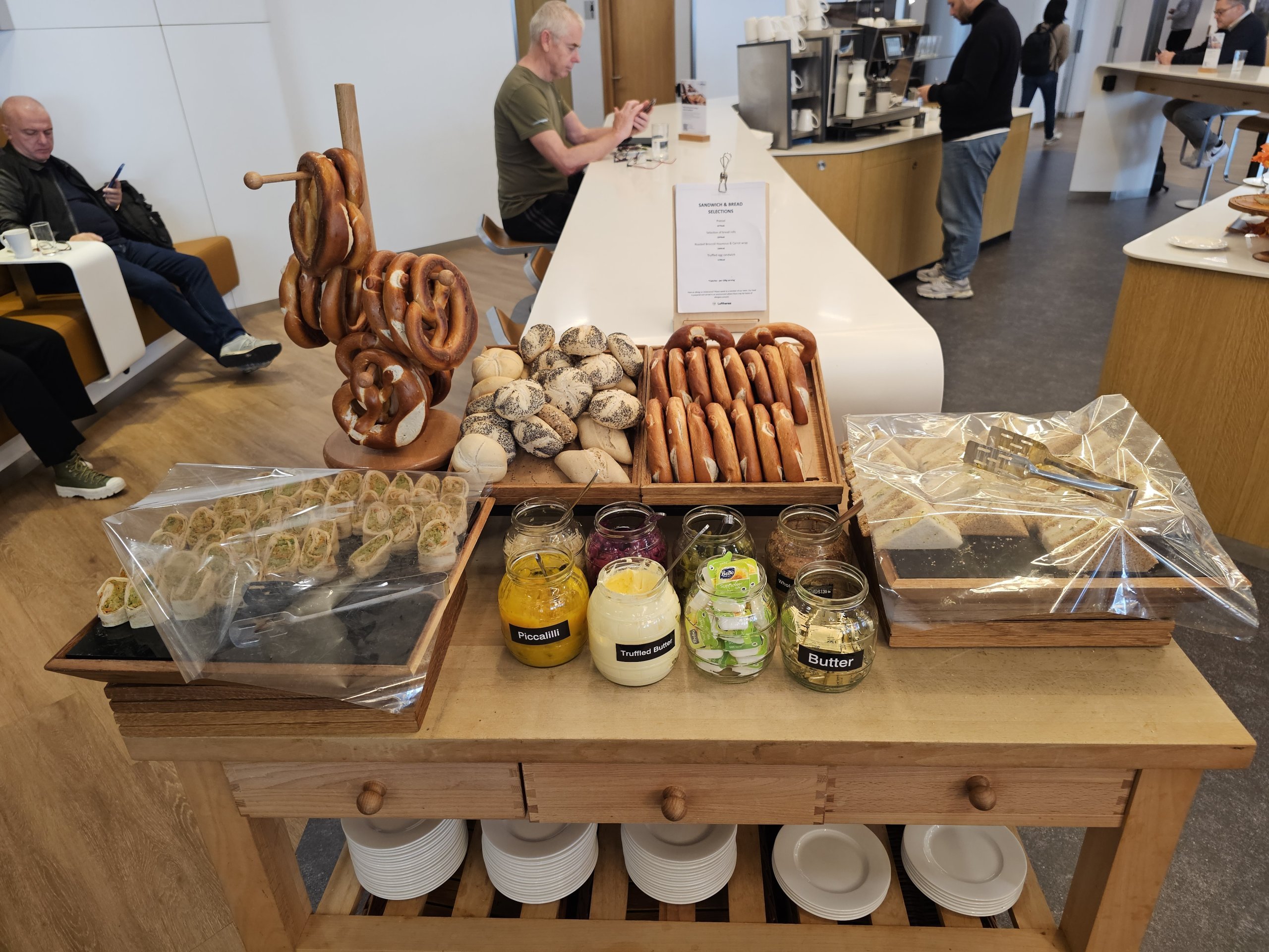 Hitrou oro uoste esantis "Lufthansa" poilsio kambarys yra gana maloni vieta greitai užkąsti prieš skrydį, taip pat greitai padirbėti prie daugybės nešiojamiesiems kompiuteriams pritaikytų stalų.