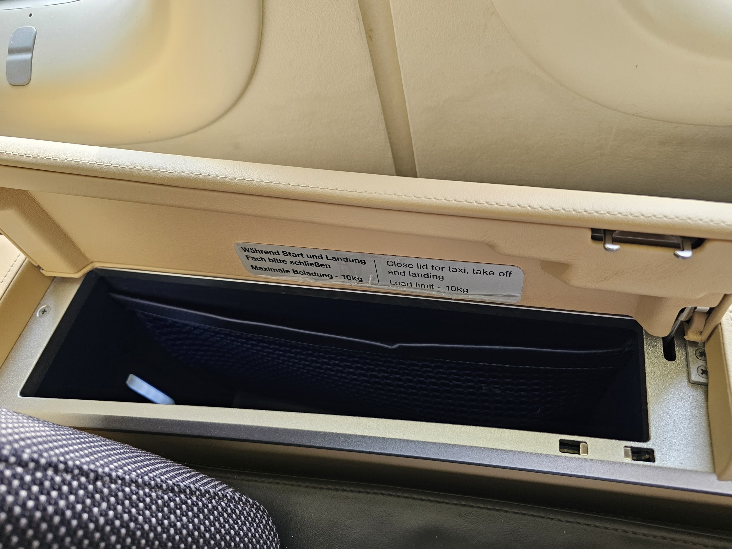 Tarp sėdynės ir langų turiu du erdvius skyrius, kuriuose telpa visi mano dokumentai, pavyzdžiui, pasas, įlaipinimo kortelės, taip pat galbūt didelis spausdintas meniu ar didelės ausinės.