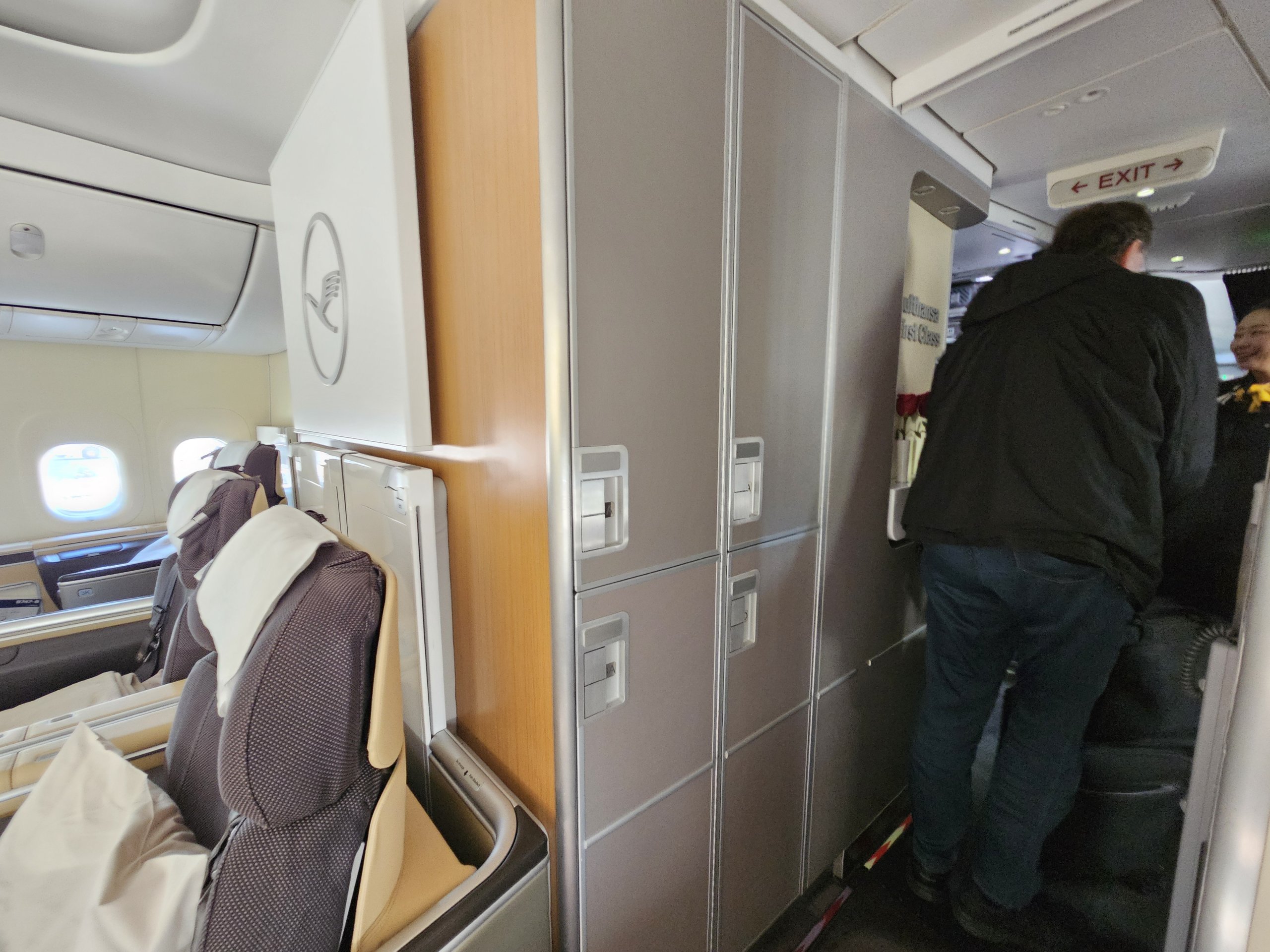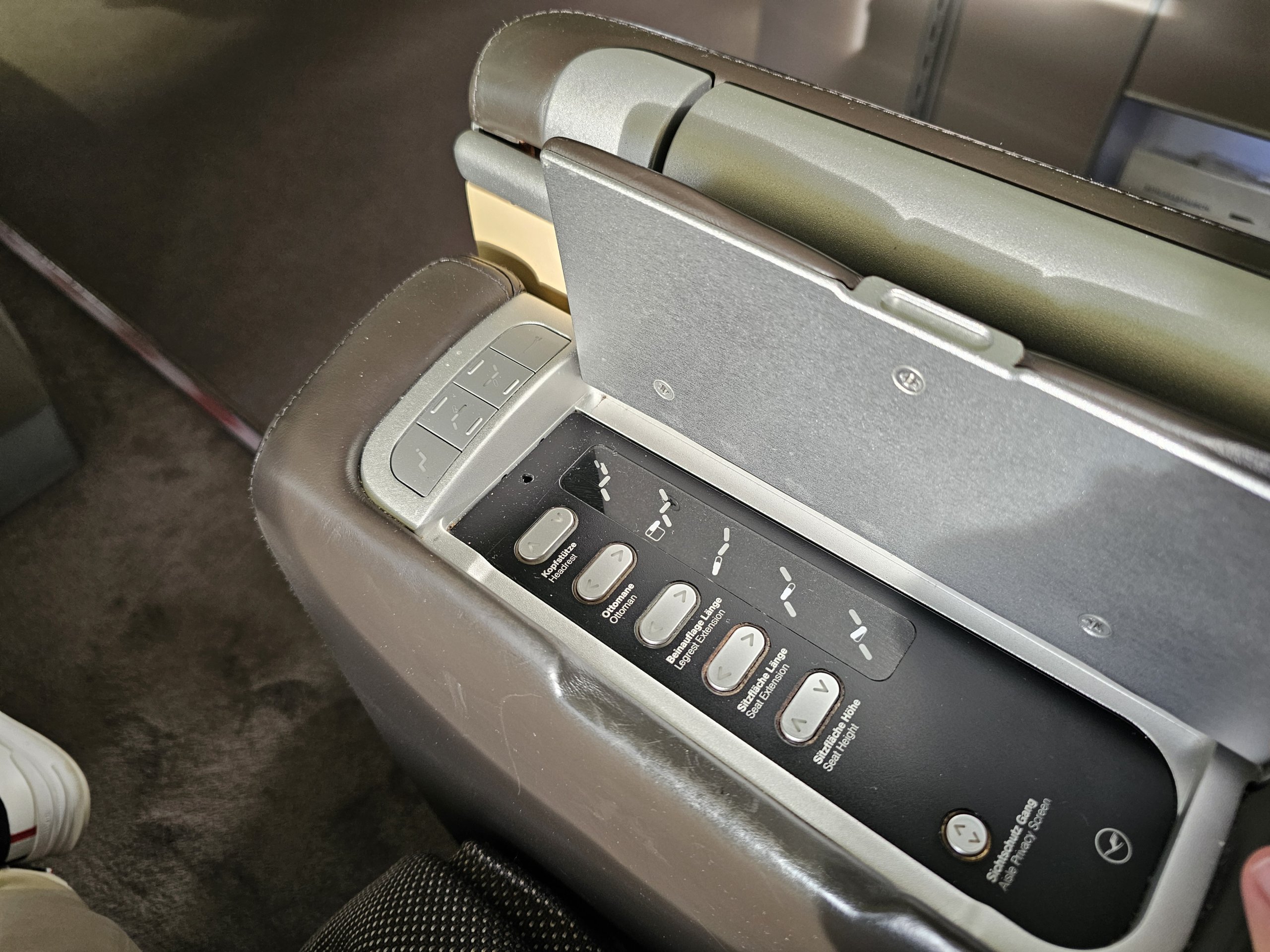 Senosios "Lufthansa" pirmosios klasės sėdynės nuo praėjimo neatskirtos jokiomis durimis ar užuolaida nuo grindų iki lubų, o tik gana žemu ekranu, kuris tiesiog negali sukurti visiško privatumo jausmo.