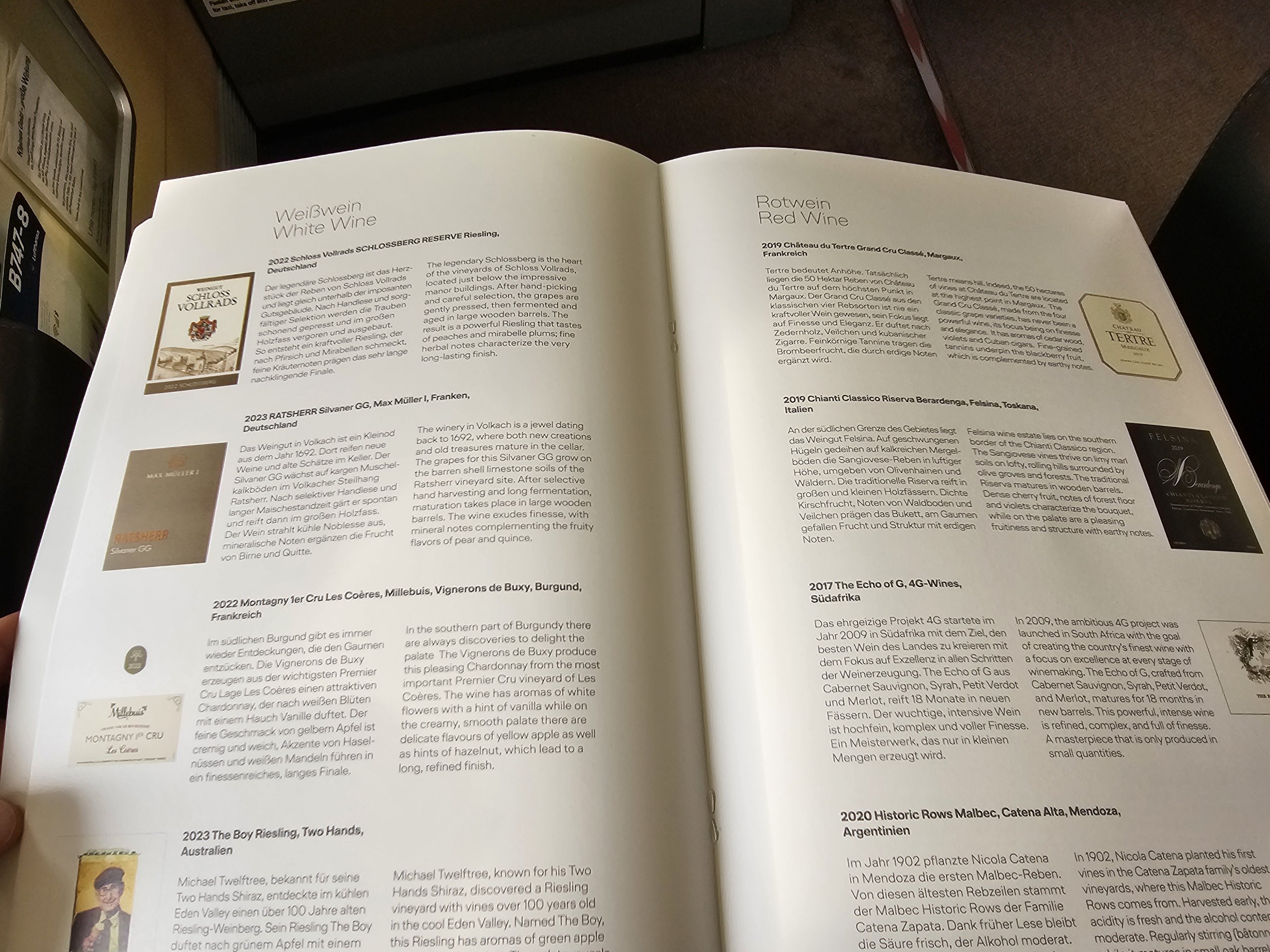 Prieš išvykstant visi keleiviai gauna atspausdintą meniu ir labai išsamų vyno sąrašą.