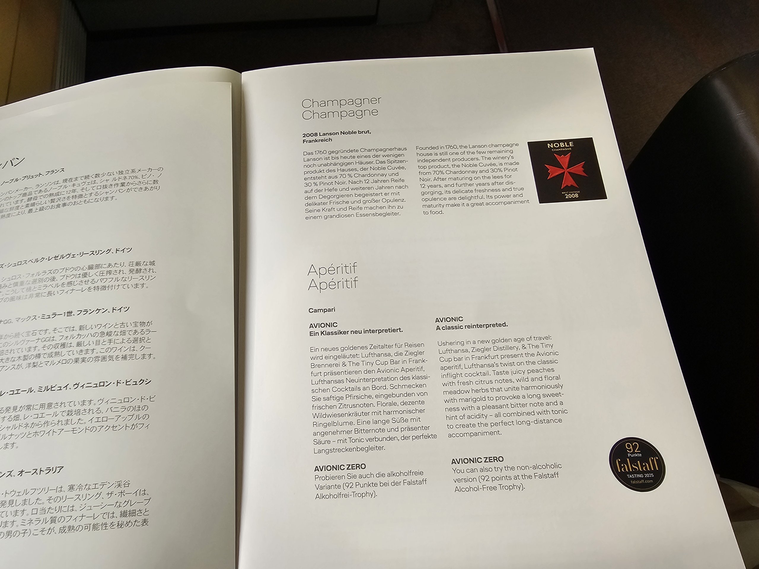 Prieš pagrindinį valgį išgeriu savo mėgstamiausią firminį "Lufthansa" kokteilį - "Avionic".