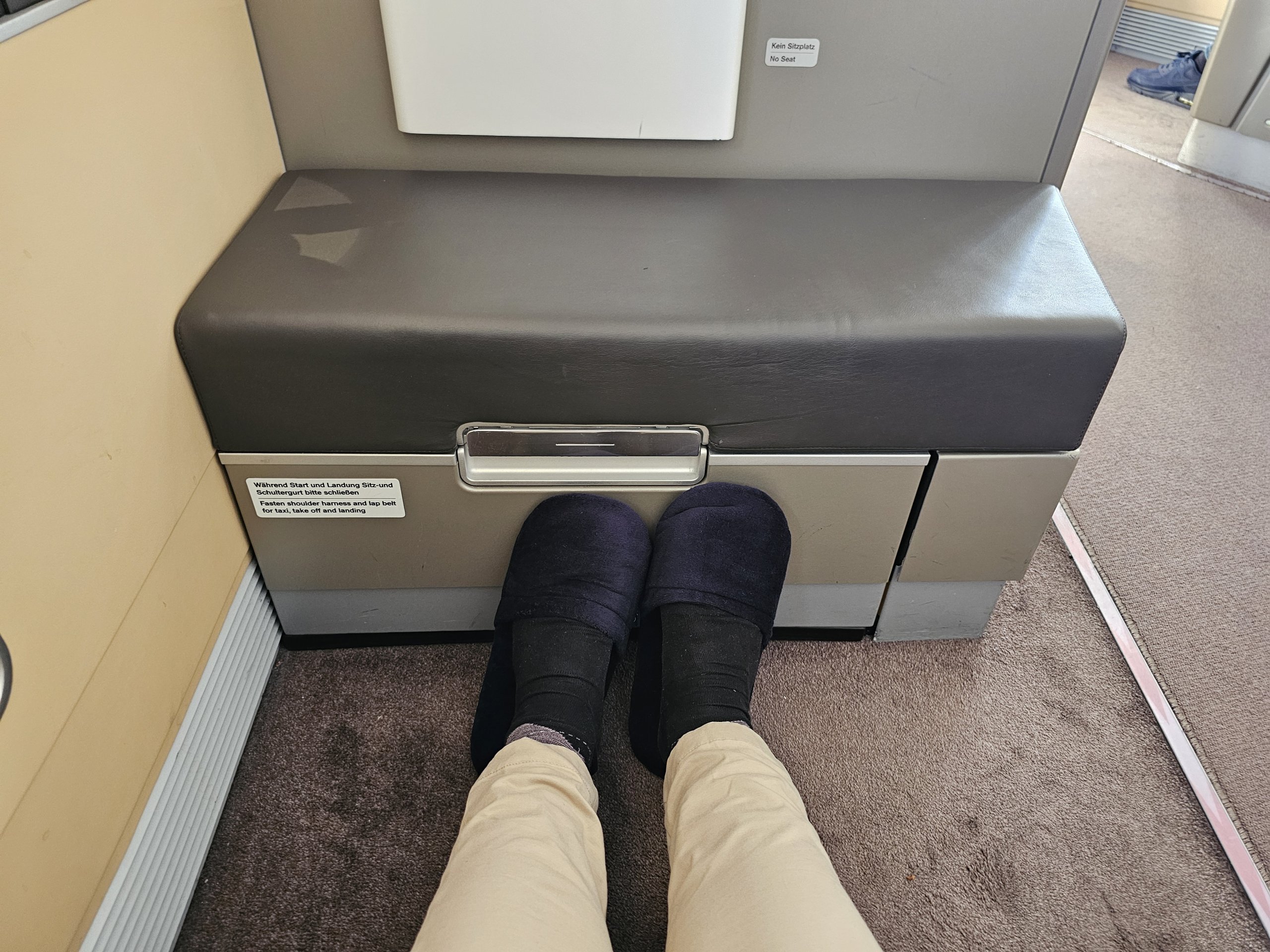 Nors pats galiu išskleisti sėdynę į horizontalią padėtį, patalynė, čiužinys ir antklodė laikomi orlaivio nosyje esančiuose skyriuose, prie kurių prieigą turi tik įgula.