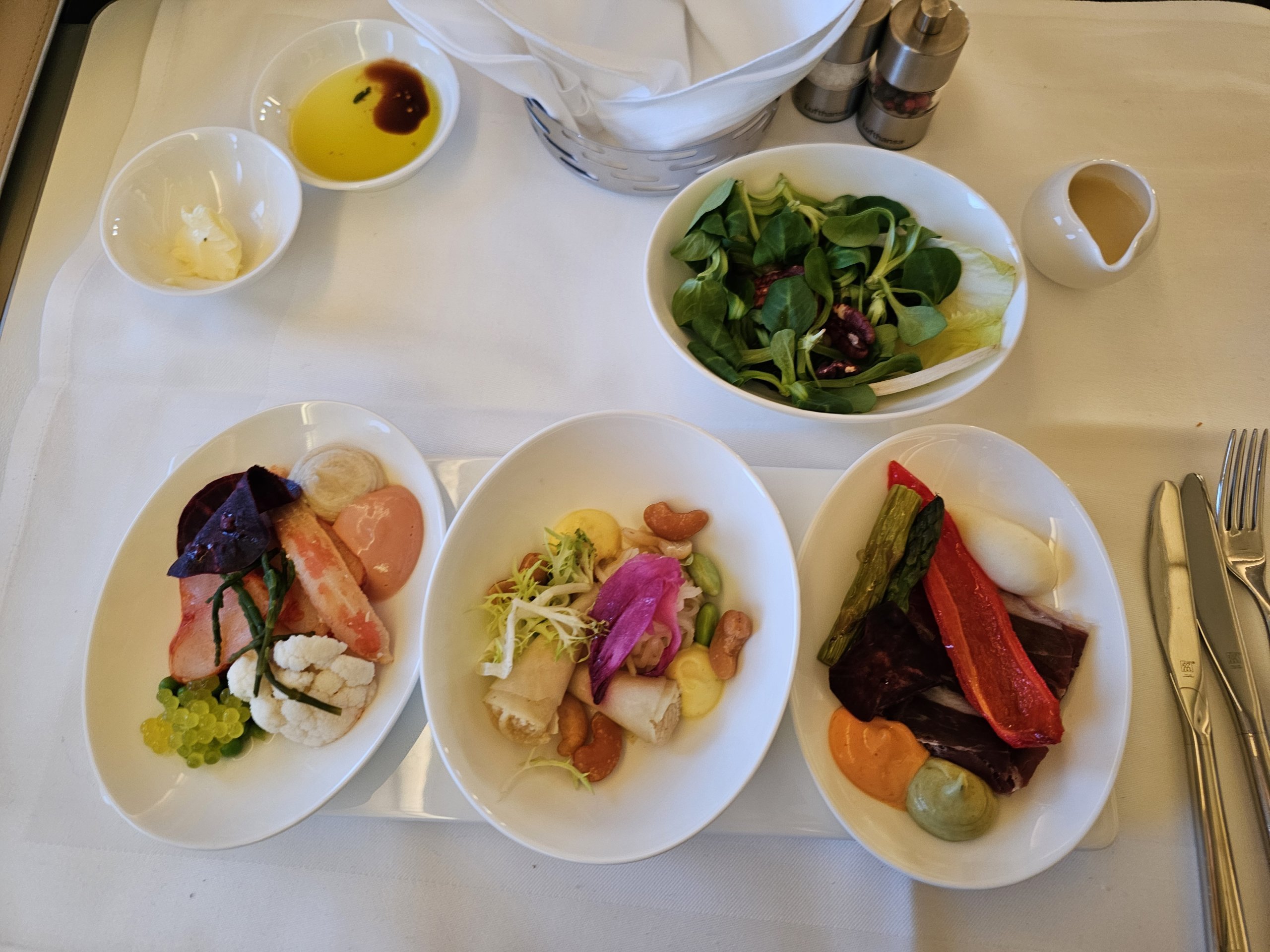 Užkandis labai šviežias, spalvingas, lengvas ir skanus! Man patinka pateikimas ir, palyginti su verslo klasės aptarnavimu, maisto yra daugiau ir daug įvairesnio.