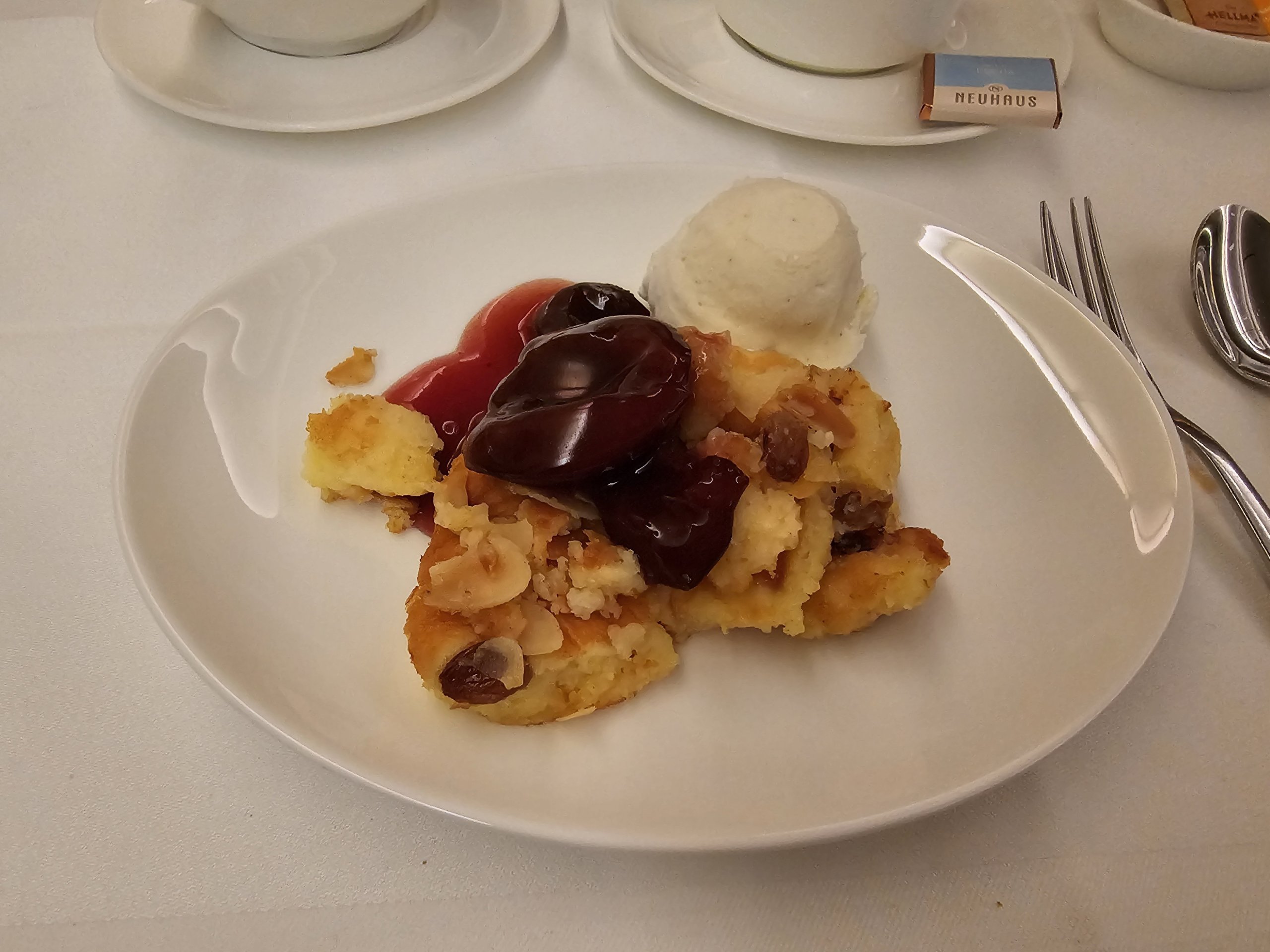 Labai mėgstu tradicinį vokišką Kaiserschmarren. Čia jį gaunu su slyvų padažu ir nuostabiais vaniliniais ledais. Nemanau, kad kada nors valgiau geresnį Cezario krekerį.