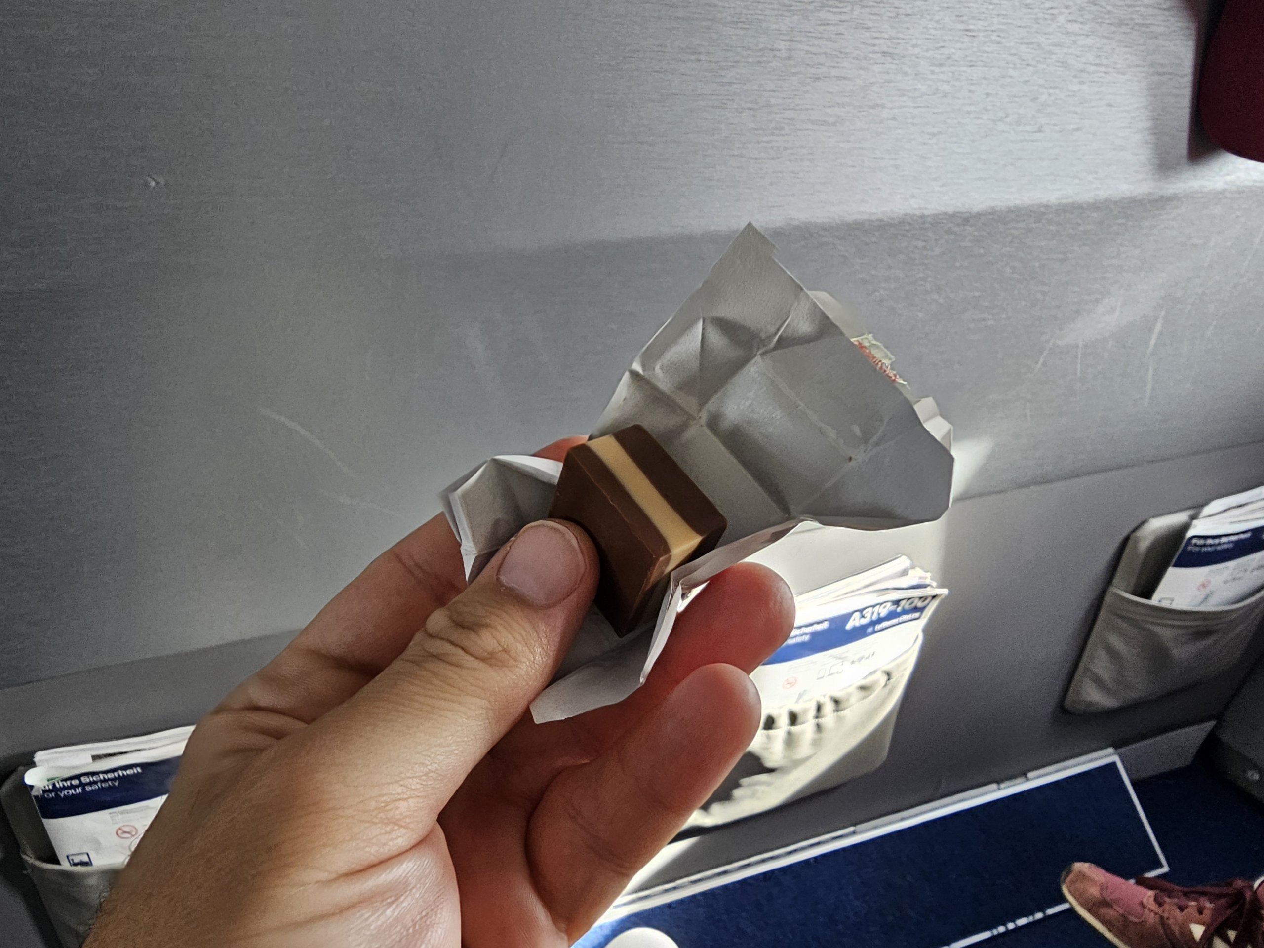 Po to, kai įgulai pavyko išsisukti su pirmąja paslauga, t. y. vienu mažu buteliuku vandens, įsitikinau, kad maistas bus sumažintas iki absoliutaus minimumo ir gausime daugiausia šokoladinių saldainių dėžutę.