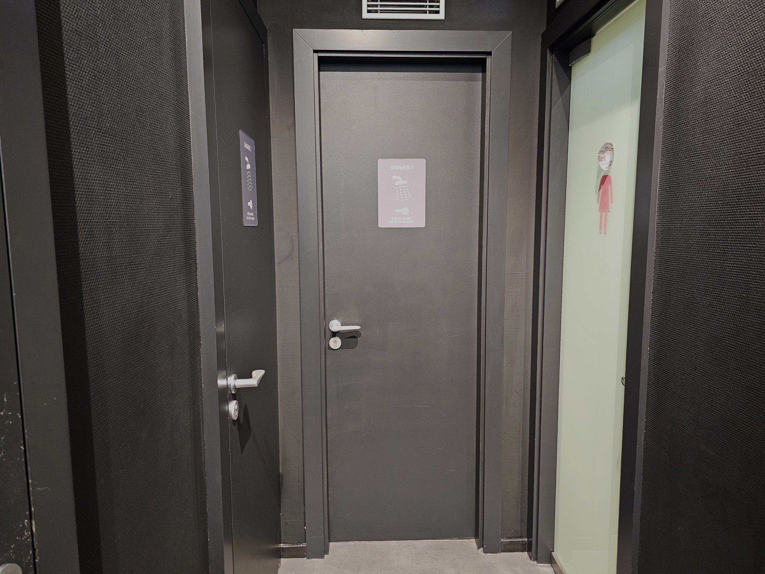 Dušai tualetuose yra nemokami visiems salės lankytojams. Norėdami patekti į juos, registratūroje turite paprašyti rakto.
