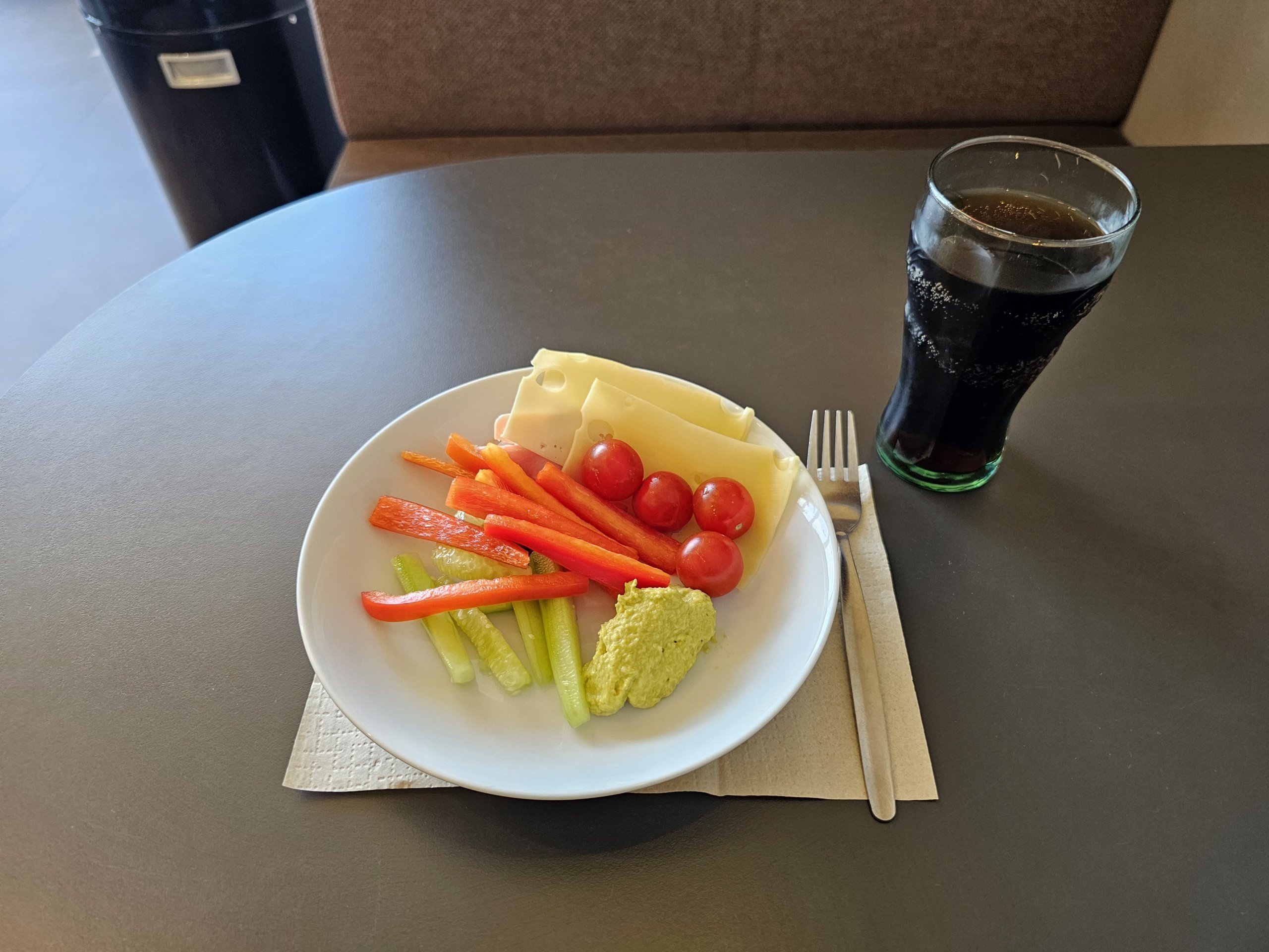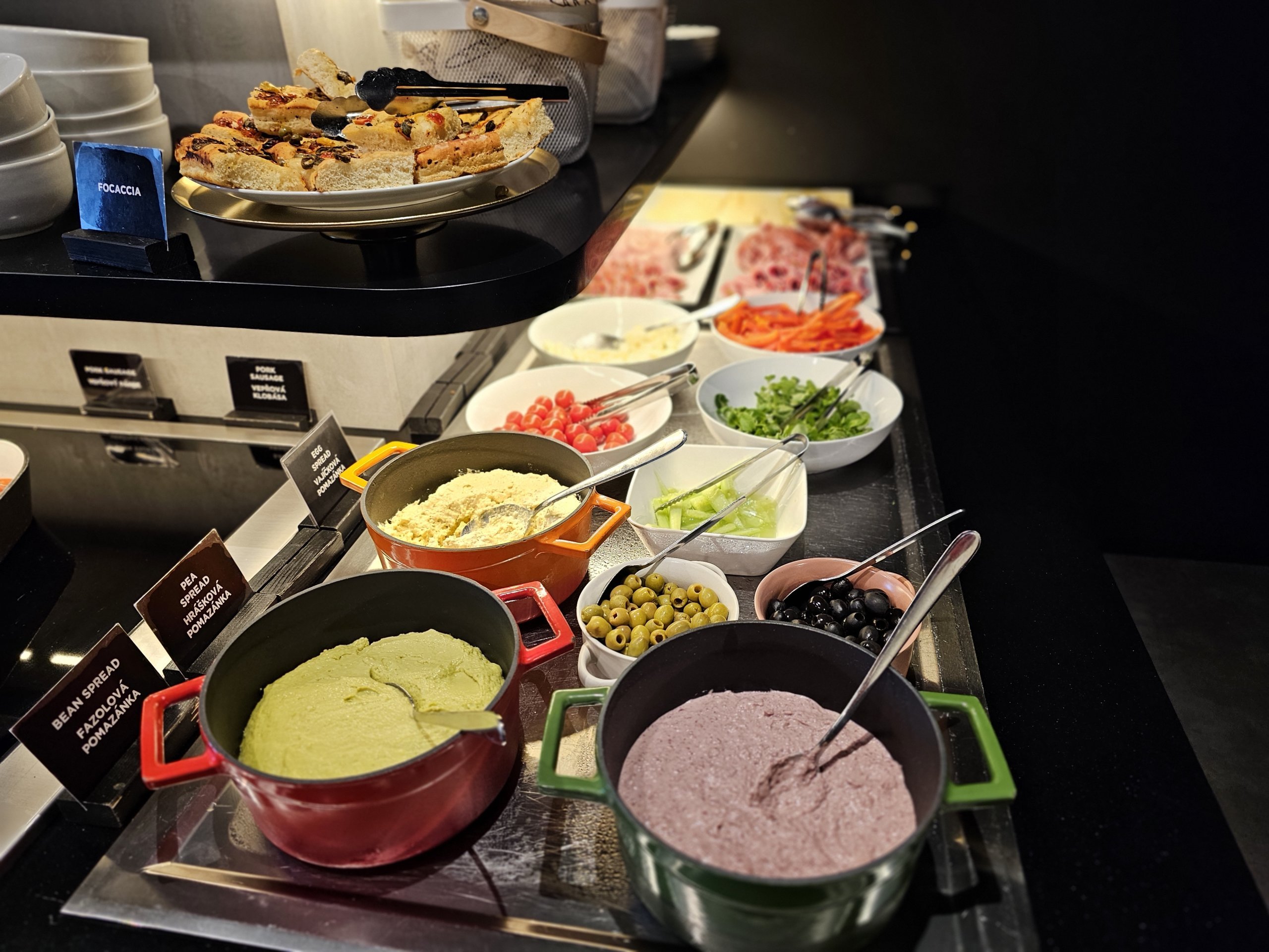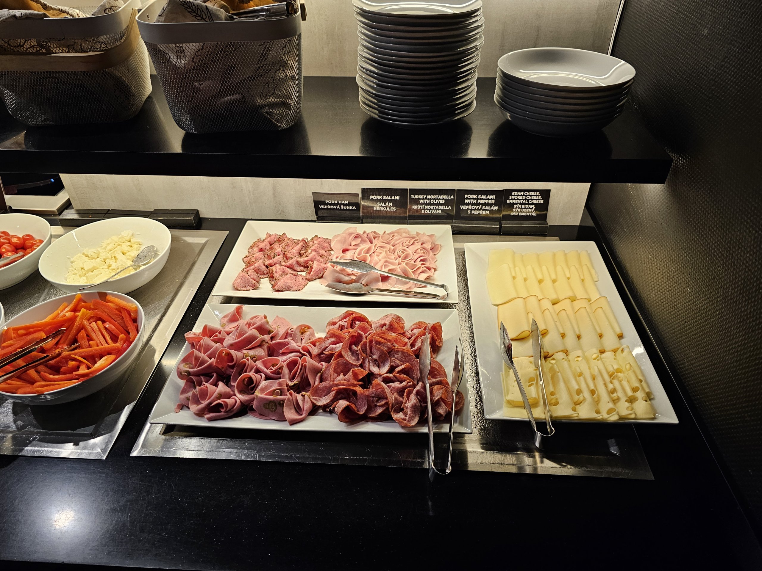 Iš šaltųjų patiekalų galima rinktis trijų rūšių sūrį, kumpį ir saliamį, tačiau meniu stulbinamai primena viešojoje oro uosto dalyje esančiame prekybos centre "Billa" esančius pigiausius produktus...