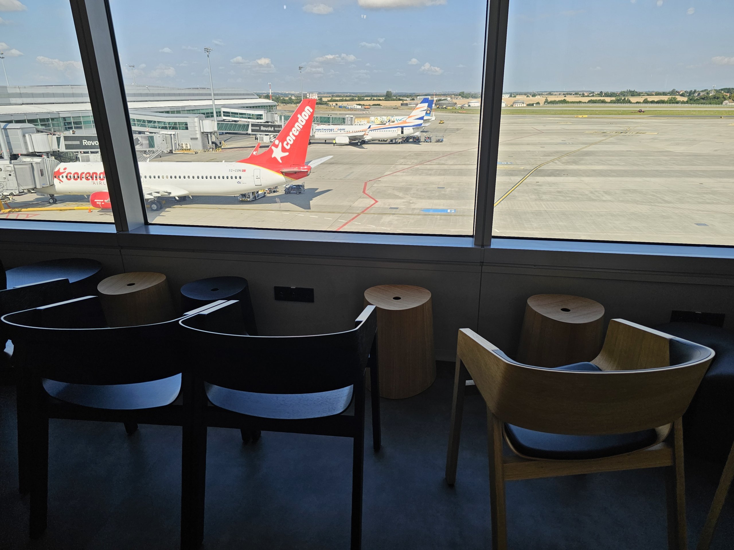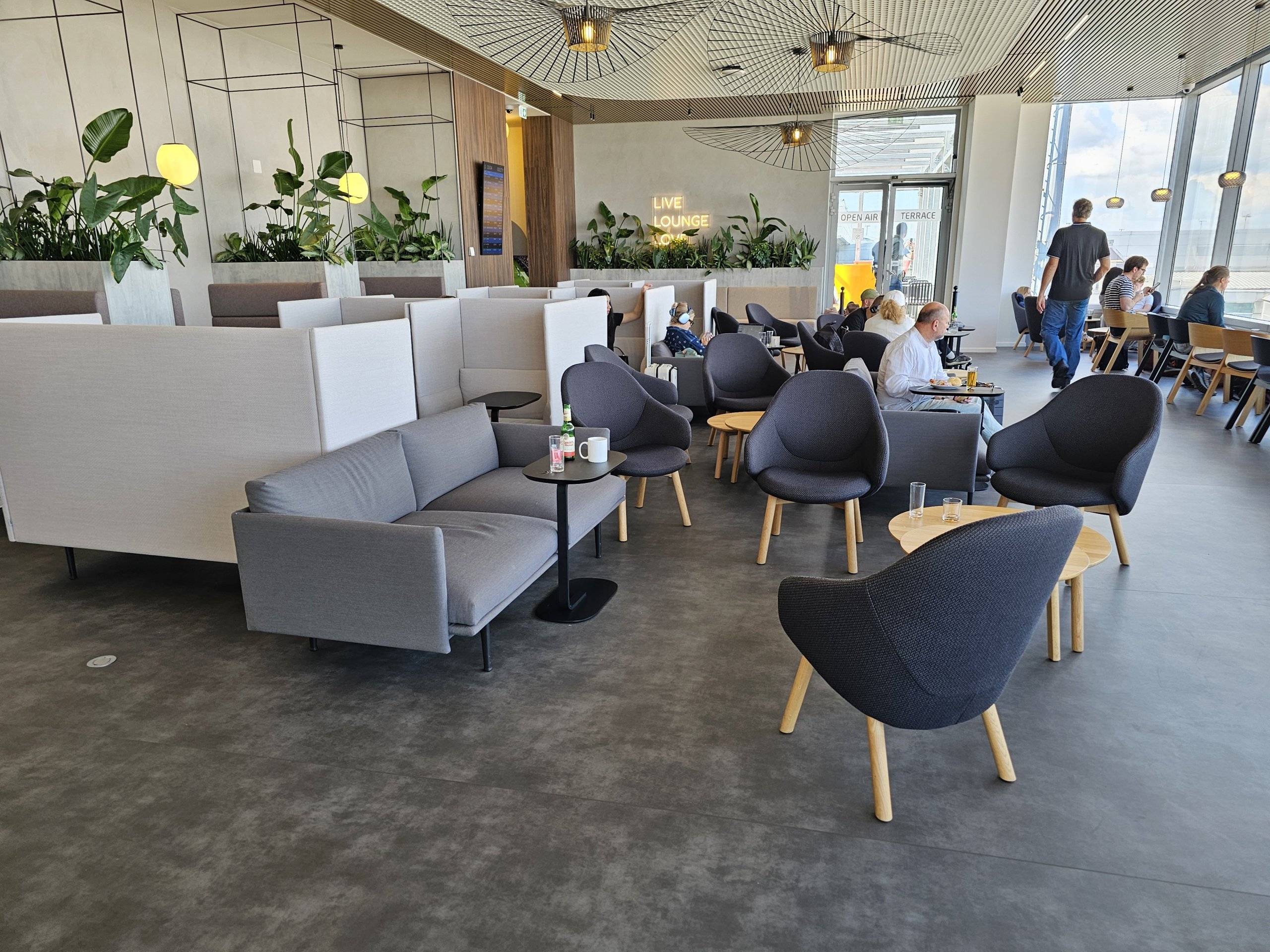 Po 2025 m. atlikto visiško atnaujinimo salė buvo gerokai išplėsta, o vaizdas į orlaivius ir oro uosto peroną, kuris dominuoja visoje erdvėje, labai pagerėjo.