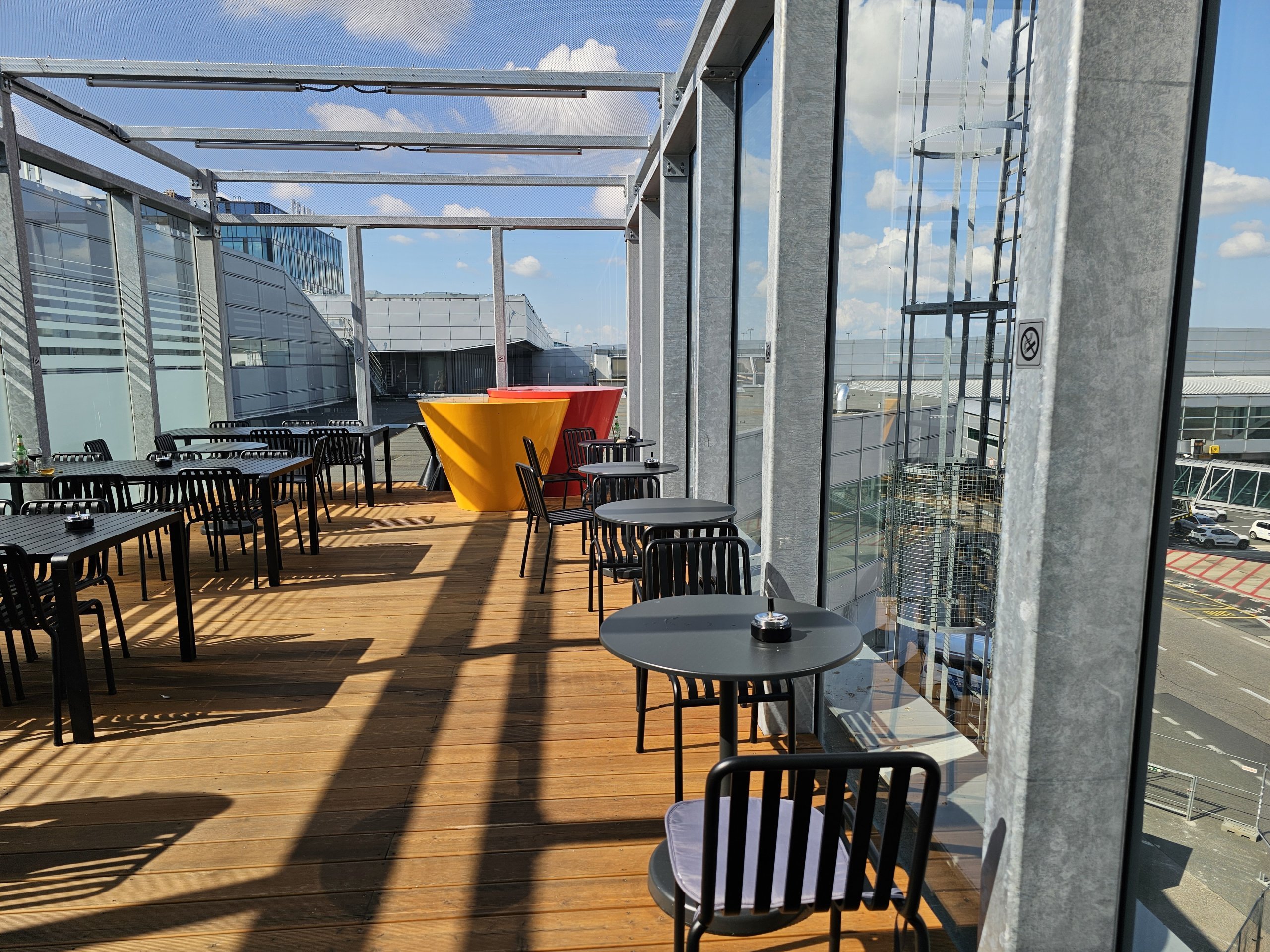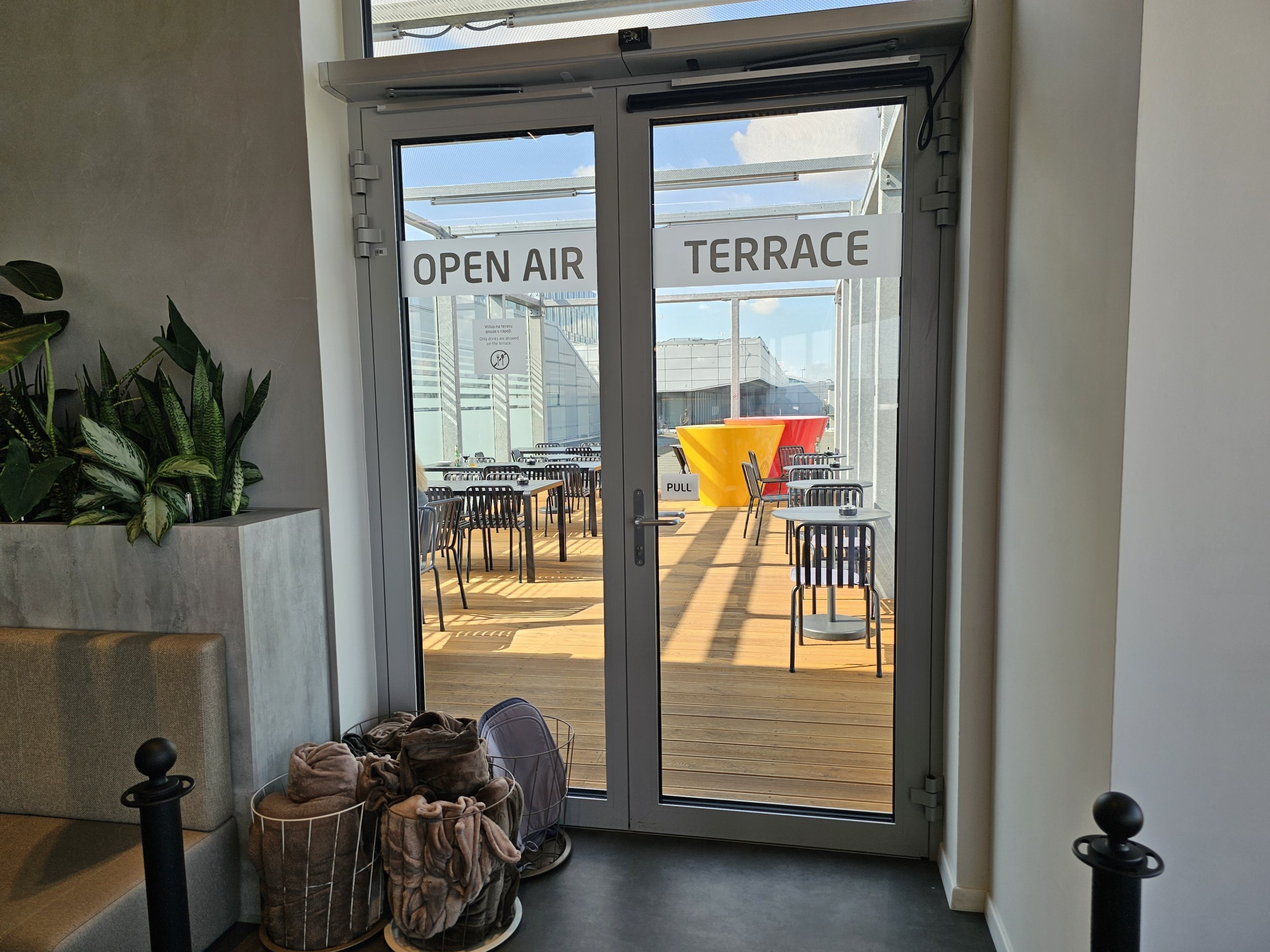 Lauko terasa yra puiki vieta pasėdėti gražiomis dienomis ir vėlgi iš jos atsiveria puikus vaizdas į lėktuvus.