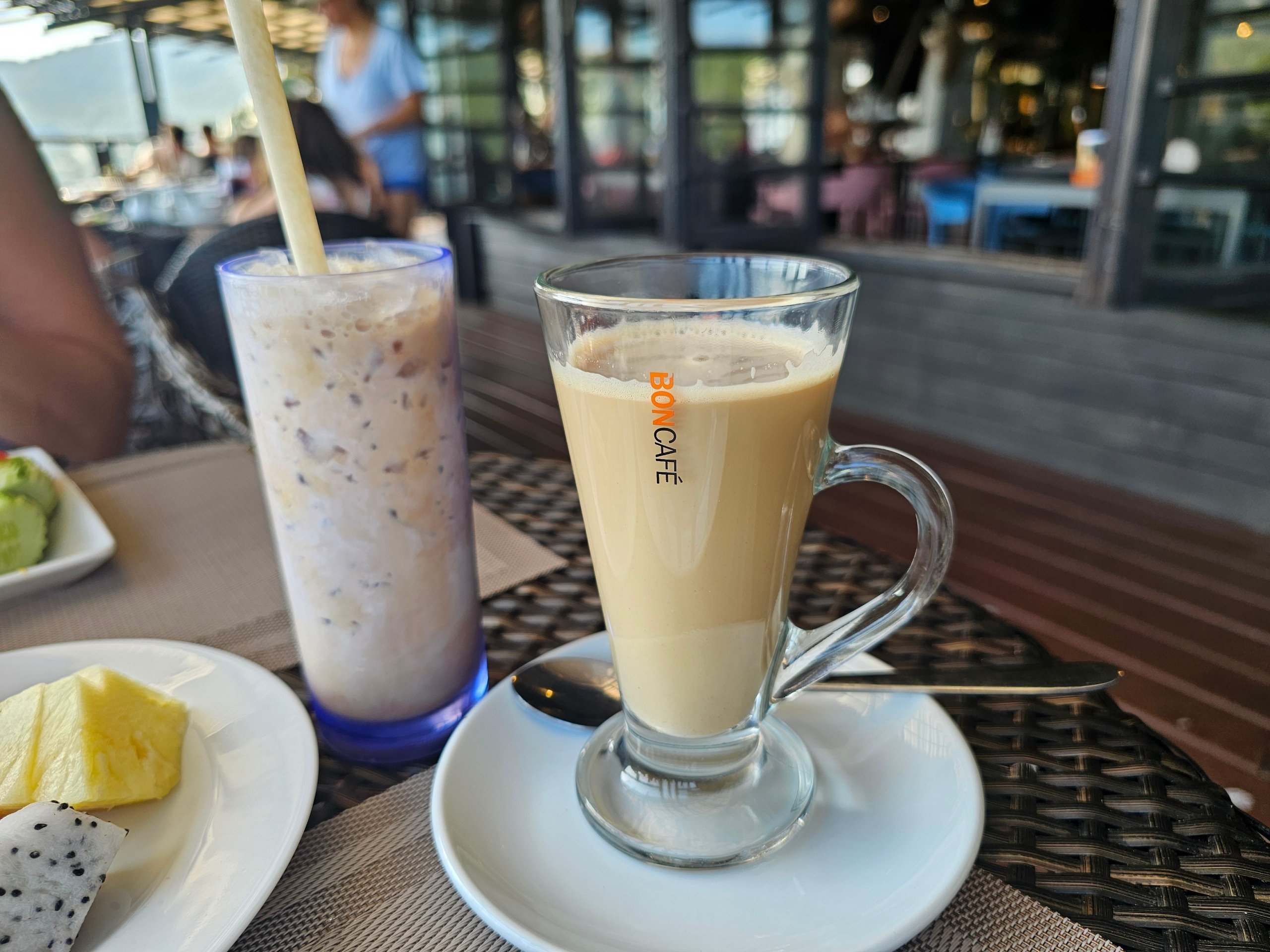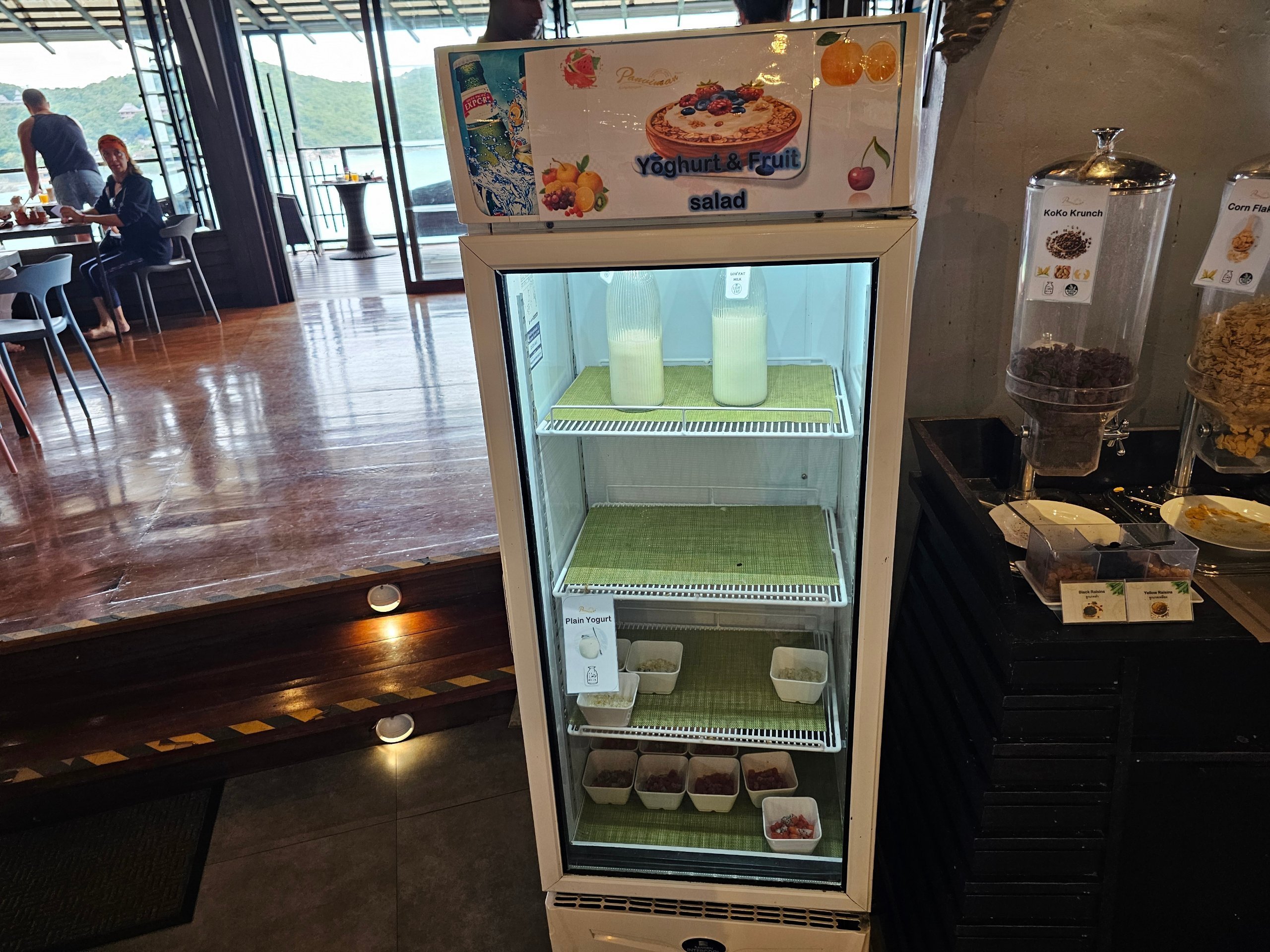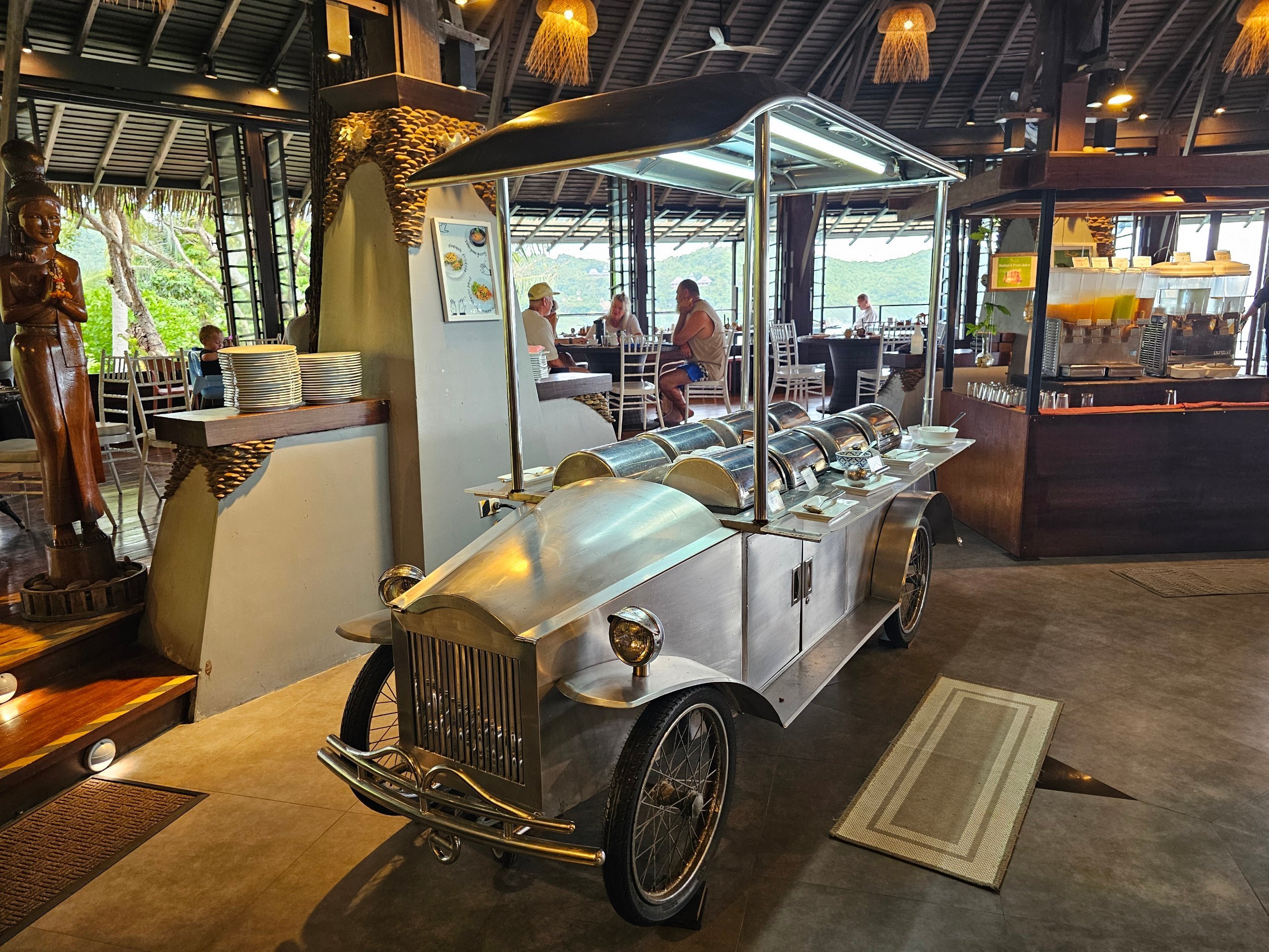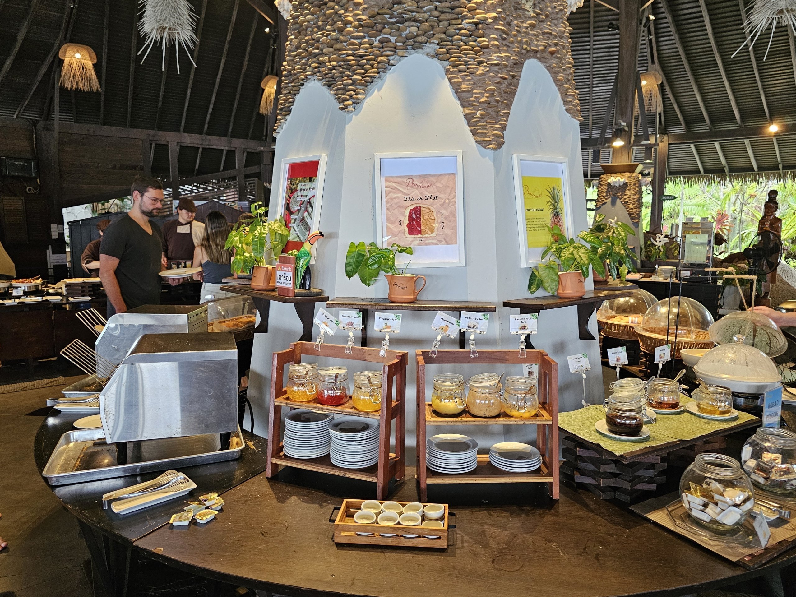 Pusryčiai "Panviman Resort Koh Phangan" vyksta pagrindiniame restorane ant kalvos su vaizdu į jūrą.