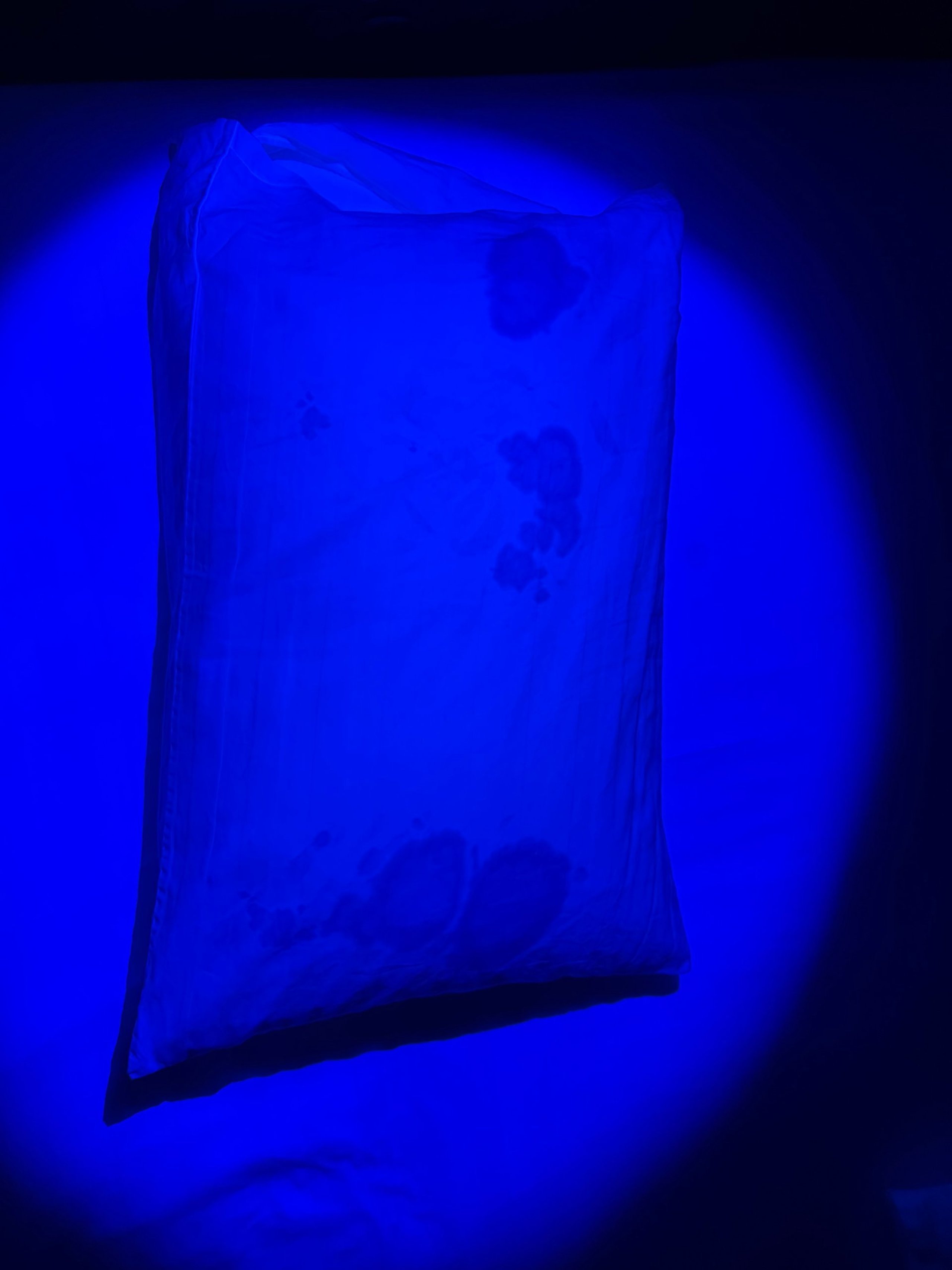 UV šviesoje (taip, išbandėme 😄) ant pagalvės atsirado keistų dėmių. Galbūt nuo kraujo ar vyno? Gal turite kokių nors patarimų?