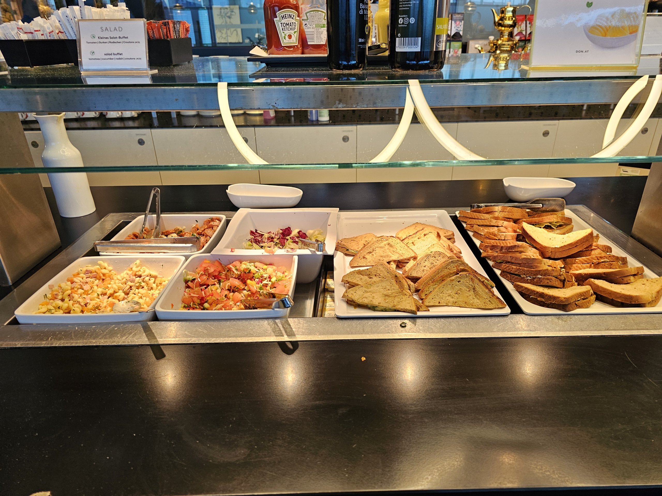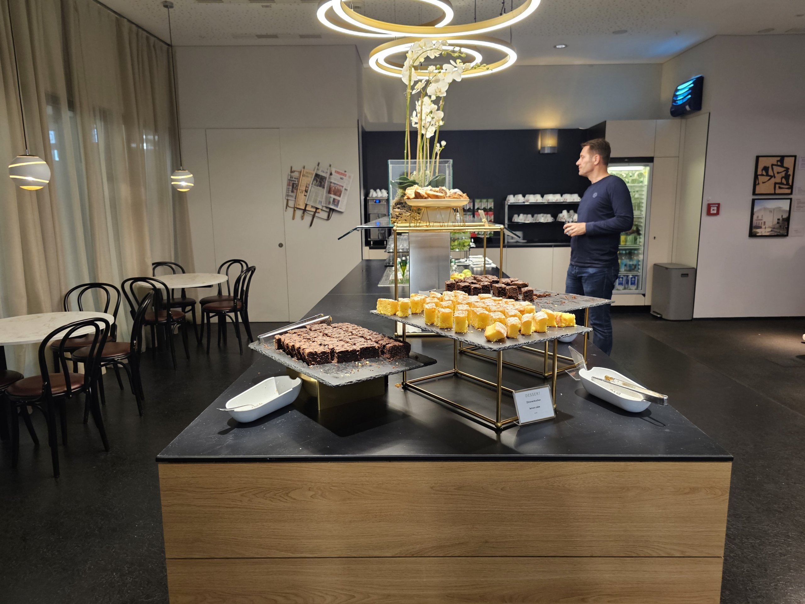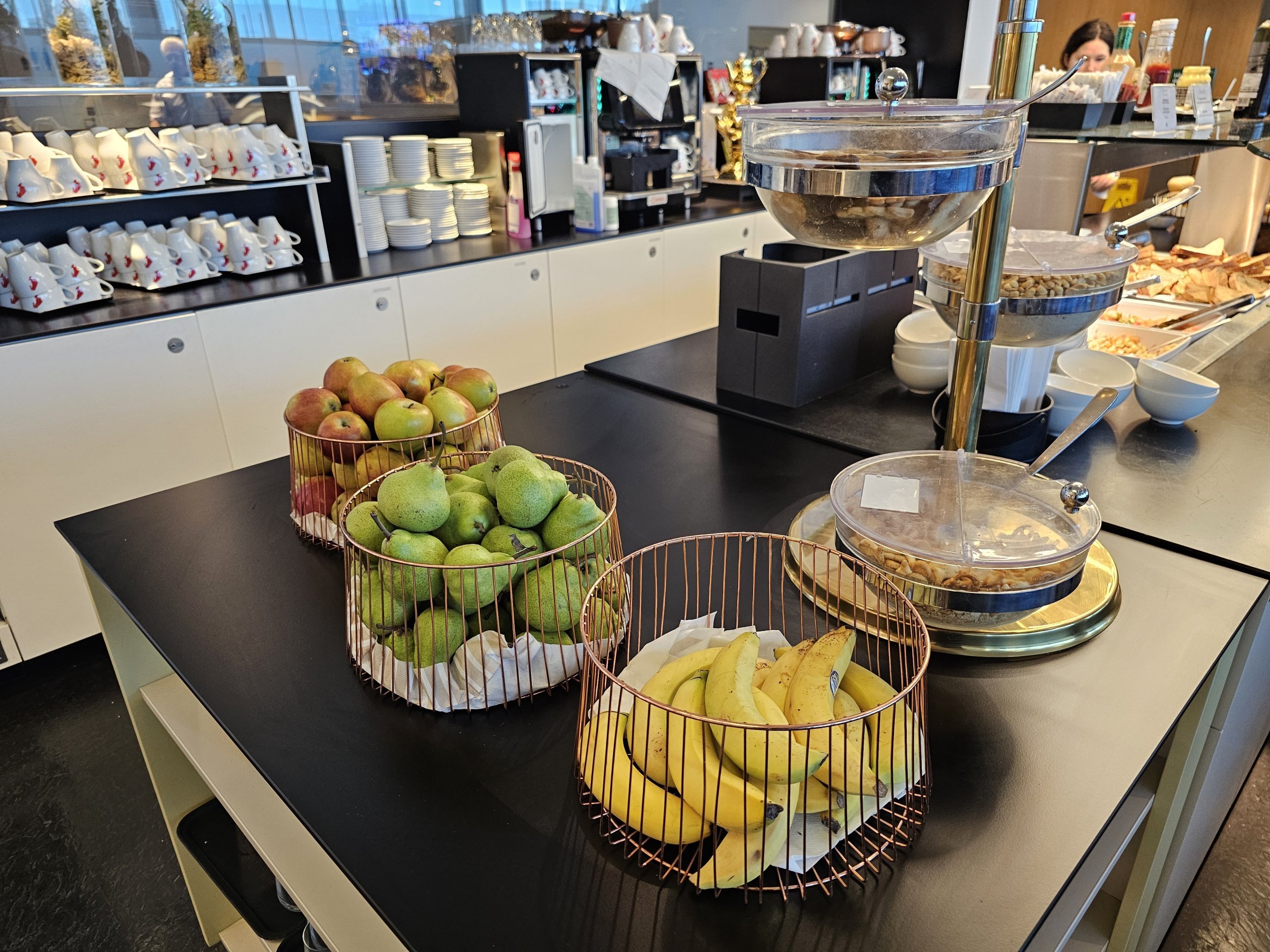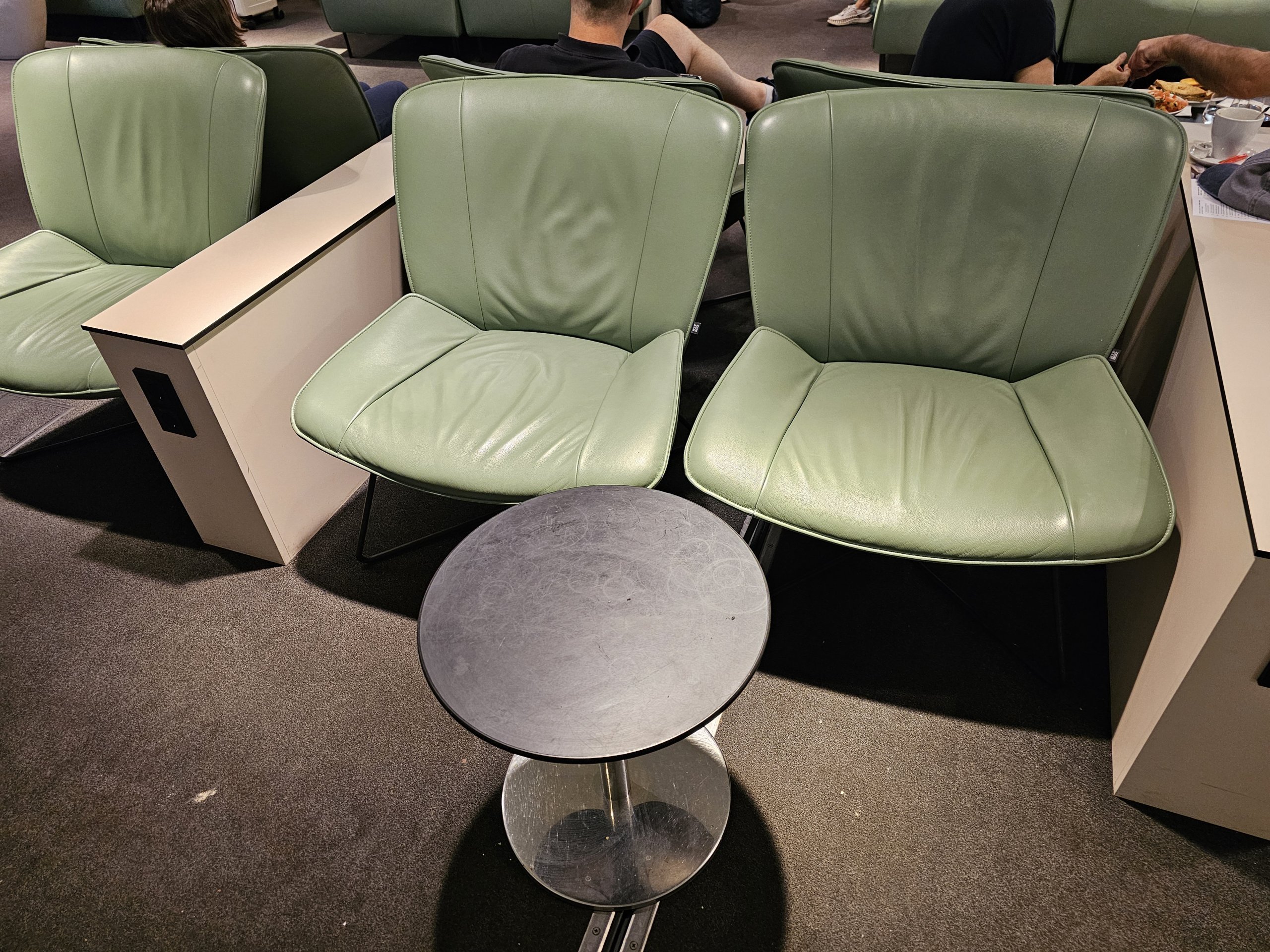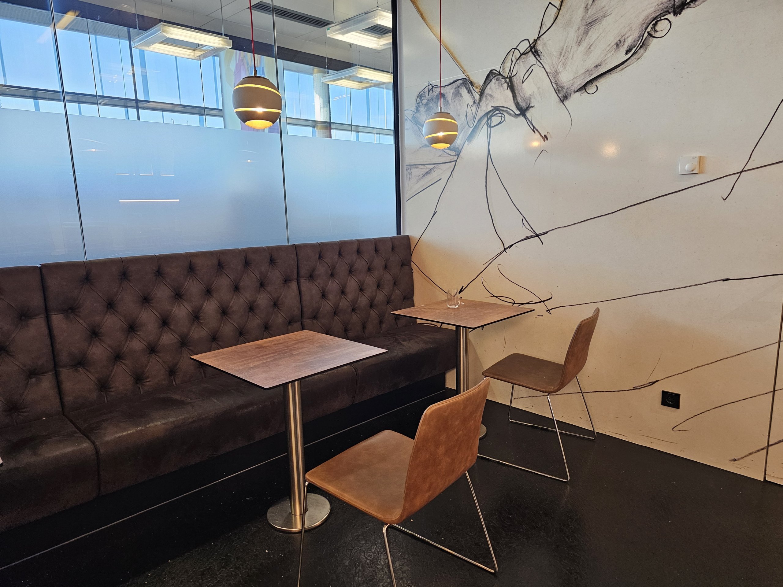 Žinoma, salės erdvė ribota, baldai atrodo šiek tiek pigūs, o langų trūkumas nesukuria geresnės atmosferos, tačiau siūlomi užkandžiai yra geri, o salė puikiai tinka trumpam sustojimui prieš skrydį.