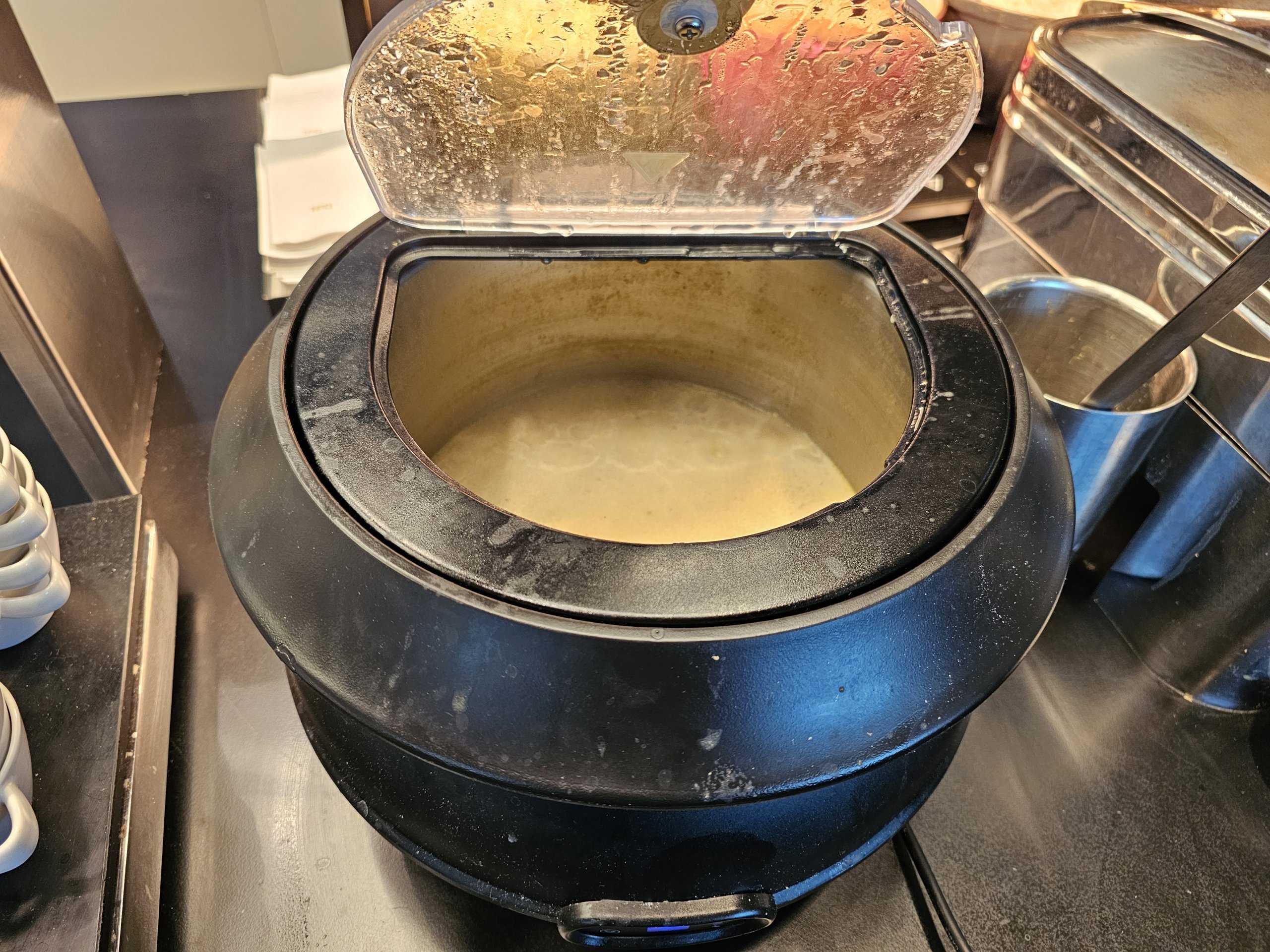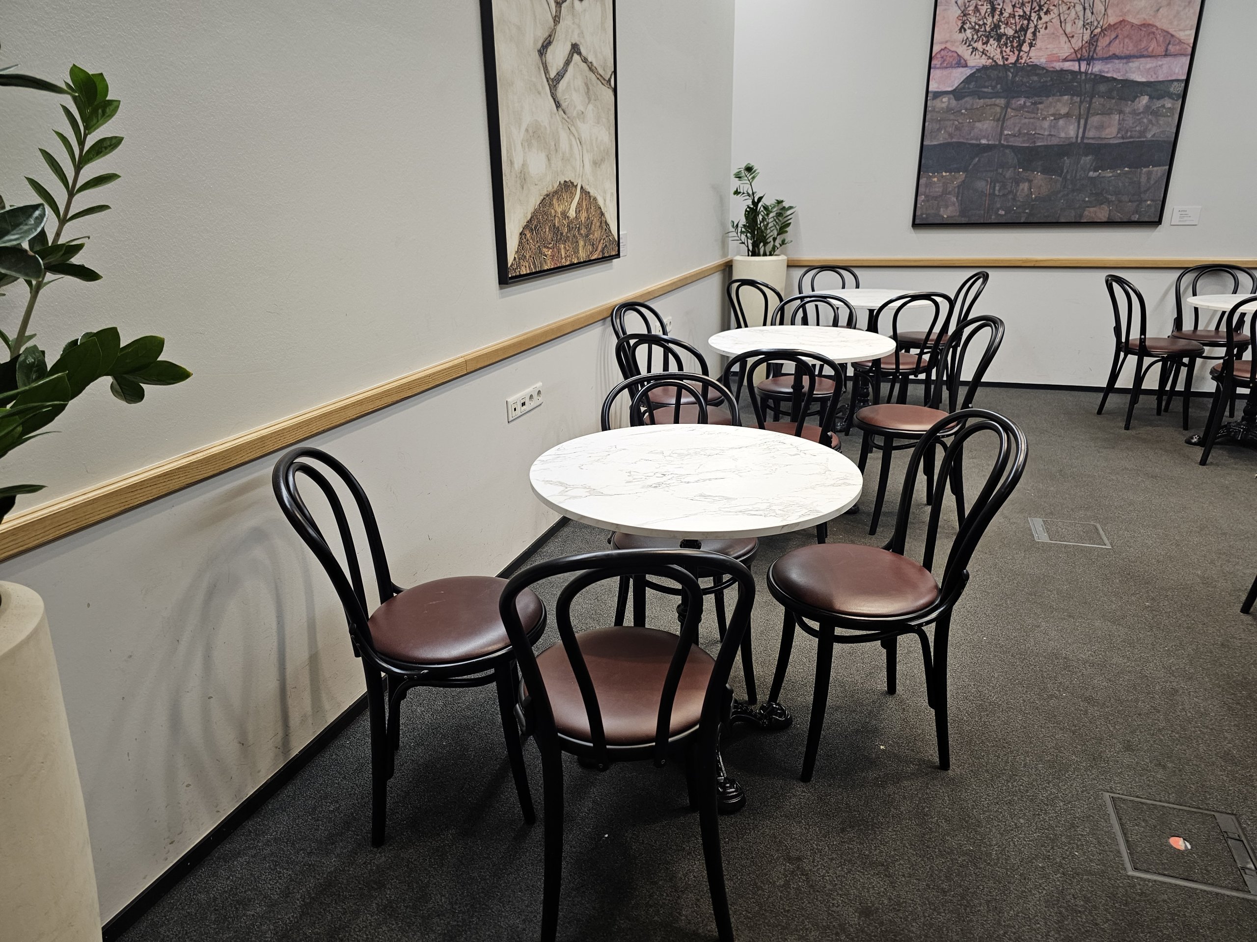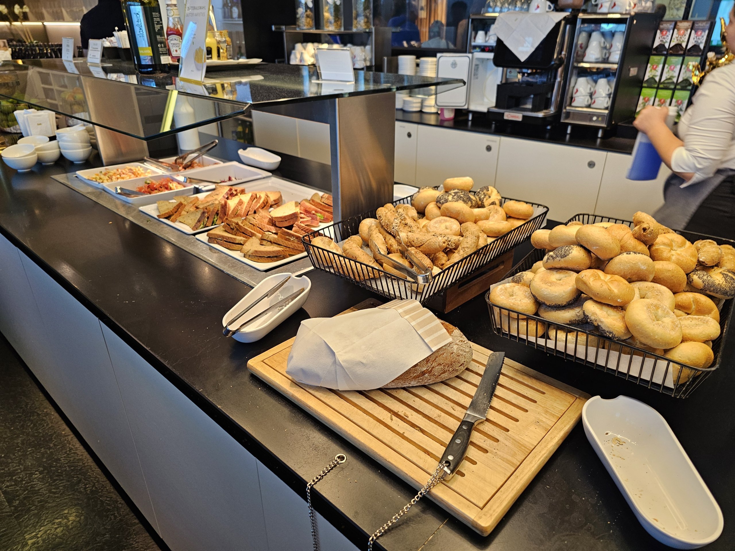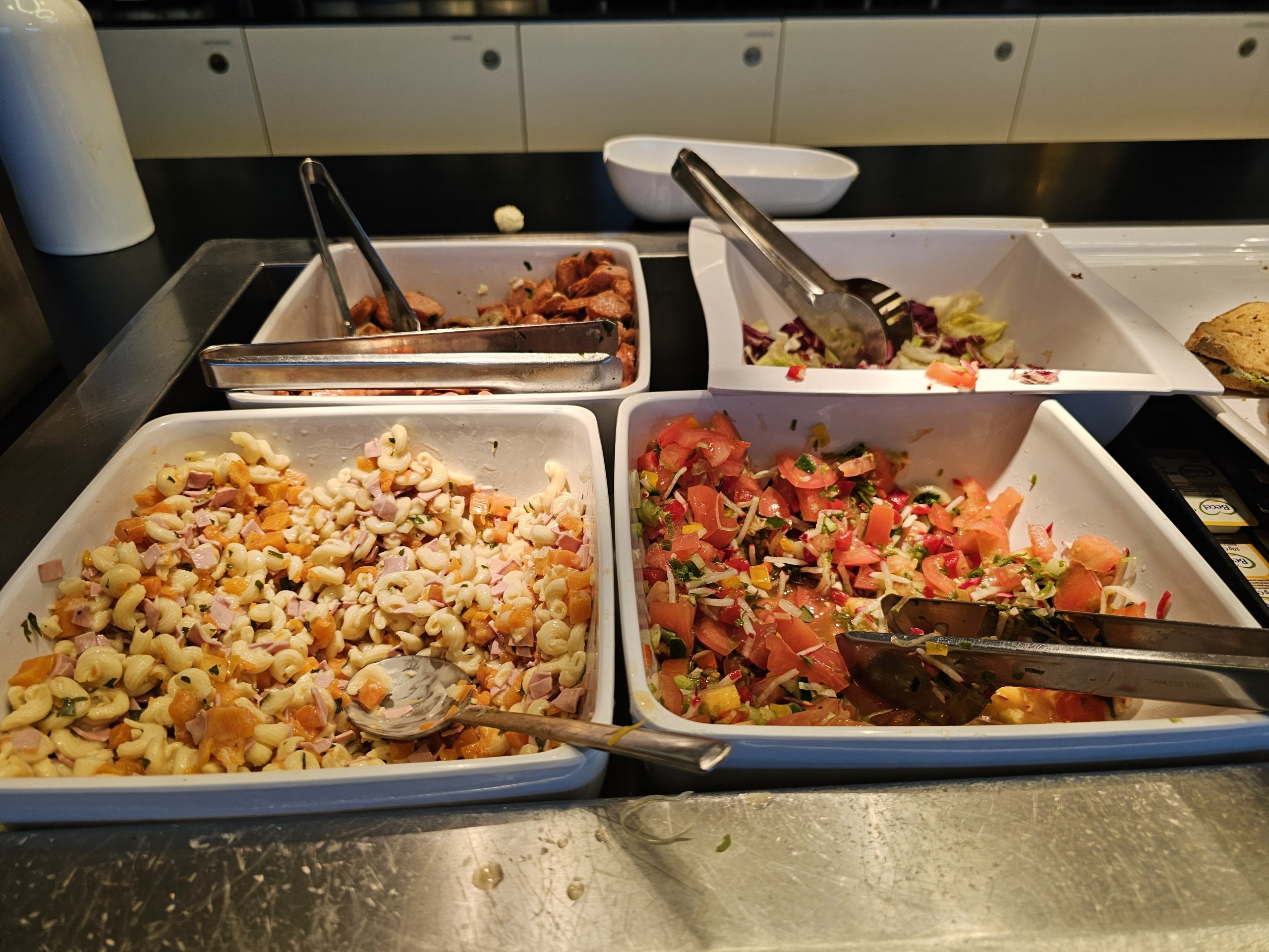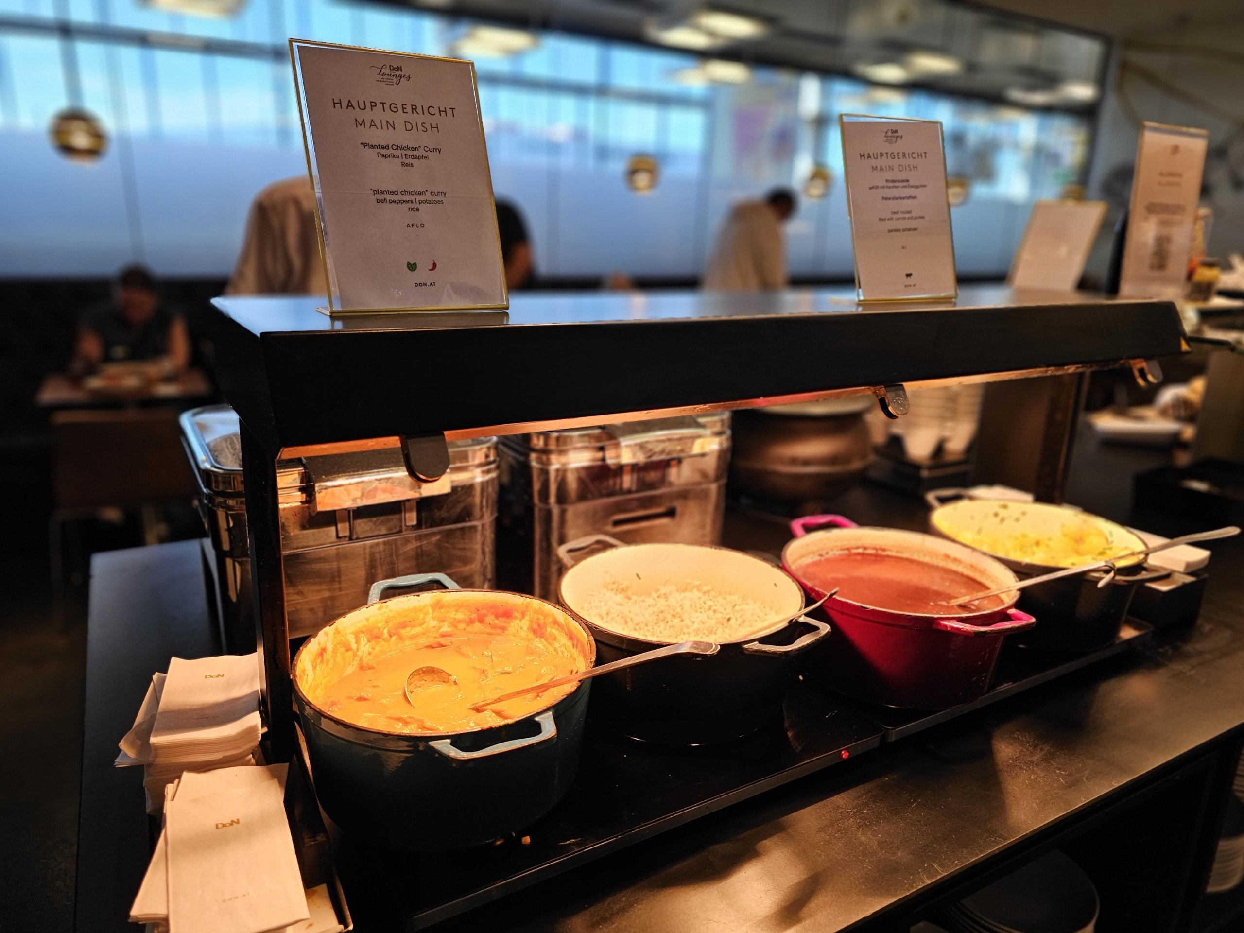 Žinoma, salės erdvė ribota, baldai atrodo šiek tiek pigūs, o langų trūkumas nesukuria geresnės atmosferos, tačiau siūlomi užkandžiai yra geri, o salė puikiai tinka trumpam sustojimui prieš skrydį.