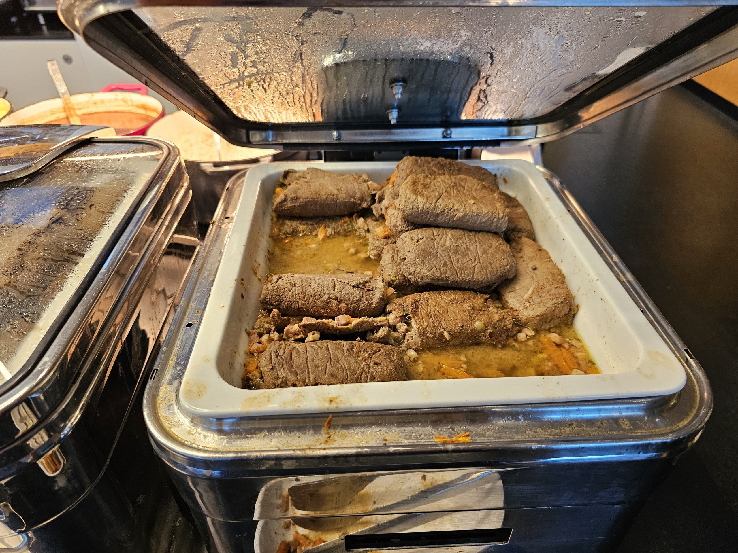 - Šaltieji patiekalai - kelių rūšių salotų, sumuštinių ir pyragaičių pasirinkimas. Kokybė nebuvo labai gera, o karštieji patiekalai man patiko labiau