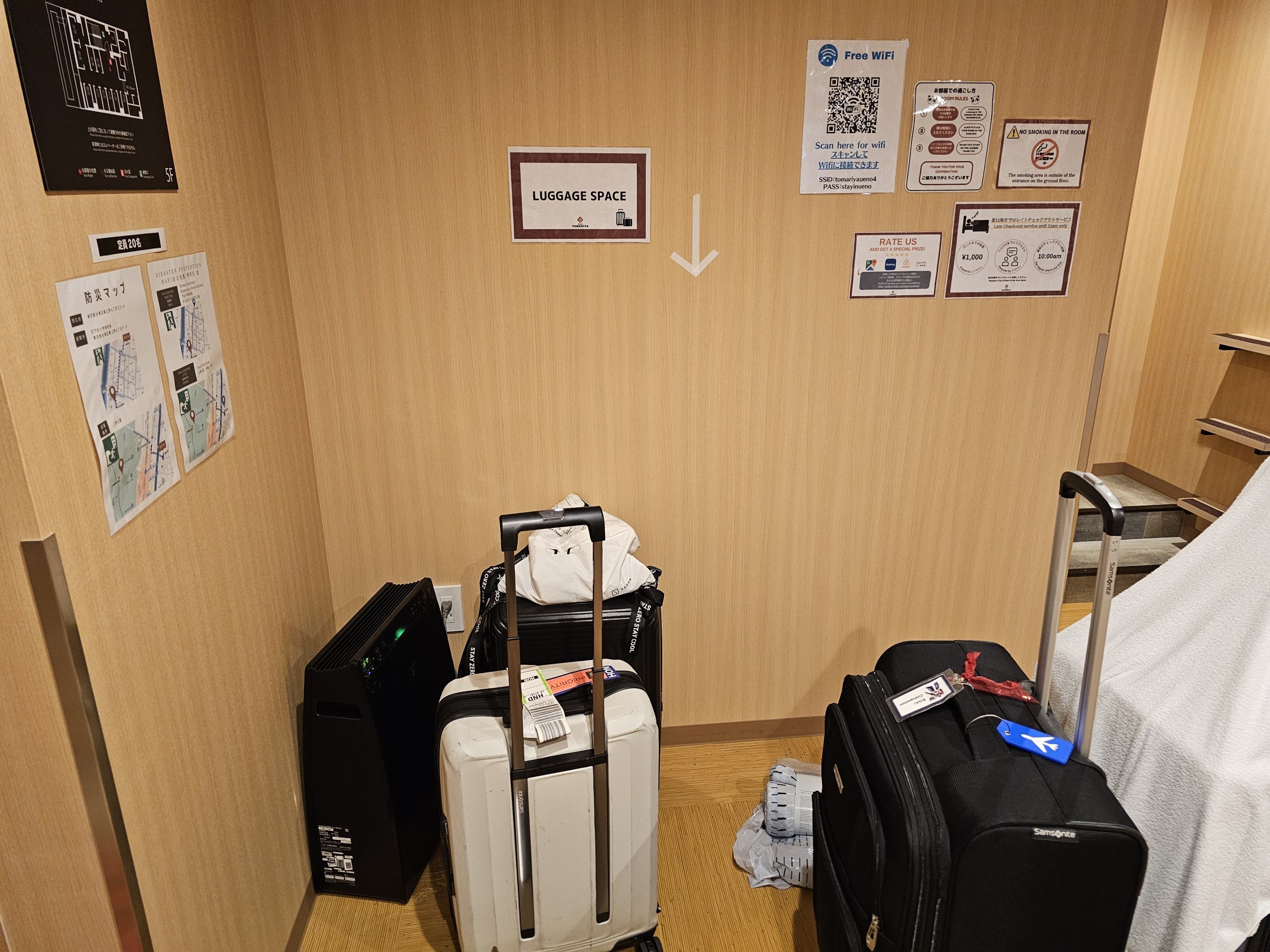 Registracija vyksta tik 15 val. Iš kapsulinio viešbučio nesitikiu jokių papildomų nemokamų paslaugų, todėl dar maloniau nustebina galimybė nemokamai saugoti bagažą.