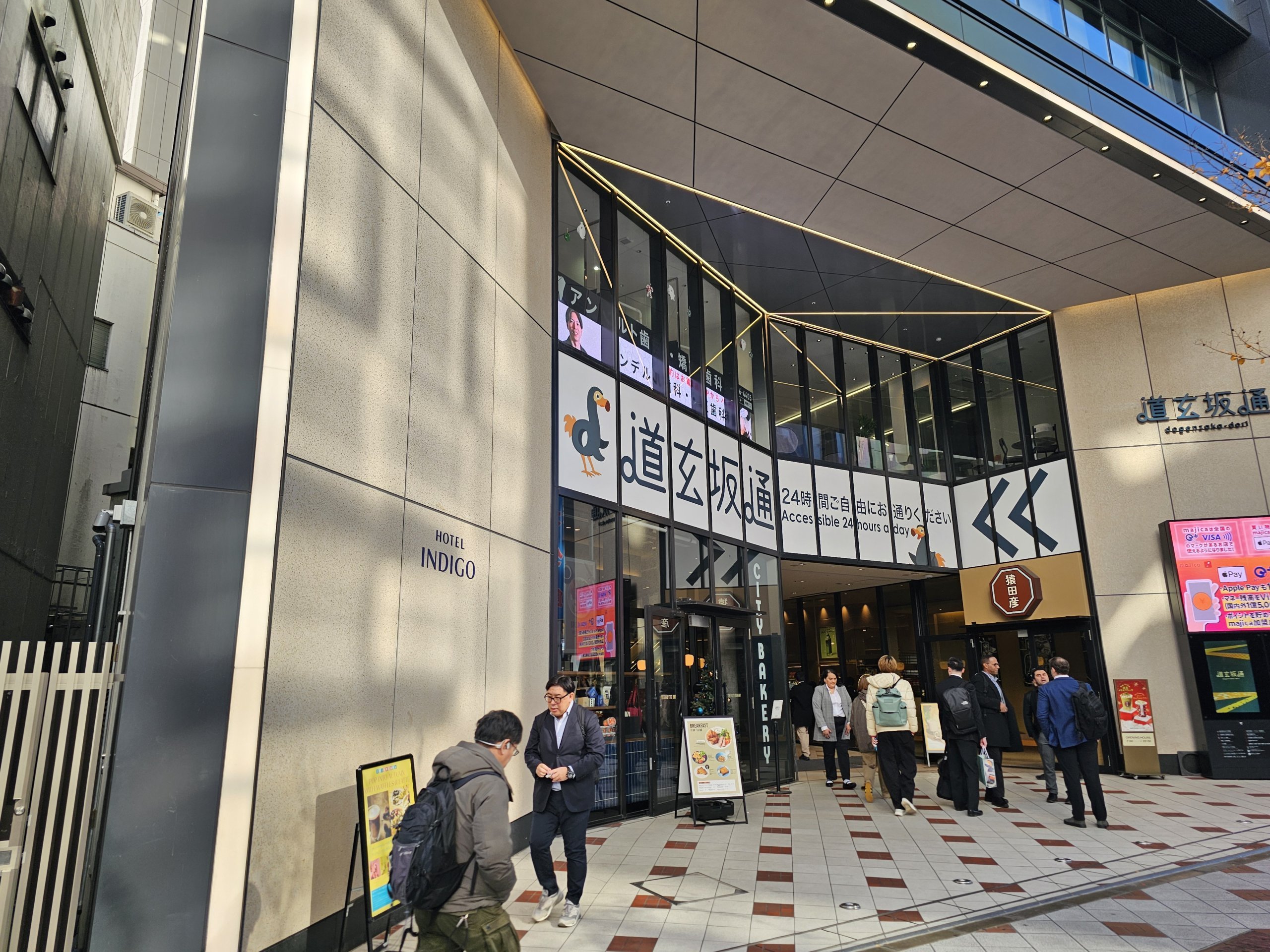 Viešbutis "Indigo" įsikūręs aukštame pastate, maždaug už 350 metrų nuo Šibujos sankryžos.