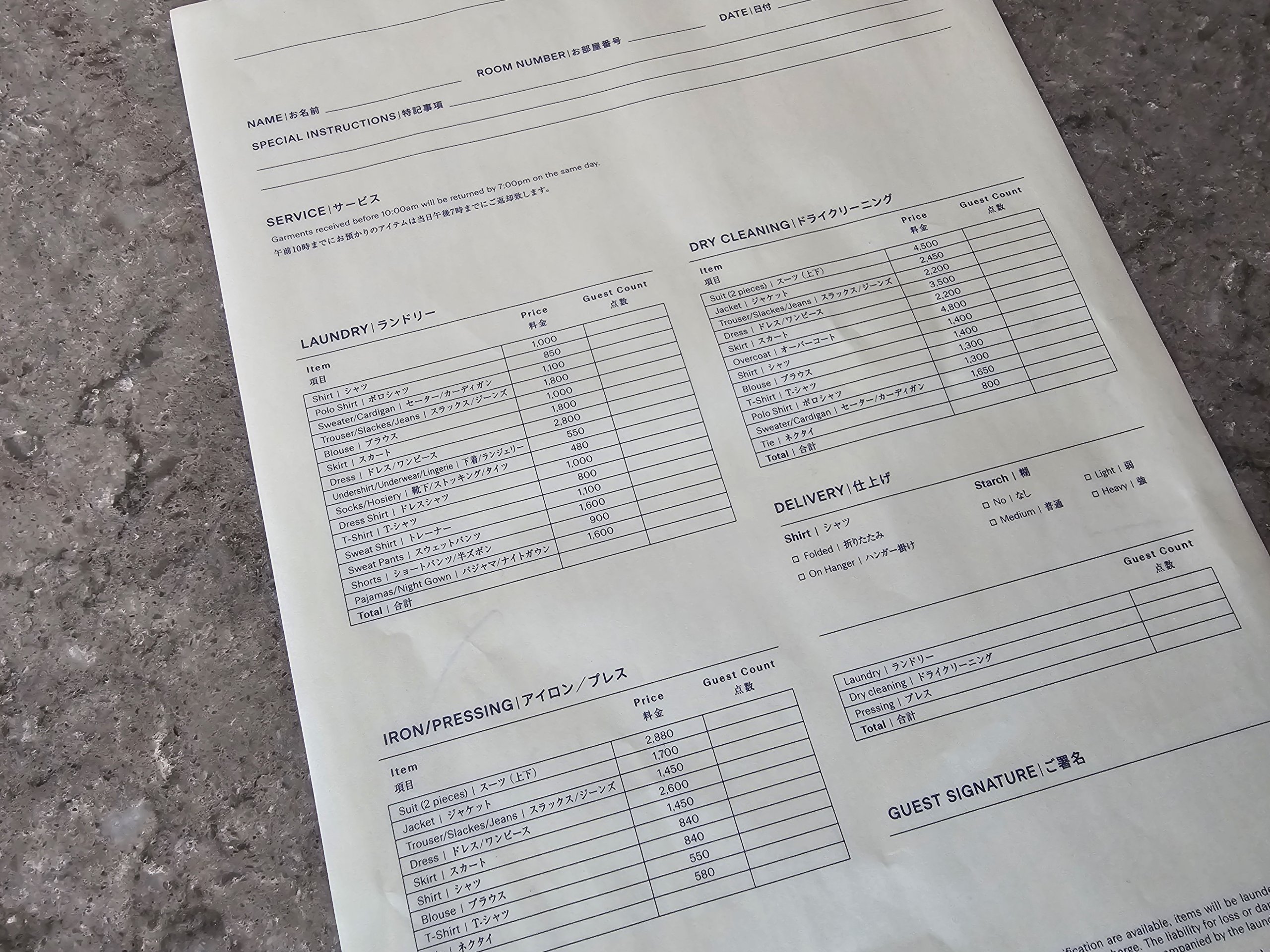 Vadinamasis Laundry Service veikia paprastai. Jūs dedate nešvarius drabužius į specialų maišelį savo kambaryje, valymo tarnyba juos pasiima ir paprastai kitą dieną grąžina į jūsų kambarį išskalbtus.