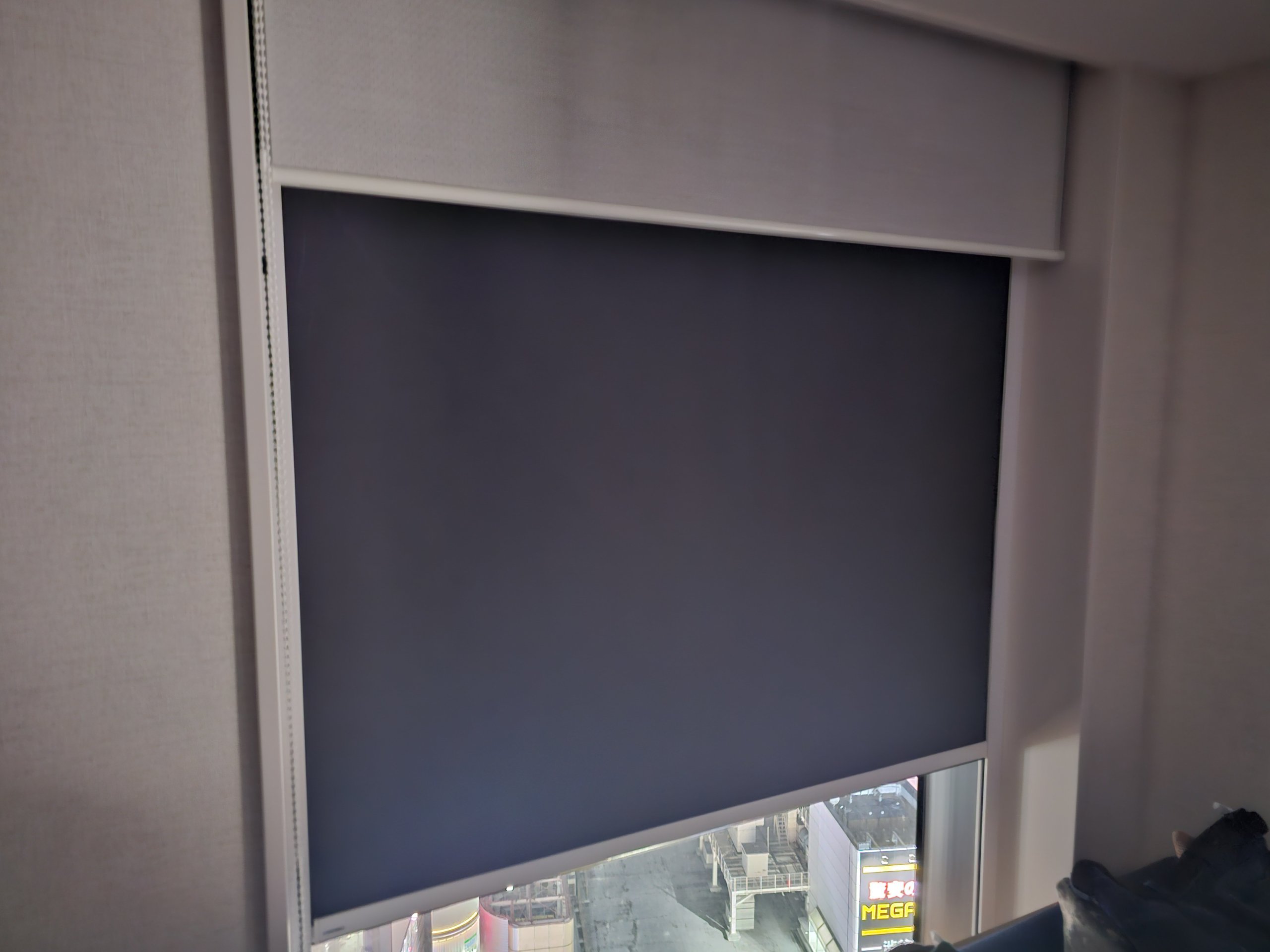 Kadangi Tokijo panorama šviečia visą naktį, šiek tiek nerimauju, kaip tamsu bus kambaryje. Visi langai turi ir užuolaidas nuo saulės, ir 100 % užtemdančias žaliuzes, todėl naktį kambaryje visiškai tamsu.