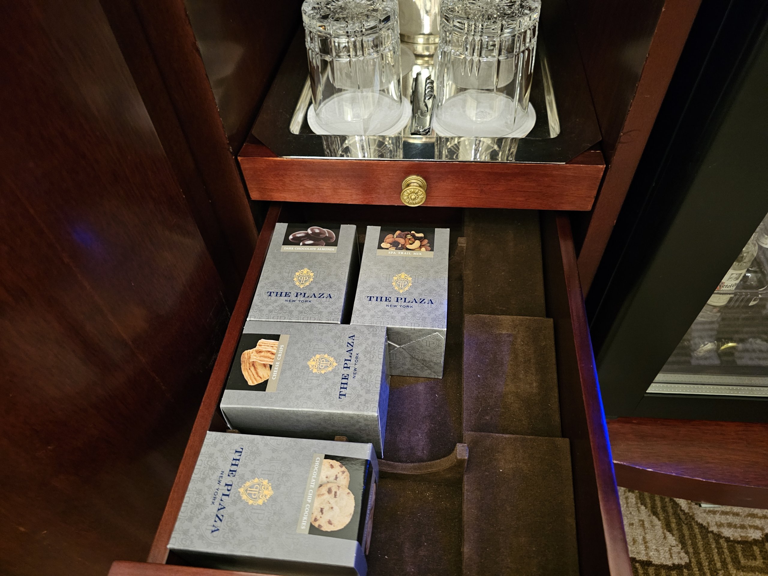 Minibaras labai gerai įrengtas. Pavyzdžiui, turėjome Napos slėnio raudonojo vyno už 68 usd, stiklinę M&M's už 16 usd, skardinę "Coca Colos" už 11 usd arba platų alkoholinių gėrimų pasirinkimą, kurių kainos svyruoja nuo 20 usd iki 27 usd.