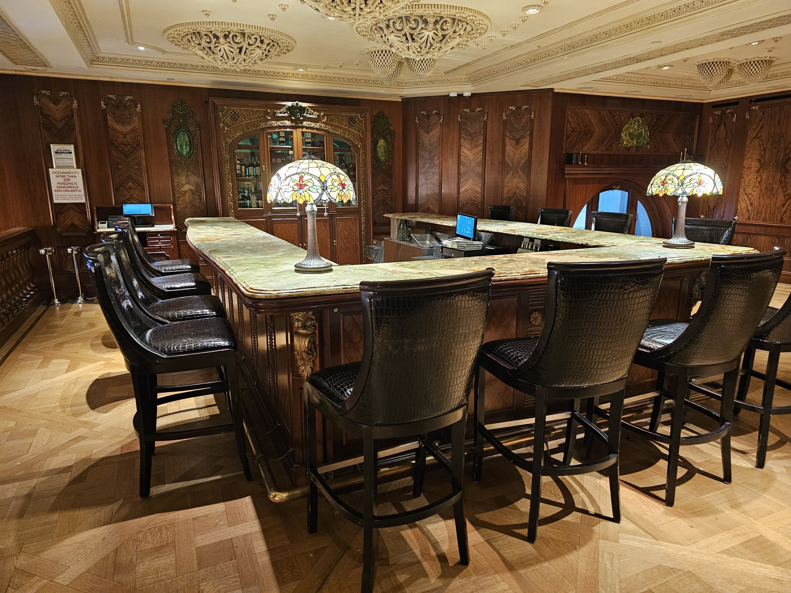 - Palm Court - Restoranas įsikūręs patalpoje su gražiomis lubomis, o aplinka šiek tiek patogesnė ir jaukesnė nei šampano bare.