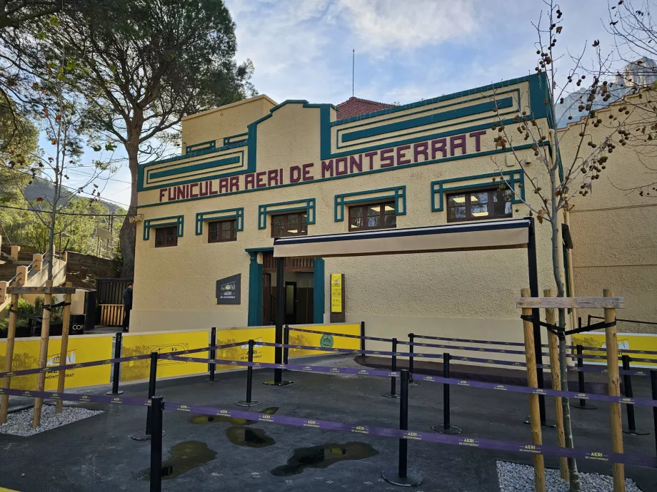 - Važiuokite FGC traukinio linija R5 iš Plaça Espanya į Aeri de Montserrat stotį, traukiniai važiuoja 1-2 kartus per valandą.