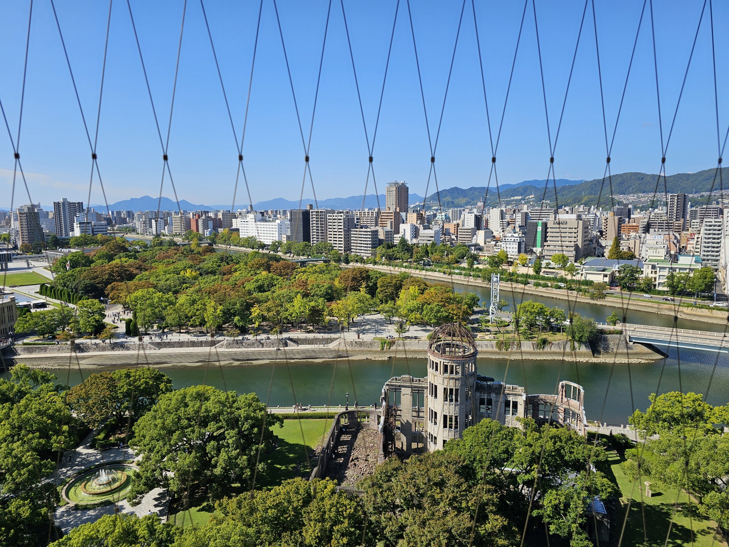 Iš viršutinio aukšto apžvalgos aikštelės, esančios 50 metrų aukštyje, atsiveria geriausi Taikos memorialinio parko, dabartinio miesto ir fone esančių miškingų kalnų vaizdai.