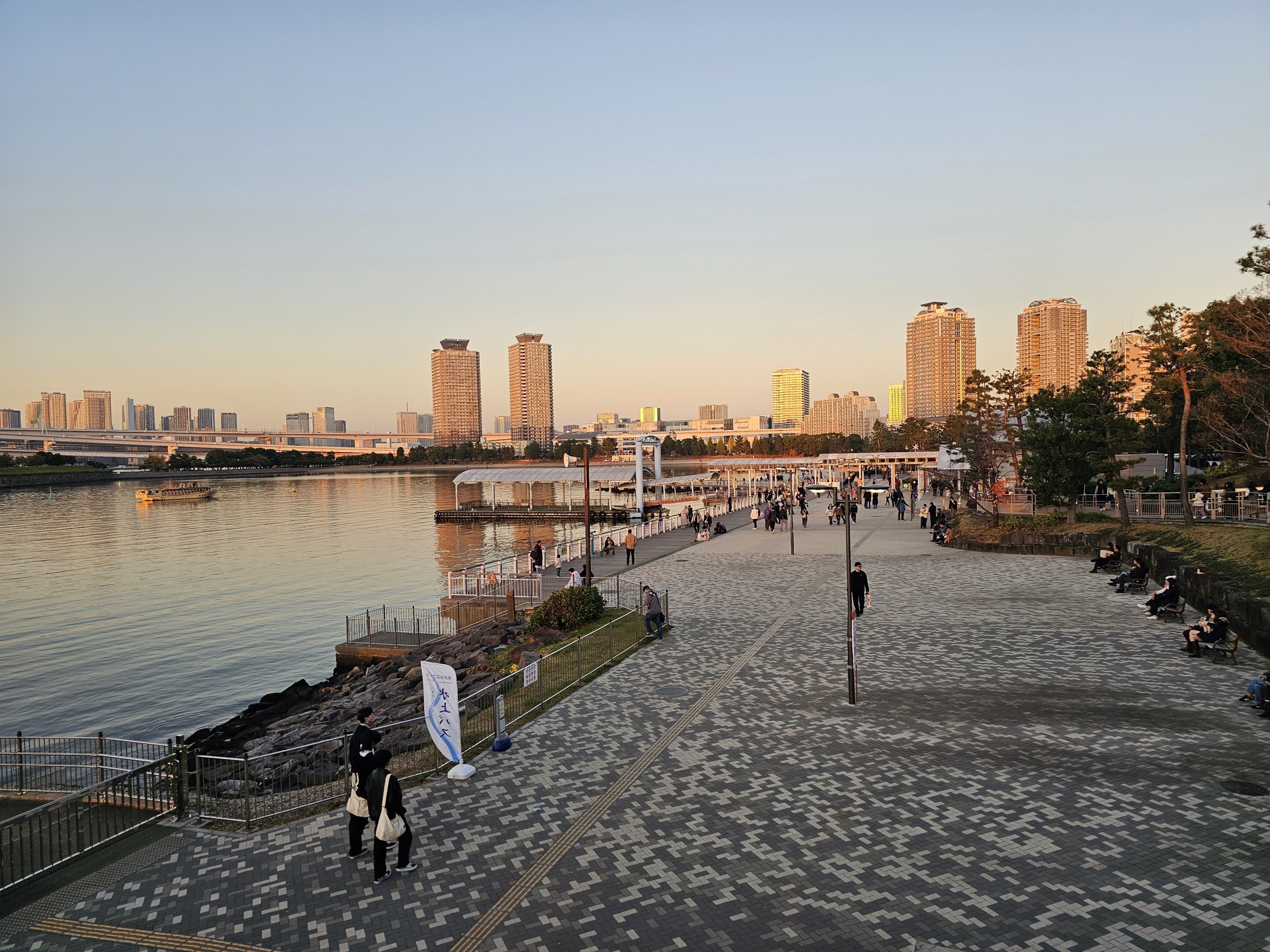 Laivai reguliariai plaukia į Asakusos prieplauką, esančią netoli garsiosios Sensodži šventyklos. Išsamų tvarkaraštį ir bilietų kainas rasite svetainėje suijobus.co.jp. Bilietą į laivą galite nusipirkti promenadoje esančioje bilietų kasoje.