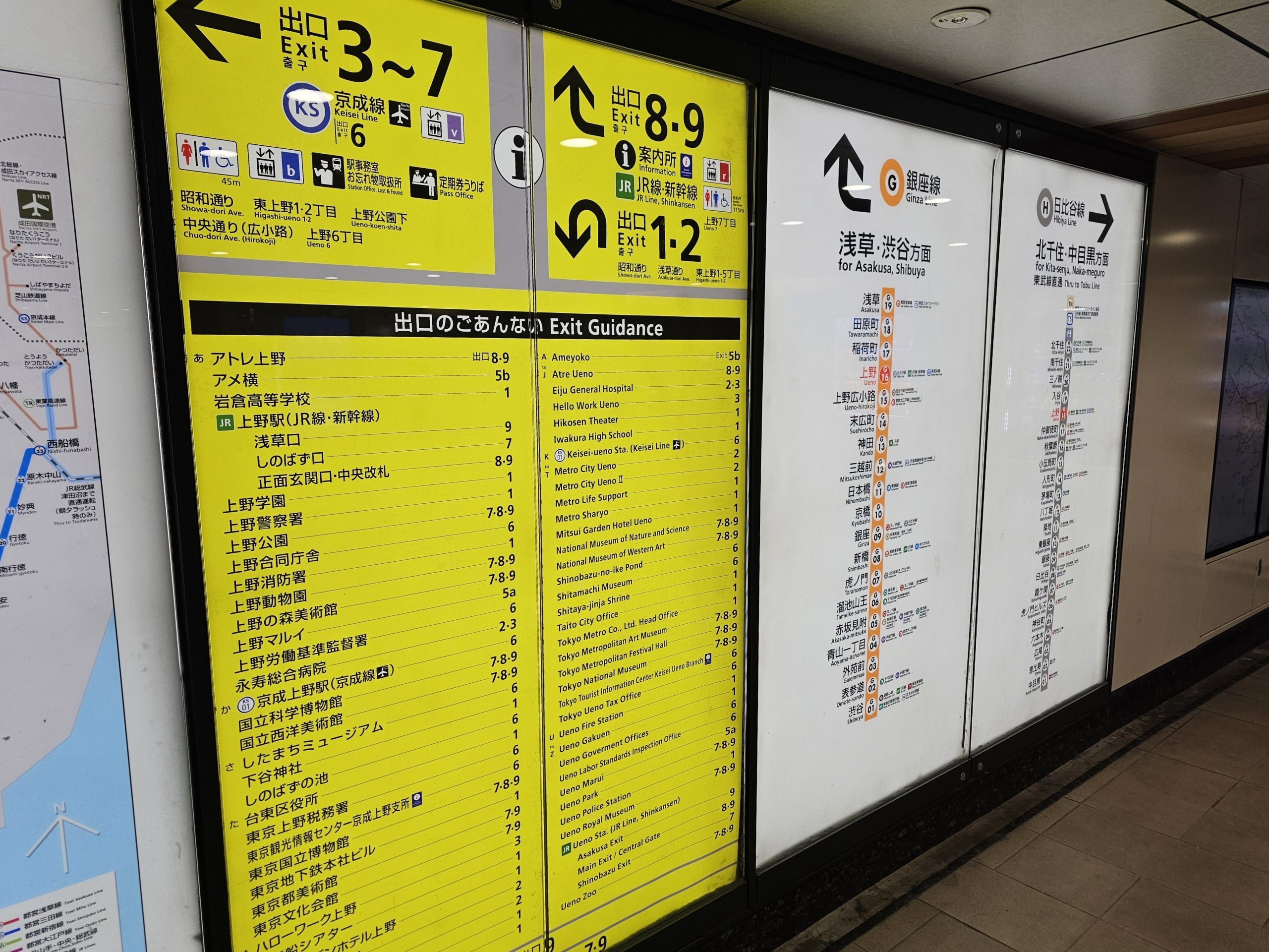 Žemėlapyje visada raidėmis pažymėti skirtingi išėjimai iš stoties. Vėliau šios raidės geltonai aiškiai pažymėtos visoje stoties teritorijoje.